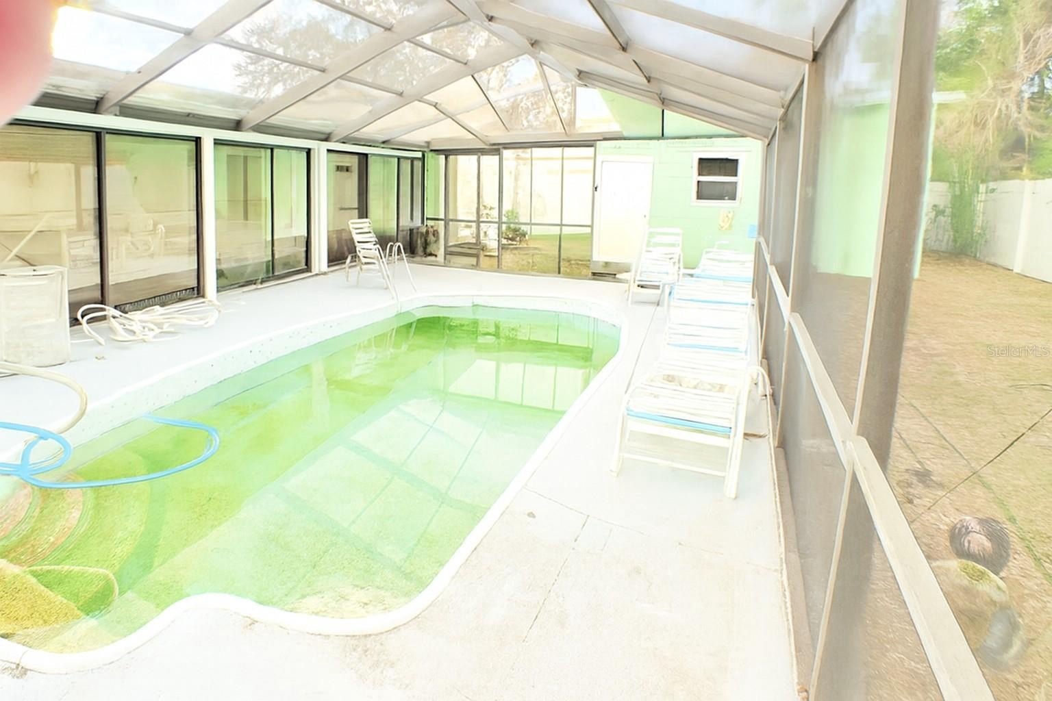 The screened-in pool is currently being resurfaced by the owner, ensuring a fresh, inviting outdoor oasis for the next family to enjoy.