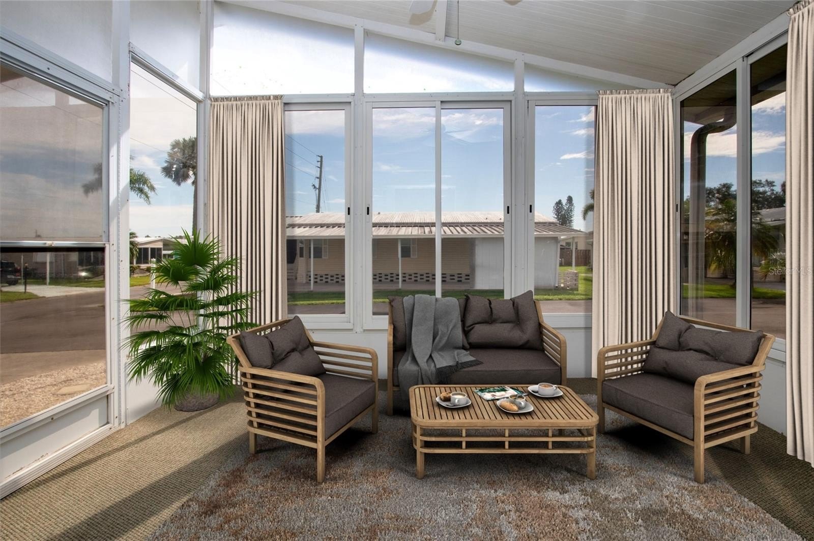 One or more photo(s) has been virtually staged. Charming 2-Bedroom Manufactured Home located in a Vibrant Age Qualified Community. Seller said to included a Home Warranty and looks forward to working with you. This beautifully maintained 2-bedroom, 2-bathroom manufactured home is perfect for those seeking quiet, comfortable, yet active community in Westwinds Village Co-Op. Step inside to discover not one, but two, enclosed lanai living areas, providing plenty of space for relaxation and entertainment. The oversized lanai features windows that let the Florida sunshine pour in—ideal for enjoying your morning coffee or unwinding in the evening. The heart of this home is the spacious open kitchen with an eat-in breakfast bar, perfect for casual dining. You’ll love the seamless connection to the dining and living room area, highlighted by cordless shades and a charming bay window that brightens up the space. Retreat to the primary bedroom, offering ample room for oversized furnishings and a generous walk-in closet to store all your essentials. Situated on a corner lot in a tranquil setting, this home ensures peace and privacy. Enjoy an abundance of community amenities, including a refreshing pool, shuffleboard courts, bocce ball, horseshoe pits, and an active calendar of events—perfect for meeting neighbors and engaging in activities. The clubhouse is a hub of social activity, complete with a kitchen and options for gatherings. Plus, with management staff on duty, you’ll feel right at home. Conveniently located with easy access to Interstate 75, you’re just minutes away from medical facilities, restaurants, grocery stores, worship, and nearby beaches. Don’t miss the chance to make this well-loved home your own—schedule a viewing today and start enjoying the wonderful lifestyle this community offers!