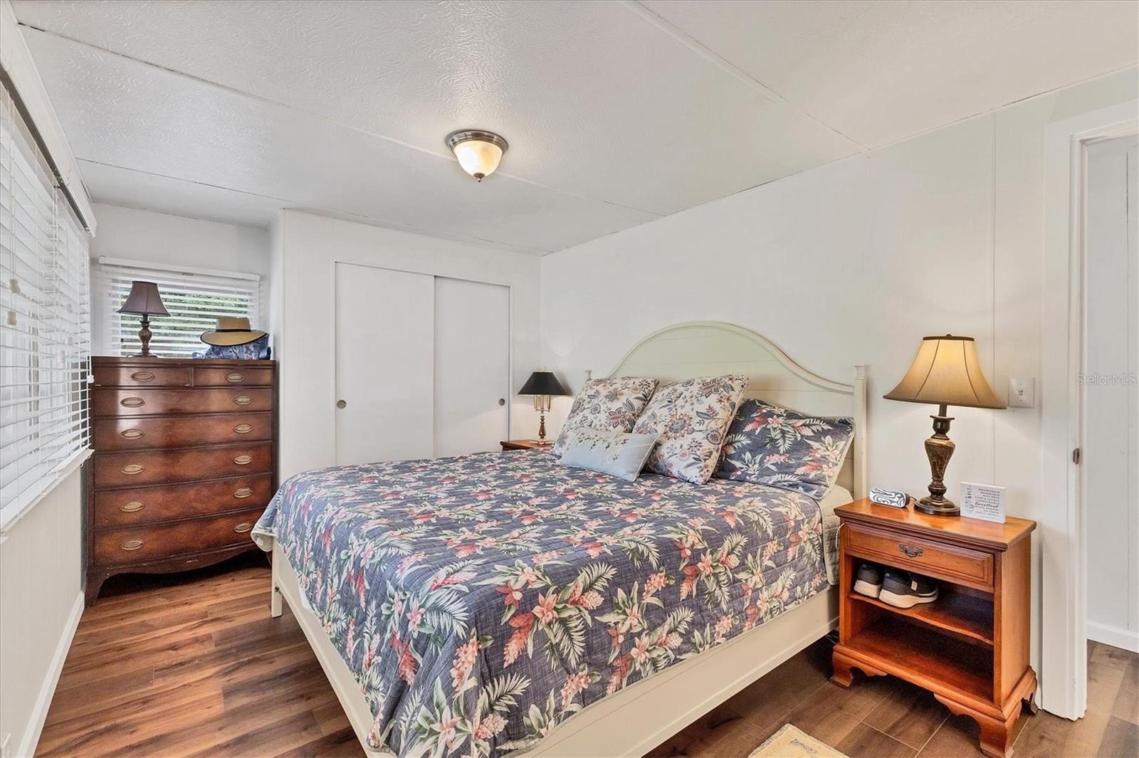 The kitchen is a showstopper, featuring quartz countertops, custom soft-close cabinetry, a beadboard backsplash, shiplap accents, island storage, and new sink and faucets. Corelux vinyl plank flooring and 2" blinds run throughout the home for a seamless, modern look. The primary bathroom features a custom tile shower for a spa-like experience. Step outside to your private outdoor oasis—complete with a screened lanai, open patio, and covered porch—all surrounded by majestic oaks and palms. The extended carport adds 4 extra feet of convenience. Best of all, you can fish for bass right from your backyard! Low HOA of only $600 annually. Pets are not permitted. Plenty of activities to keep you busy in this community. Updated fitness room. Meet friends and make new ones for a game of indoor pickle ball, bocce ball, shuffleboard or take a water aerobics class. Join the Golf League. Take a bike or golf cart ride to Veterans' Park to watch the wildlife and sunset. Ellenton Premium Outlet Mall, restaurants, and medical facility's just minutes away. Easy access to I-75. Just a short drive to our beautiful Gulf Beaches. Tidevue Estates offers a vibrant lifestyle with no lot rent and a strong sense of community. This is Florida living at its finest!