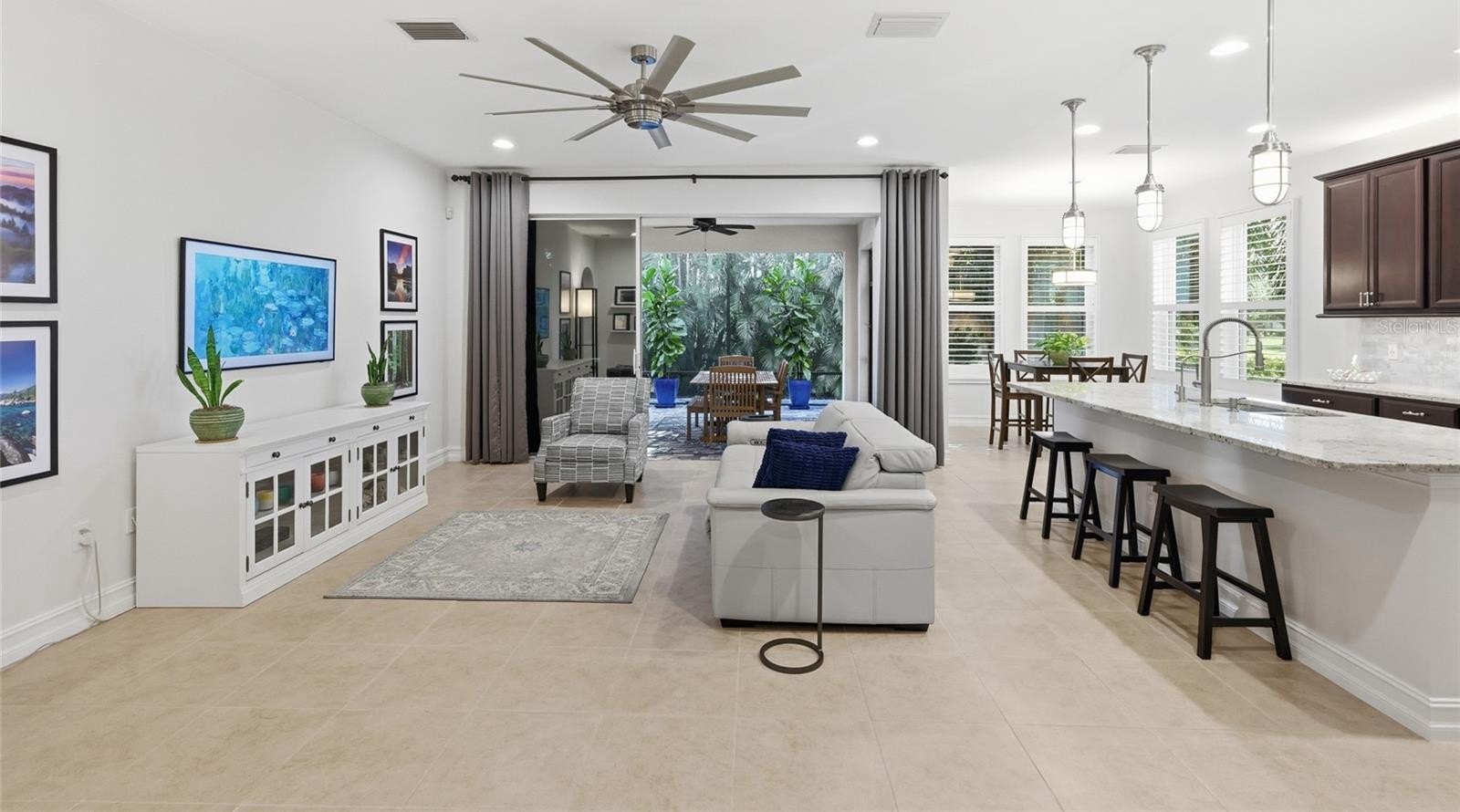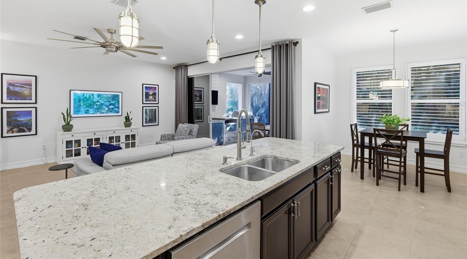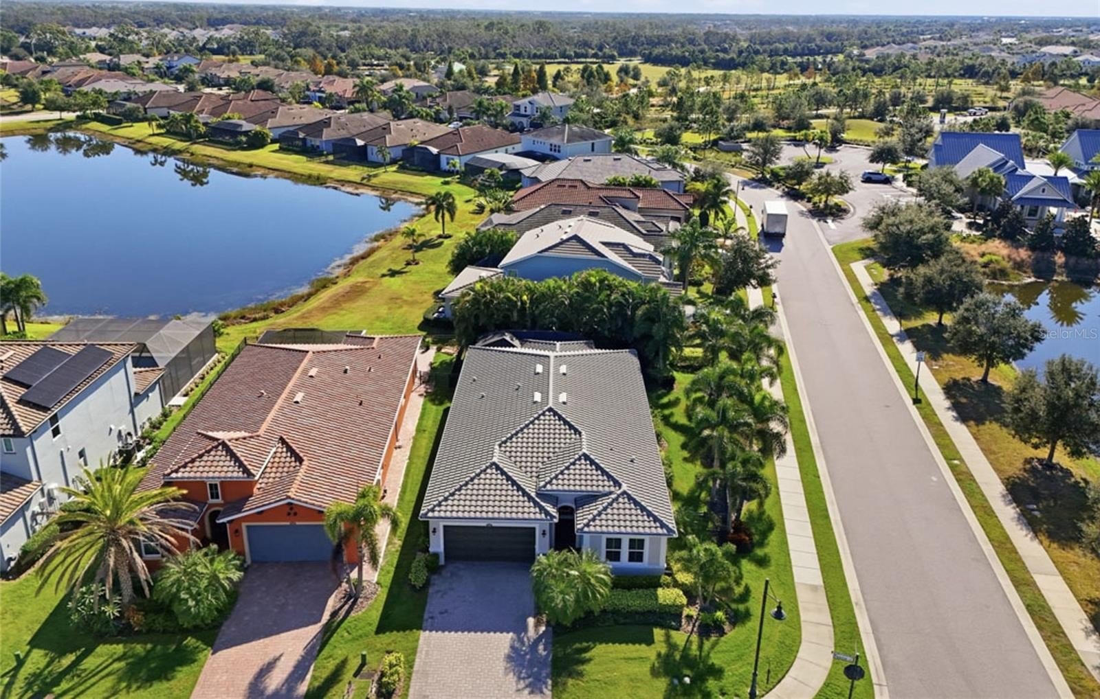 Welcome home to this custom CALATLANTIC model! 3 BEDROOMS, 3 BATHS PLUS DEN, privately set on a lush corner lot in this gated, resort-style community of AROR GRANDE at LAKEWOOD RANCH. Surrounded by majestic palms and tropical foliage with partial water views, this residence blends timeless design with exceptional privacy and true Florida lifestyle. Fresh neutral interior paint and abundant natural light highlight the open-concept layout, ideal for both entertaining and everyday living. The elegant gourmet kitchen features an oversized island with seating, rich wood cabinetry, granite countertops, upgraded stainless gas range, double ovens and walk-in pantry with glass door. The kitchen flows seamlessly into the living area and sunny breakfast nook for effortless gatherings. Triple sliders lead to the expansive screened lanai with custom outdoor kitchen and serene views of the established lush landscaping. The fenced yard offers excellent privacy, a dedicated dog run, and plenty of room for outdoor enjoyment. Inside, the home offers three generously sized bedrooms, a flex room with double doors, (dining room or office) and built-in cabinetry. The guest wing includes two beautifully appointed bathrooms, one with ADA-compliant features. The primary suite is every owners dream with a custom-designed walk-in closet featuring a center island, soaking tub, frameless glass shower, and generous storage. Additional upgrades include gorgeous wood-laminate flooring in all 3 bedrooms, custom Bahama window shutters, tray ceilings, built-ins, upgraded lighting, and 8 foot garage door. Every inch of this home has been meticulously loved and maintained, and it shows. ARBOR GRANDE offers resort-styled amenities including a beach-entry heated pool, exceptional clubhouse, state of the art fitness center, bocce ball and sand volleyball courts, on-site property manager, and private gated access directly to Bob Gardner Park. This community has a robust calendar of monthly activities and hosted events, as well as holiday gatherings and festivities throughout the year. This tranquil oasis is an opportunity to enjoy luxury, convenience, and privacy in one of Lakewood Ranch’s most desirable and established communities. Your new home awaits