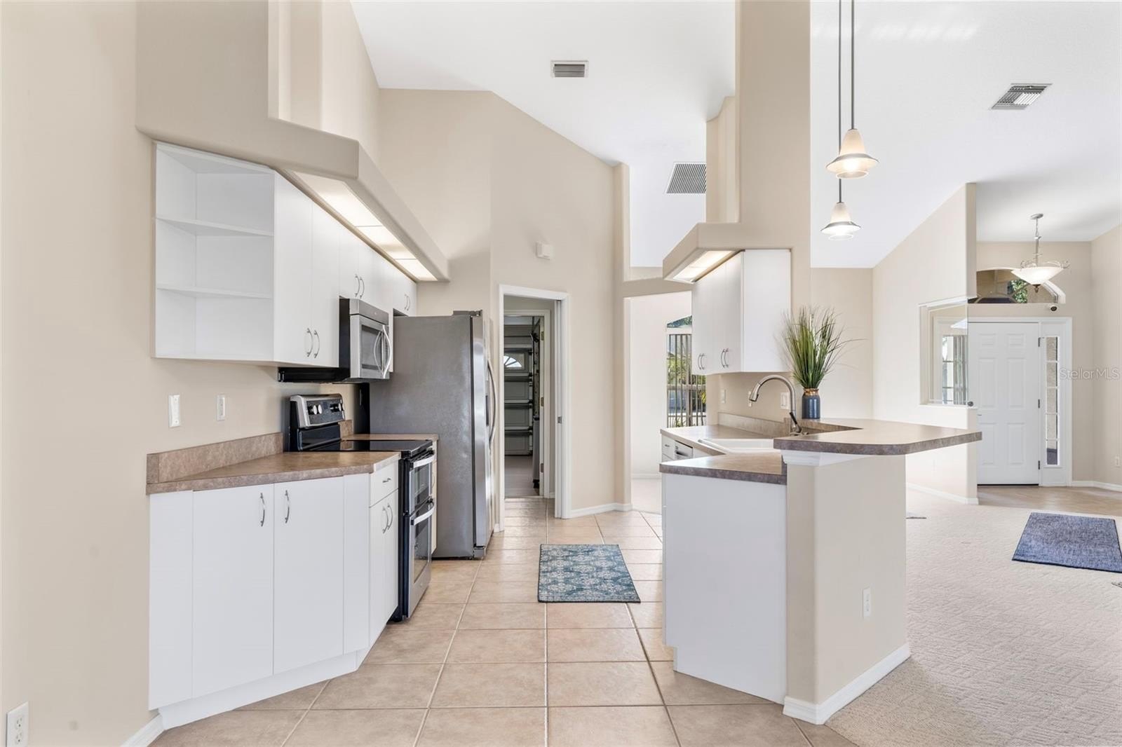 Inside, the open-concept layout is filled with natural light and highlighted by stainless steel appliances, an inside laundry room, and easy flow between living, dining, and entertaining spaces. Step outside to your private backyard oasis where the sparkling fiberglass pool is surrounded by lush landscaping, a dedicated garden area, and tranquil water views—perfect for year-round relaxation or hosting.