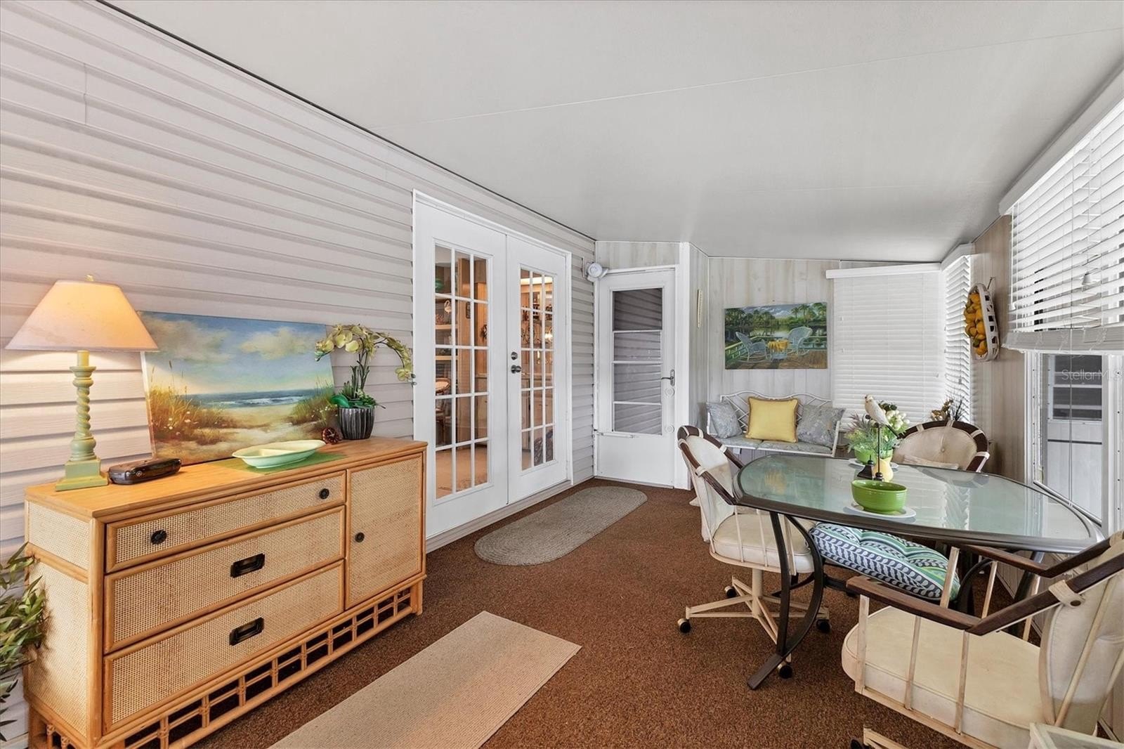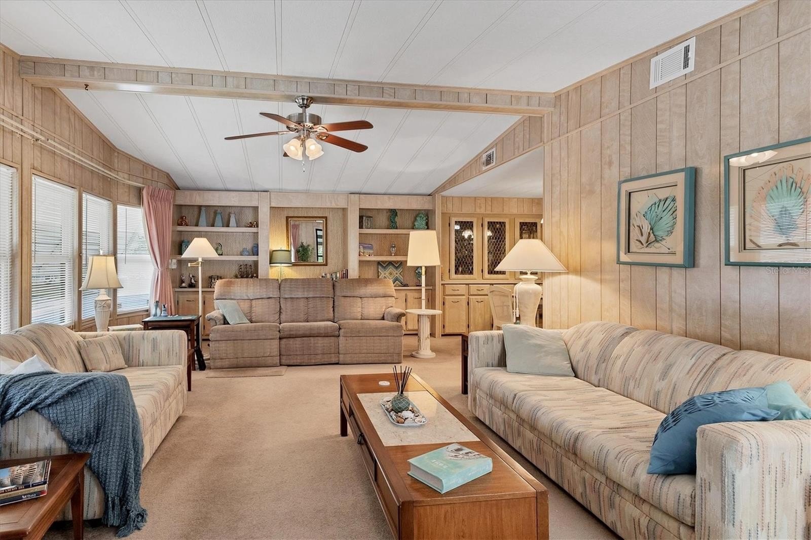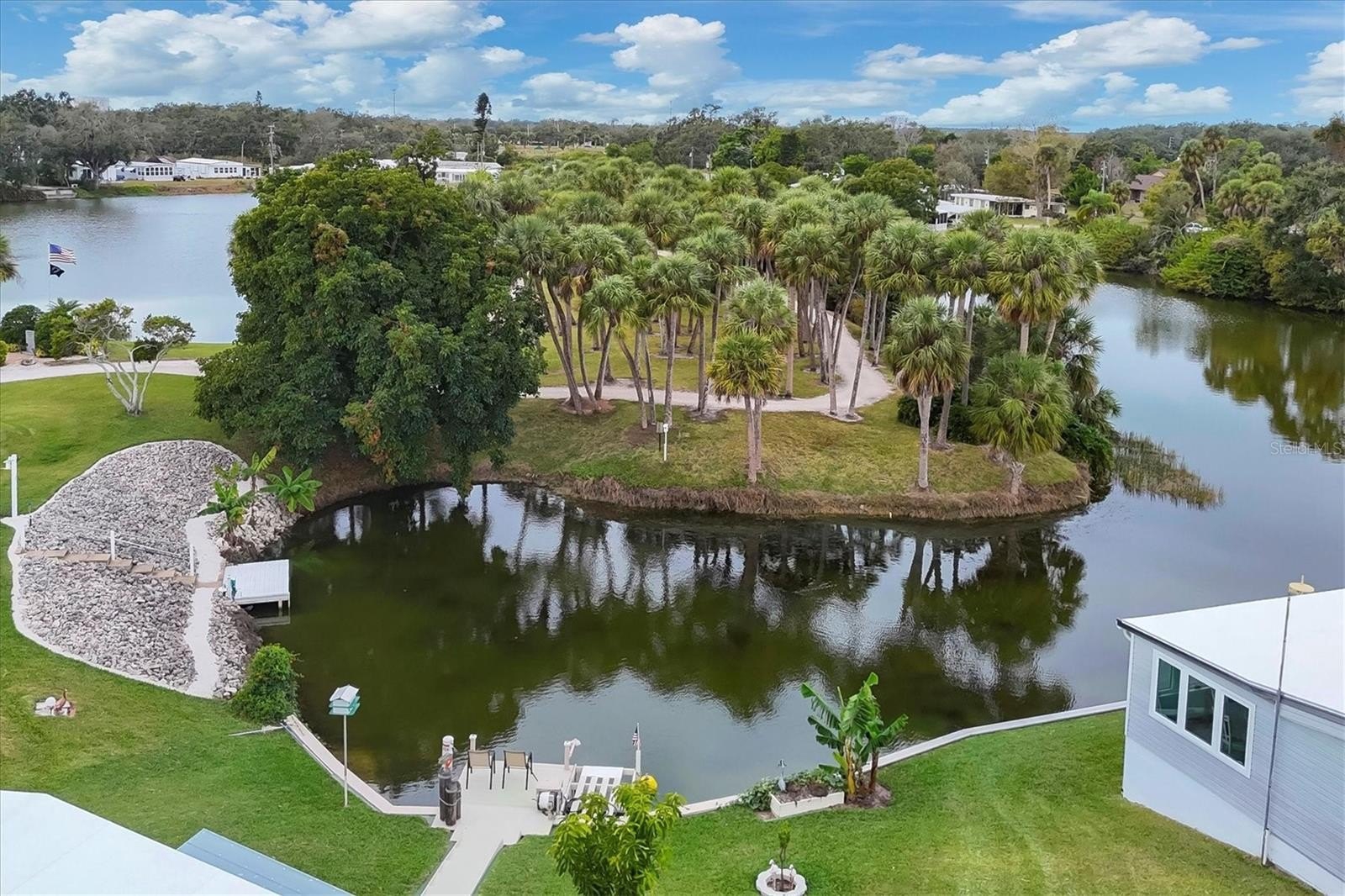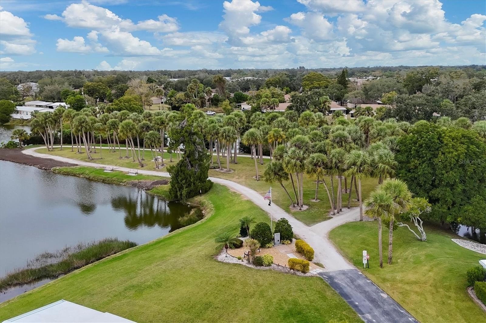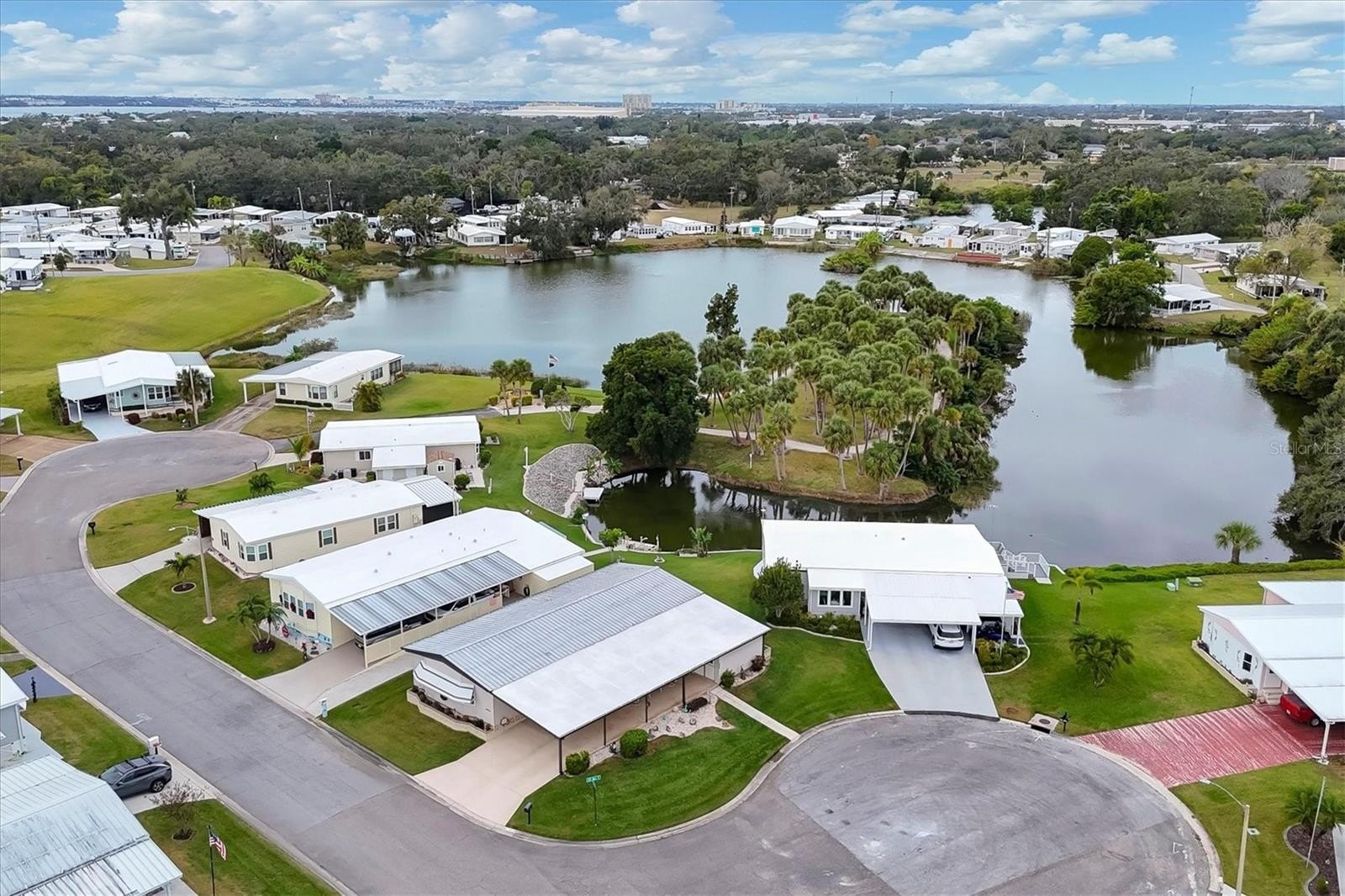 Rarely available corner lot on a quiet cul-de-sac in the land-owned 55+ community of Tidevue Estates, featuring serene views of Egret Lake. This spacious home offers 3 bedrooms, 2 baths, plus a family room and a generous living room (25x14) with built-ins and ample storage. The dining room also features built-in storage, while the kitchen provides abundant cabinets, counter space, and a breakfast counter—perfect for buffet-style entertaining. The third bedroom is versatile and ideal for a home office, craft room, or art studio,it also has a en-suite bathroom. The family room has French doors leading to an 18x10 enclosed lanai with glass windows. AC was replaced in 2024. The spacious primary bedroom includes an updated en-suite bathroom. Enjoy outdoor living on the 22x9 covered porch, perfect for creating your own outdoor oasis for relaxing and grilling. A large 15x15 shed offers two workbenches, plenty of storage, and double doors for golf cart parking. Take in peaceful lake views and watch Florida wildlife from your own backyard—true Florida living at its best. Low HOA of only $600 annually. Pets are not permitted. Plenty of activities to keep you busy in this community. Updated fitness room. Meet friends and make new ones for a game of indoor pickle ball, bocce ball, shuffleboard or take a water aerobics class. Join the Golf League. Take a bike or golf cart ride to Veterans' Park to watch the wildlife and sunset. Ellenton Premium Outlet Mall, restaurants, and medical facility's just minutes away. Easy access to I-75. Just a short drive to our beautiful Gulf Beaches. Tidevue Estates offers a vibrant lifestyle with no lot rent and a strong sense of community. This is Florida living at its finest!