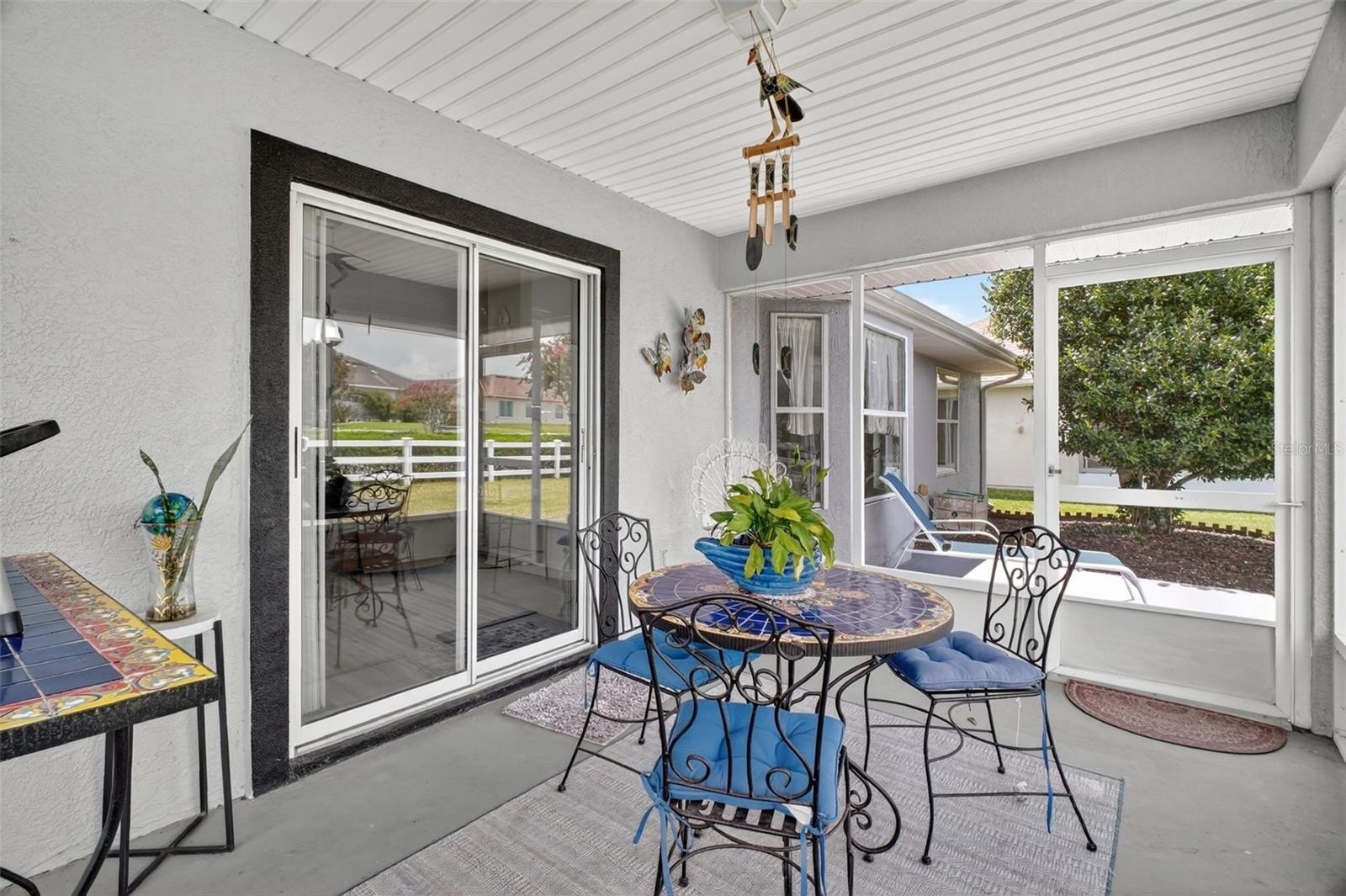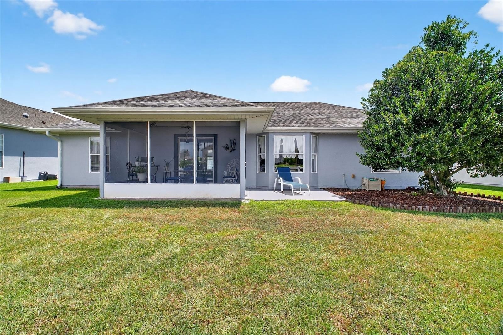 OWNER MOTIVATED--LARGE PRICE REDUCTION--Welcome to Stonecrest, a premier 55+ gated golf course community just two miles from The Villages by golf cart! This cozy, well-maintained 3-bedroom, 2-bath home is move-in ready and waiting for its new owner. Featuring NO CARPET and luxury vinyl plank flooring throughout, this popular Lily model offers an airy, open-concept layout ideal for comfortable living and entertaining. The split-bedroom floor plan offers privacy, featuring a primary suite on one side and two guest bedrooms on the other. One guest bedroom features direct access to a full EN-Suite bathroom with a tub/shower combination and vanity, ideal for visiting family or friends. The property also offers two-car garage parking with a screen. From the living room, sliding glass doors lead to a screened-in patio, ideal for relaxing or enjoying Florida's beautiful weather. Additional highlights include a new roof (installed in 2022) and a new HVAC system (installed in 2022), providing peace of mind. Located just 2 miles from local shopping, dining, and nightly entertainment in the Spanish Springs Town Square, 365 days a year.. With 24-hour security and amenities that rival a resort: 4 pools (1 indoor), a fitness center, an 18-hole championship golf course, a clubhouse, pickleball courts, softball, with over 50 active clubs, and more, you will find your days filled with many activities of your choice. Conveniently located close to restaurants, shopping, medical facilities, and entertainment—many accessible by golf cart! Stonecrest is a community with Private Roads. Nearby medical facilities and entertainment -- many accessible by golf cart. Overall, this home offers a combination of Tremendous Outdoor Space, luxurious features, and a desirable location. A WONDERFUL LIFESTYLE AWAITS YOU IN Stonecrest!