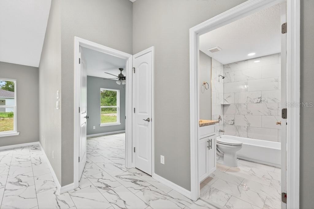 NEW CONSTRUCTION! Builder offering 1 year warranty on this Lake County Parade of Homes Winner! Beautifully appointed 3 Bedroom / 2 Bath NEW home in READY TO MOVE IN condition! Enter into this well planned home perfect for your family and entertaining! Kitchen has granite counters, shaker cabinets and matching Stainless Steel Frigidare appliances. Toss that old air-fryer, it's in the oven here! Large pantry, dishwasher and garbage disposal included. Nice dining room that keeps the family connected over meals and game night. Breakfast bar for coffee in the morning or charcuterie board for that holiday get together! Split floorplan with large Primary Bedroom offering a tray ceiling, large walk-in closet and WOW! Look at that Primary Bathroom! Granite counter, double sinks and a wonderfully spacious glassed shower! This is the way to start your day off right and then unwind at the end of it. Both baths are granite and the floors are tile but take a better look at the rest of the house! That is attractive, Luxury Vinyl! Covered back porch for enjoying the fall evening. Indoor laudry room complete with utility sink. And a double car garage with opener. This is the one!