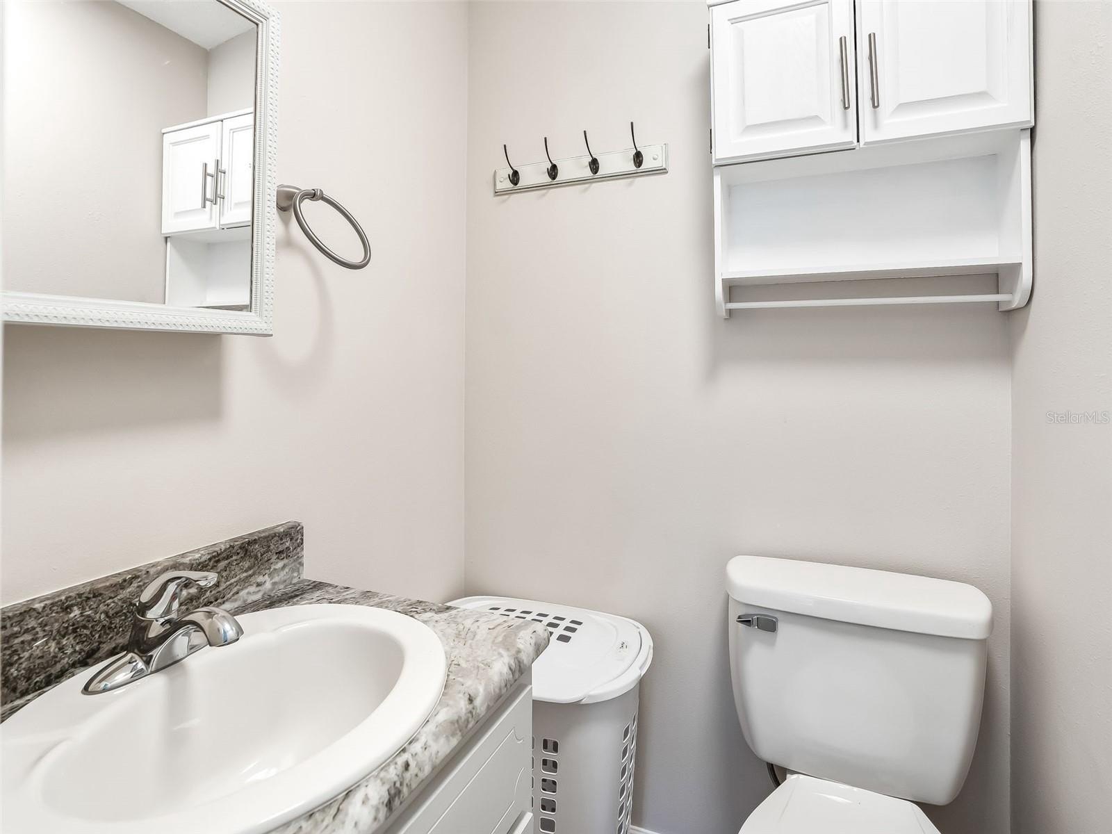 Both bedrooms include ample closet space, one with WALK-IN closet and the other with DOUBLE closets, and the home also features a dedicated storage room with washer, dryer, and built-in shelving for added convenience.