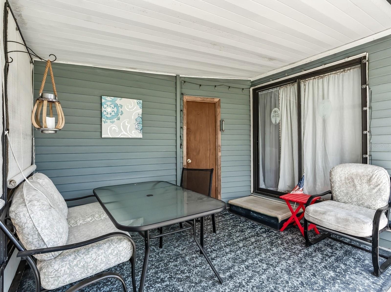 The great room offers a QUEEN SLEEPER sofa and opens to the covered seating area and FULLY screened lanai—ideal for relaxing or hosting guests. The spacious dining area flows seamlessly into the living space for effortless entertaining.
