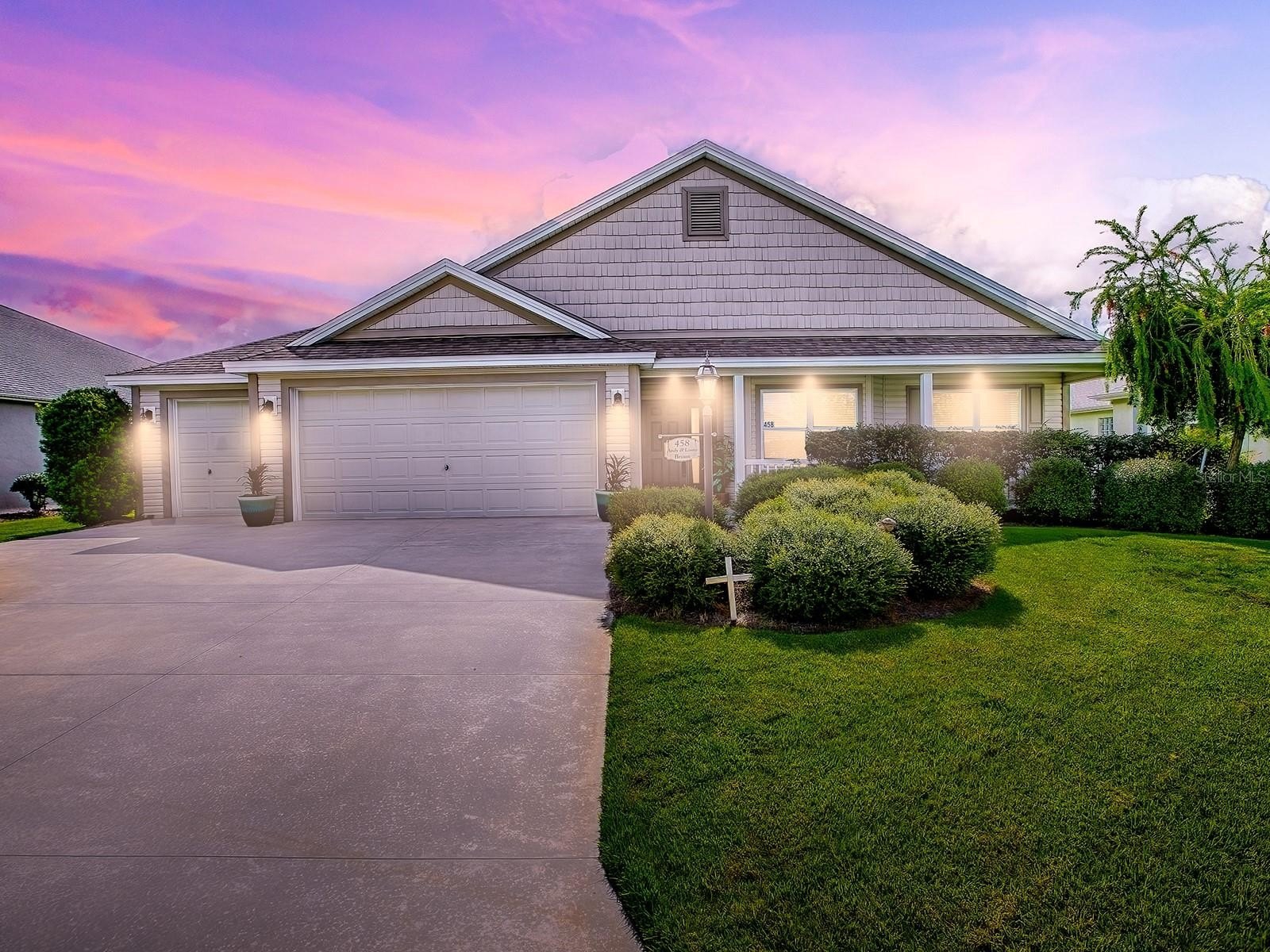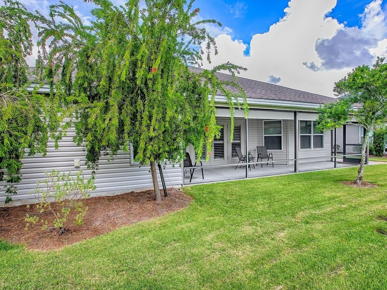 Welcome to this stunning Sycamore Model home located in the highly desirable village of Osceola Hills! Perfectly situated just minutes from shopping, dining, and everyday conveniences, this beautifully updated 3-bedroom, 2-bath residence offers 1,830 sq ft of stylish and comfortable living space. From the moment you arrive, you’ll be charmed by the inviting curb appeal from the quaint front porch to the thoughtful design throughout. The heart of the home features a gourmet Kitchen complete with Granite Countertops, a Prep Island and Breakfast Bar, a convenient second Sink, Under-Cabinet Lighting, and Stainless Steel Appliances—ideal for both everyday living and entertaining. Enjoy seamless indoor-outdoor living with French Doors leading to the peaceful Lanai, where you can unwind and take in the private green space. The Primary Suite is a true retreat featuring dual custom closets, Recessed Lighting, and a luxurious ensuite bath showcasing a Custom-tiled Walk-in Shower and separate Dual Vanities. Throughout the home, you’ll appreciate upgraded light fixtures, quality laminate flooring, and plantation shutters adding warmth and style. Additional highlights include a stretched garage with attic stairs, offering extra storage and convenience. This beautiful Osceola Hills home blends elegance, comfort, and functionality—ready for you to move in and start enjoying The Villages lifestyle!