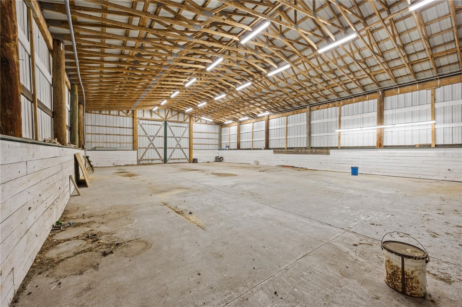 The home parcel is fenced and cross-fenced, with a spring-fed pond providing year-round water for livestock, wildlife, and birds. Both hayfield parcels are perimeter-fenced improved pastures that have produced quality hay for decades. The property’s agricultural infrastructure is substantial: massive tractor and equipment barns, plus an expansive, fully outfitted workshop complete with electric and compressed-air lines throughout—true working spaces for farm equipment, fabrication, or creative projects.