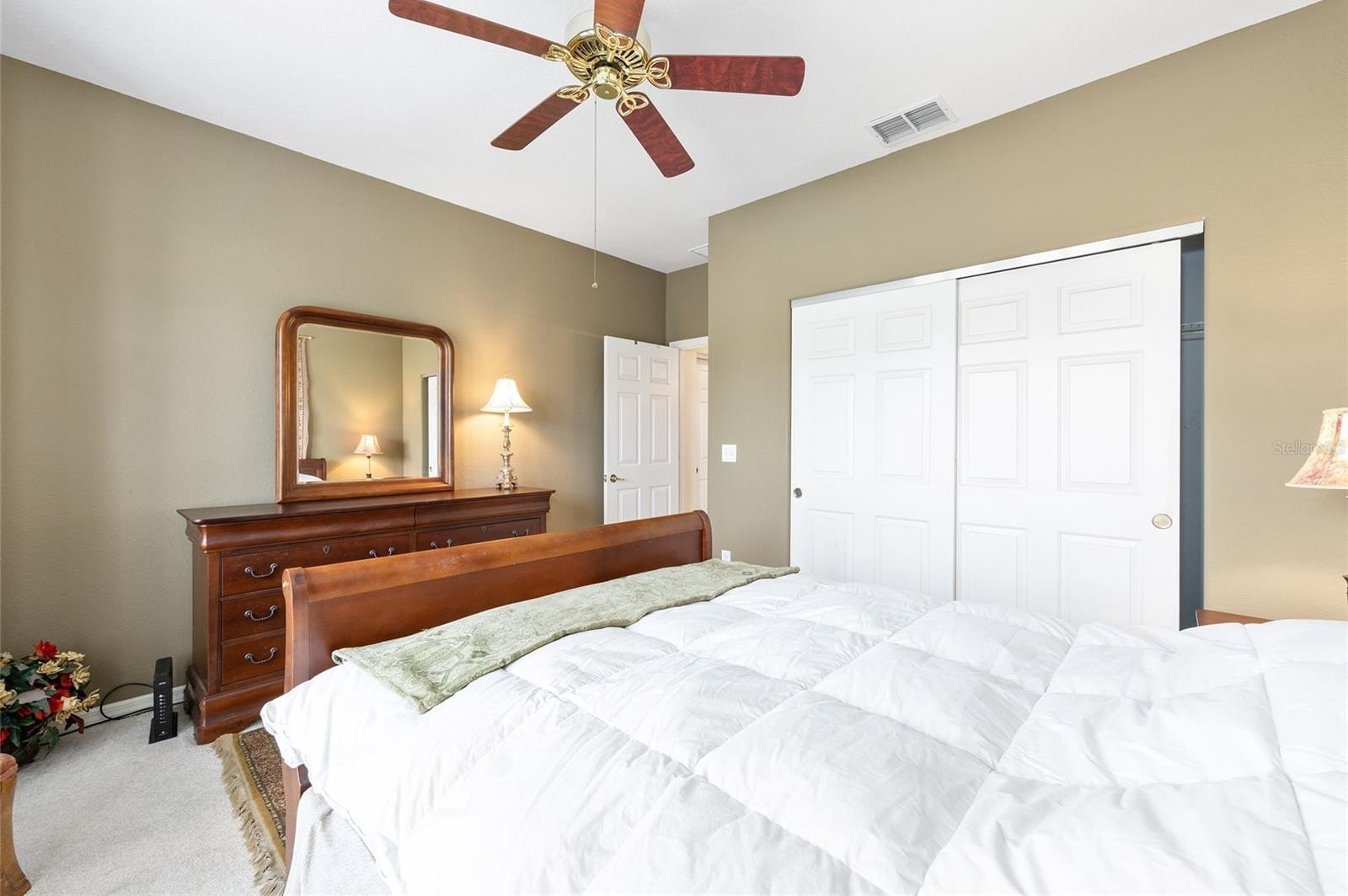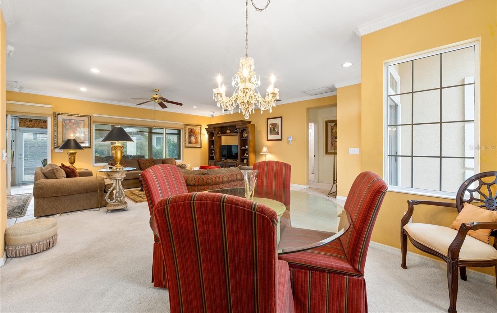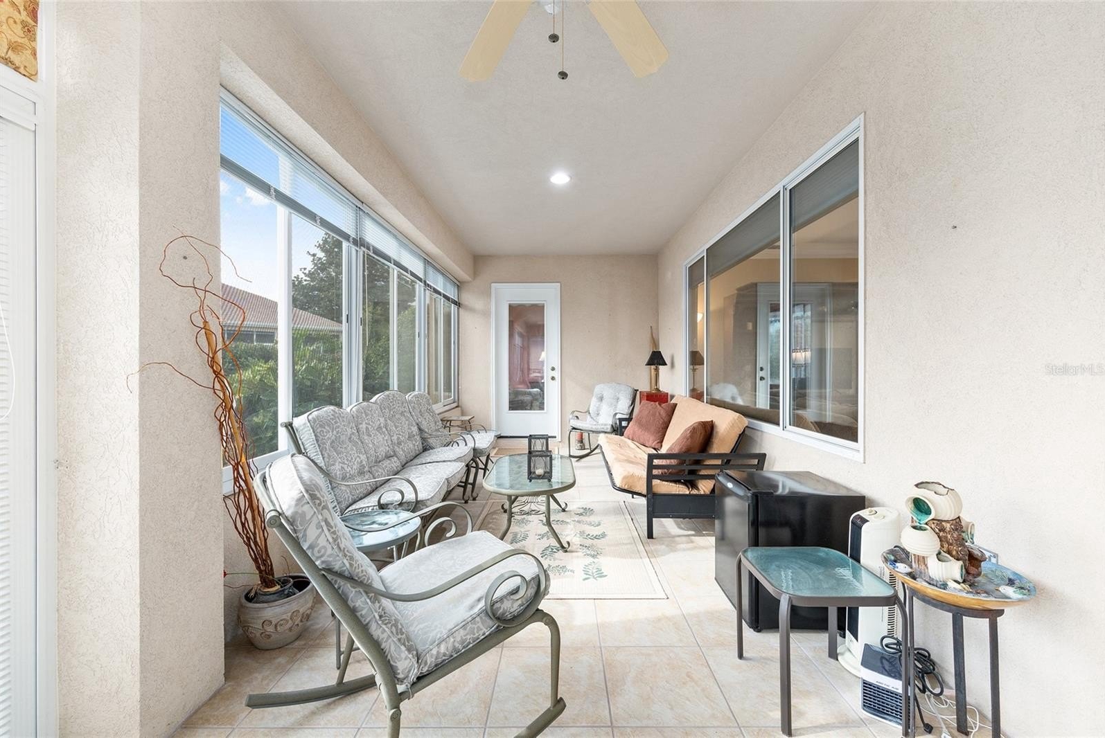 First time on the market! This charming 2-bedroom, 2-bath Madeira model with a front courtyard is being sold turnkey — including a gas golf cart! This popular floor plan offers comfort and functionality, featuring tile and carpet flooring and an enclosed lanai with acrylic windows, horizontal blinds, and ceramic tile. Step outside to a large pavered patio surrounded by privacy hedges—perfect for outdoor relaxation or entertaining. The kitchen, open to the living and dining rooms, includes maple cabinetry, newer stainless steel refrigerator and dishwasher, recessed lighting, and a closet pantry. A utility room just off the kitchen makes an ideal computer niche or hobby space. The living and dining area boasts crown molding and surround sound, while the primary suite features bay windows, carpet flooring, and an ensuite bath with a step-in shower. The oversized garage offers a washer and dryer, drop-down attic stairs, utility sink, and even two bicycles ready for your use. Major updates include a new roof (2021) and HVAC (2018) for peace of mind. Being sold turnkey — just bring your suitcase! Don’t miss this opportunity to own a beautifully maintained Madeira. See it today!