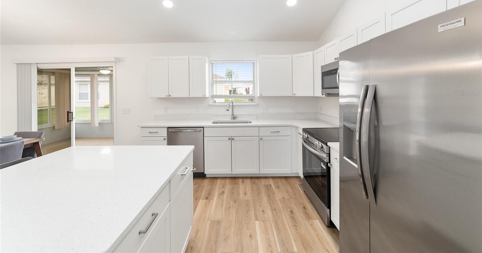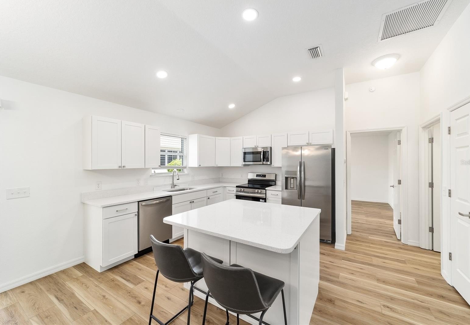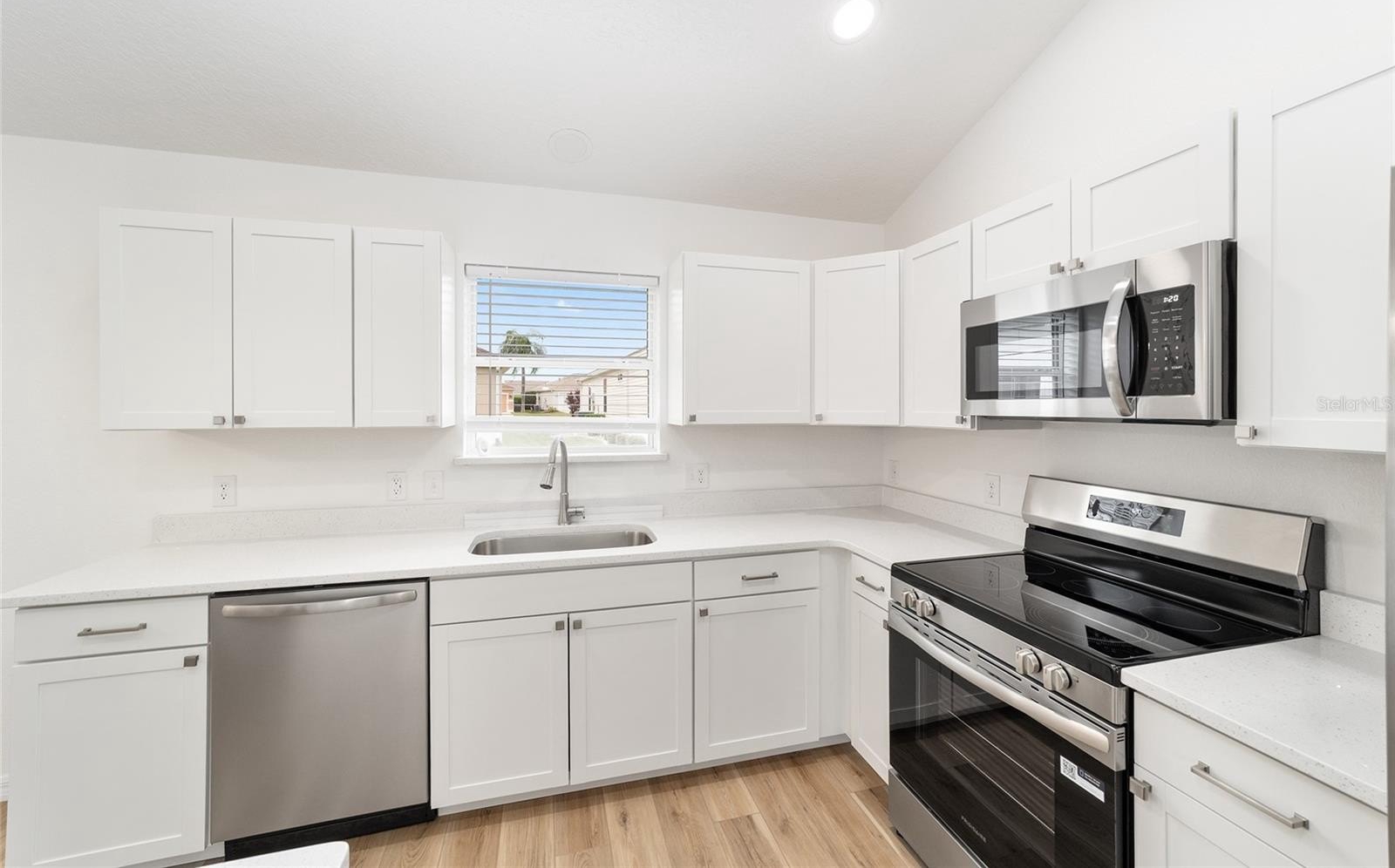 Check out my brand NEW KITCHEN CABINETS. Go ahead, open them. They are real. They are clean. They close all the way. I am also sporting QUARTZ Countertops and a BRAND NEW set of stainless steel appliances that have never cooked a disappointing meal. You might just elevate your cooking game by standing near them.