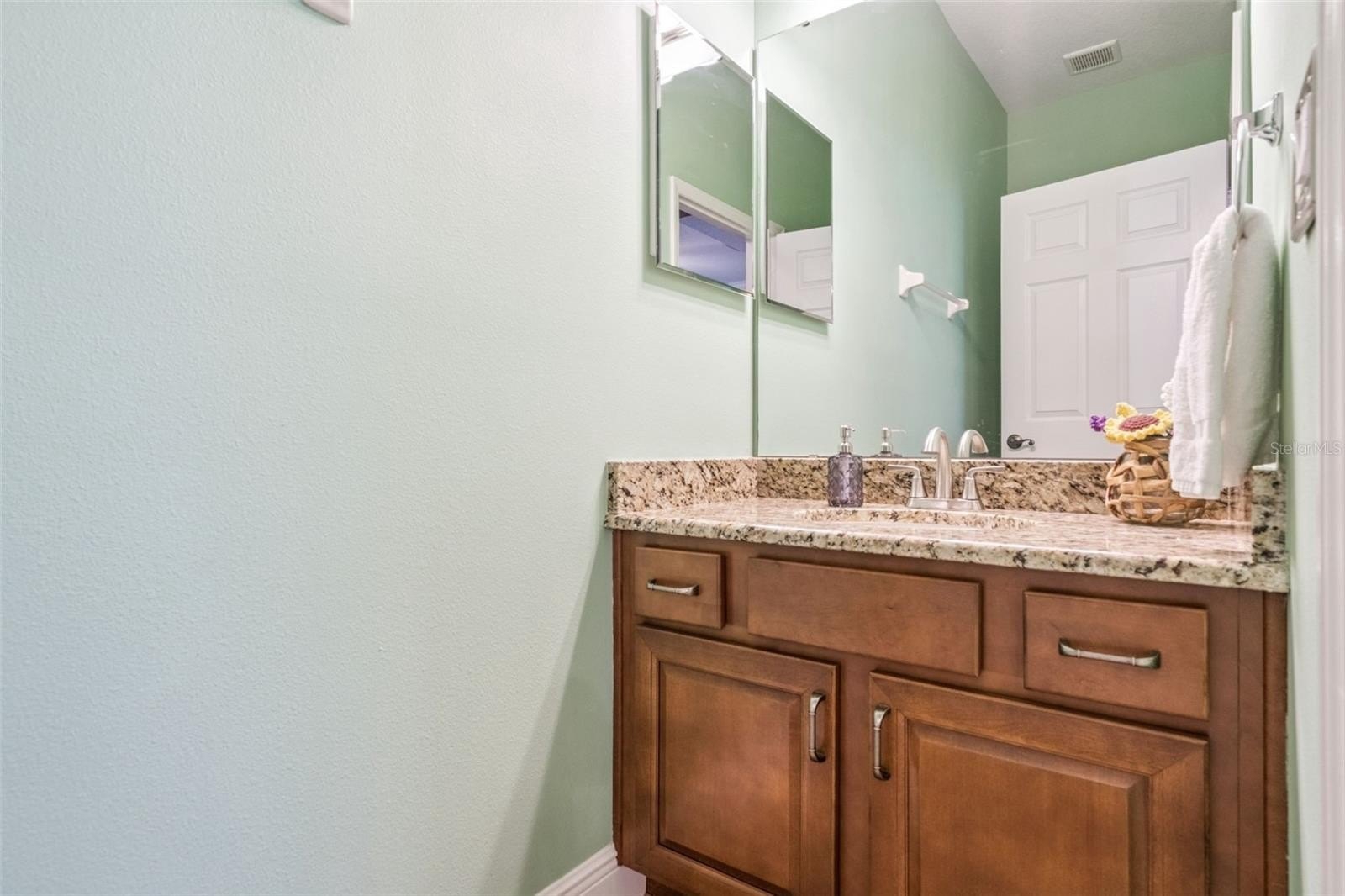 The open plan design features a formal living room/dining room and a family room/kitchen combo. Split bedroom plan with the primary bedroom at the back of the home enjoys multiple windows for natural light. Primary bathroom has two sinks, granite countertops, a large tub and a separate shower. The gourmet kitchen has newer appliances, a double built-in oven, ceramic cooktop and granite countertops lots of cabinet space. There is also a breakfast bar with stools. The furniture is negotiable (except for the primary bedroom) The community has a community pool and a playground. This home has the added convenience of being close to Disney, major attractions and many restaurants, shopping, etc.