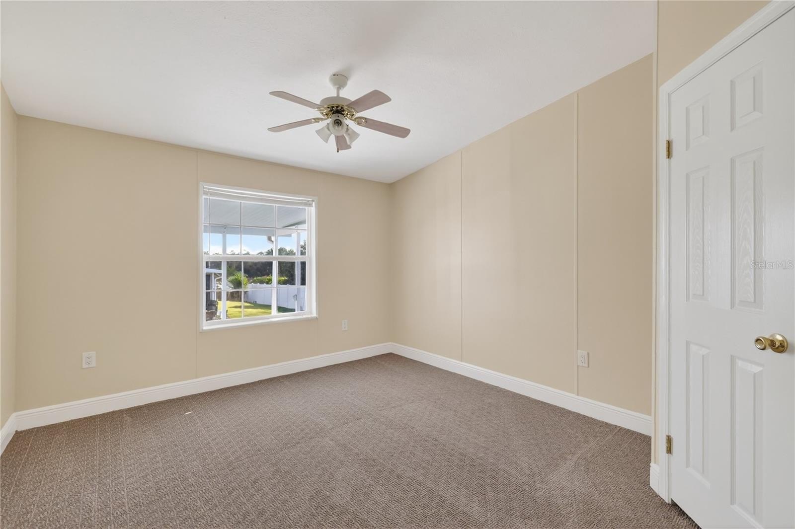 AS YOU ENTER, YOU ARE WELCOME BY A SPACIOUS LIVING AND DINING AREA WITH VAULTED CEILINGS, CREATING AN OPEN AND AIRY FEEL. THE DINING ROOM FLOWS NICELY OFF THE LIVING ROOM AND A GLASS SLIDING DOOR LEADS TO THE LANAI. THE KITCHEN IS BOTH FUNCTIONAL AND INVITING, FEATURING TILE COUNTERTOPS, WOOD CABINETRY, RECESSED LIGHTING, AND A BREAKFAST BAR. ENJOY THE SPACIOUS PRIMARY BEDROOM OFFERING NEW CARPETING, FRESHLY PAINTED, CEILING FAN AND WALK-IN CLOSET. THE PRIMARY BATHROOM INCLUDES, LALMINATE FLOORING, HIS AND HER SINKS, LINEN CLOSET, WALK-IN SHOWER AND SKYLIGHTS. THE 2 GUEST BEDROOMS ARE GENEROUSLY SIZED, EACH WITH CEILING FANS, NEW CARPETS; ONE GUEST BEDROOM HAS A WALK-IN CLOSET. THE GUEST BATHROOM HAS A TUB/SHOWER, LINEN CLOSET AND SKYLIGHT. ADDITIONAL FEATURES INCLUDE AN INSIDE LAUNDRY ROOM, AND A STORAGE SHED WITH SHELVING. AN EXTENDED DRIVEWAY THAT ACCOMMODATES 5 VEHICLES, WITH AN OVERHANG PROVIDING SHADE FOR 2 CARS. NEWER A/C 2022, ROOF MARCH 2019. THE LARGE LANAI OFFERS ALL-NEW SCREENING, PERFECT FOR RELAXING OR ENTERTAINING. NEWLY PAINTED ROOMS, NEW CARPET, NEW LAMINATE FLOORS.