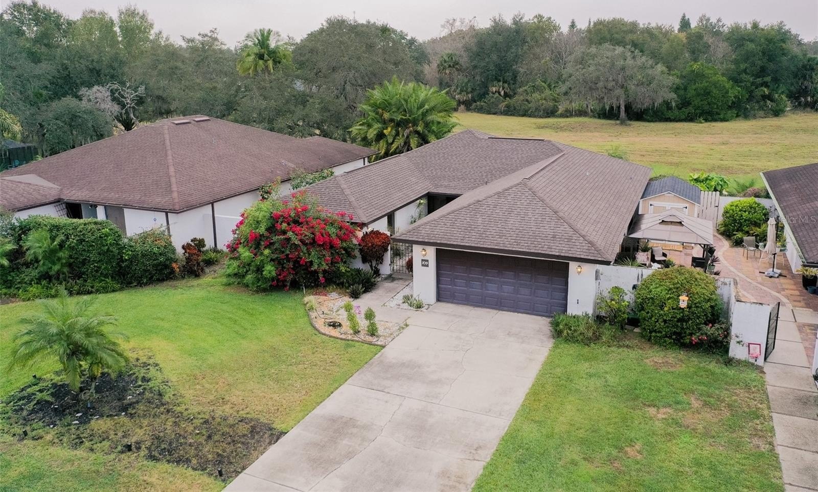 Welcome home to comfort, style and tranquility all nestled within a vibrant golf course community. This spacious 1,793 SF gem boasts two true Master Suites, set upon a generous 60' x 120' lot that backs directly onto the lush fairways of Grenelefe golf course, ensuring you enjoy breathtaking views and the peaceful ambiance of nature. With no neighbors behind or in front, your privacy is beautifully preserved. The modern exterior, accentuated with light stucco and warm wood accents, welcomes you through a secure gated courtyard. Step inside to discover a bright, open floor plan designed for both leisure and entertaining. As you enter, the sunken carpeted Living Room greets you with a striking tongue-and-groove wood ceiling, highlighted by oversized sliders that flow seamlessly to the screened lanai—your perfect retreat for savoring morning coffee or soaking in breathtaking sunsets. The convenient wet bar serves as an ideal entertaining hub, and the stylish two-toned kitchen, complete with a breakfast bar and chic tile backsplash, is poised for culinary adventures alongside the adjacent dining area. The thoughtfully designed split-suite layout ensures exceptional privacy, with Master Suite #1 featuring direct lanai access and a spacious dressing room equipped with dual sinks and ample storage. Master Suite #2 offers a delightful escape with sliding doors leading to a beautifully landscaped side courtyard and a full 10-foot wall of closets to accommodate all your treasures. Enhancing your lifestyle further, this home is equipped with a new water filtration system ensuring fresh, clean water at every turn, and a luxurious hot tub perfect for unwinding after a long day. Additional highlights include a large laundry room, an oversized two-car garage, and the convenience of a heated community pool just up the street. A unique community benefit is neighborhood’s privately operated water treatment plant, meaning residents enjoy reliable service without dealing with city municipal processes—adding an extra layer of convenience and peace of mind. As part of a thriving community, you'll appreciate the exciting developments underway, including a brand new country club, approved plans for several retail businesses—yes, that includes a planned Trader Joe’s—beautiful walking trails, and updated secured bus stops for school. The golf-cart-friendly Grenelefe community invites you to walk, bike, or leisurely explore all it has to offer. And as a fun bonus, the property attracts an abundance of wildlife, including two families of cardinals and sightings of native protected species like the blue-tailed mole skink—an enjoyable touch of Florida nature for those who love the outdoors. Whether you seek a full-time residence or a peaceful seasonal getaway, this home embodies the perfect blend of comfort, convenience, and serene Florida living. Don't miss this opportunity to make it your own!
