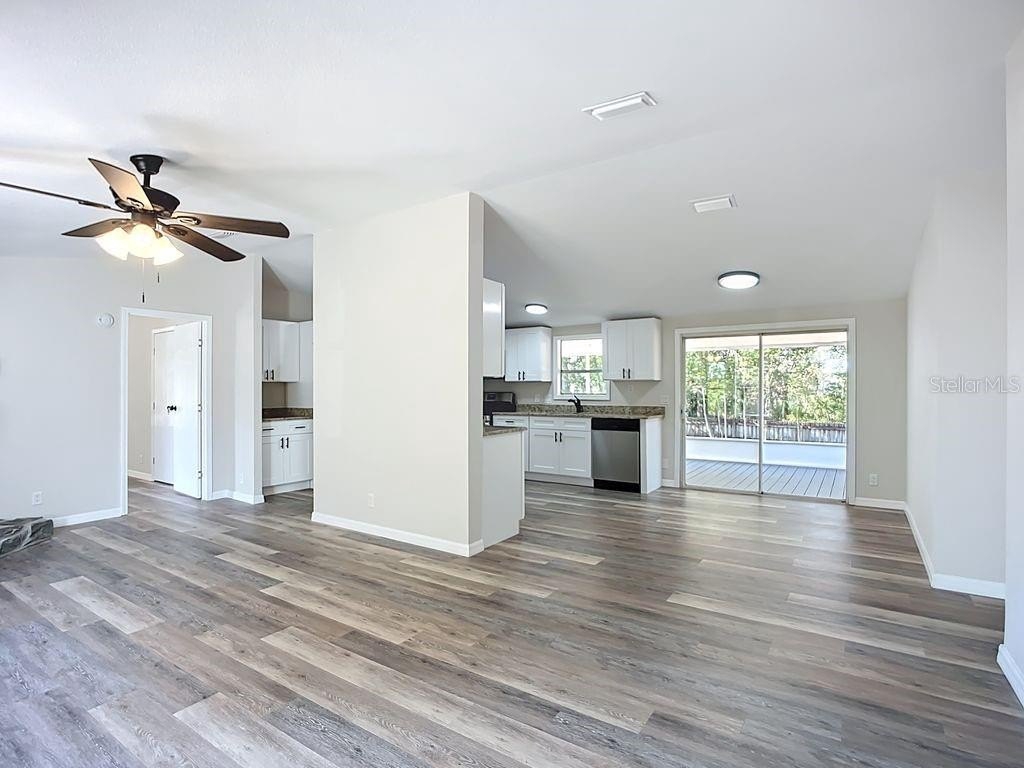 Inside, this home features an open-concept floor plan with brand-new flooring throughout, abundant natural light, and a cozy living area highlighted by a beautiful stone fireplace—perfect for relaxing or entertaining. The fully updated kitchen boasts white shaker-style cabinetry, granite countertops, stainless steel appliances, and ample storage, making it both stylish and functional.