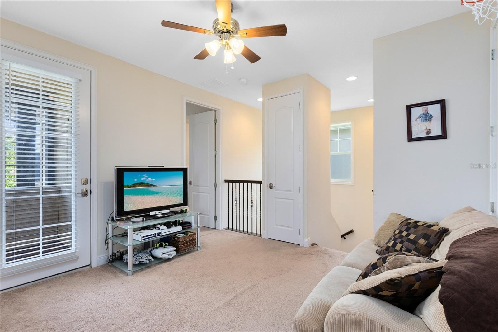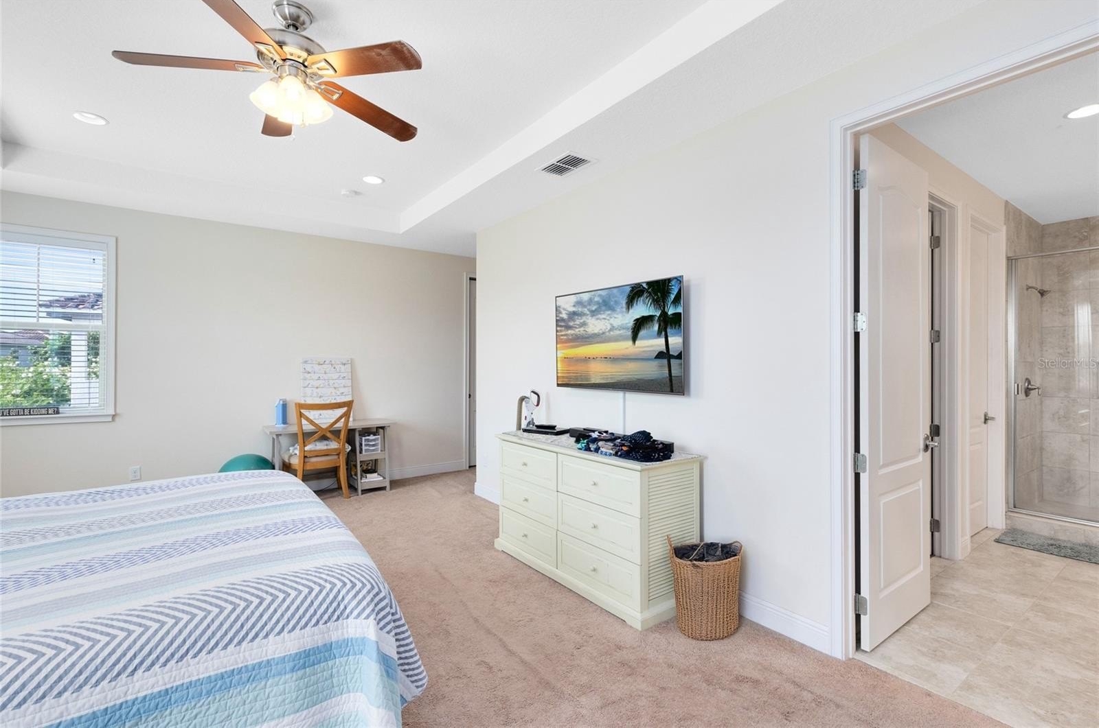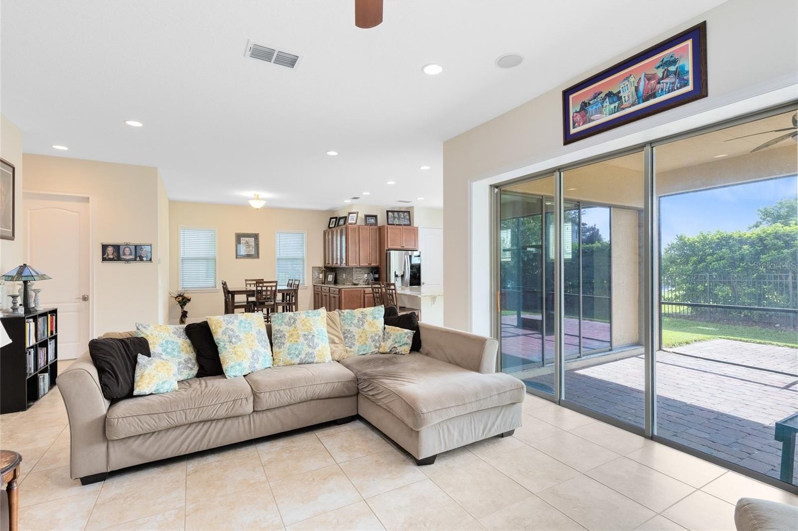 Upstairs, the expansive primary suite boasts a tray ceiling, pond views, a large walk-in closet, and a spa-like bath with dual vanities and an oversized shower. A spacious loft adds a second living area and opens to a private balcony—perfect for relaxing. The screened lanai overlooks a fenced backyard with serene pond views and space to add a pool.