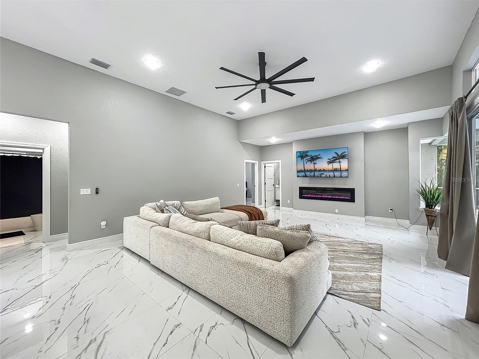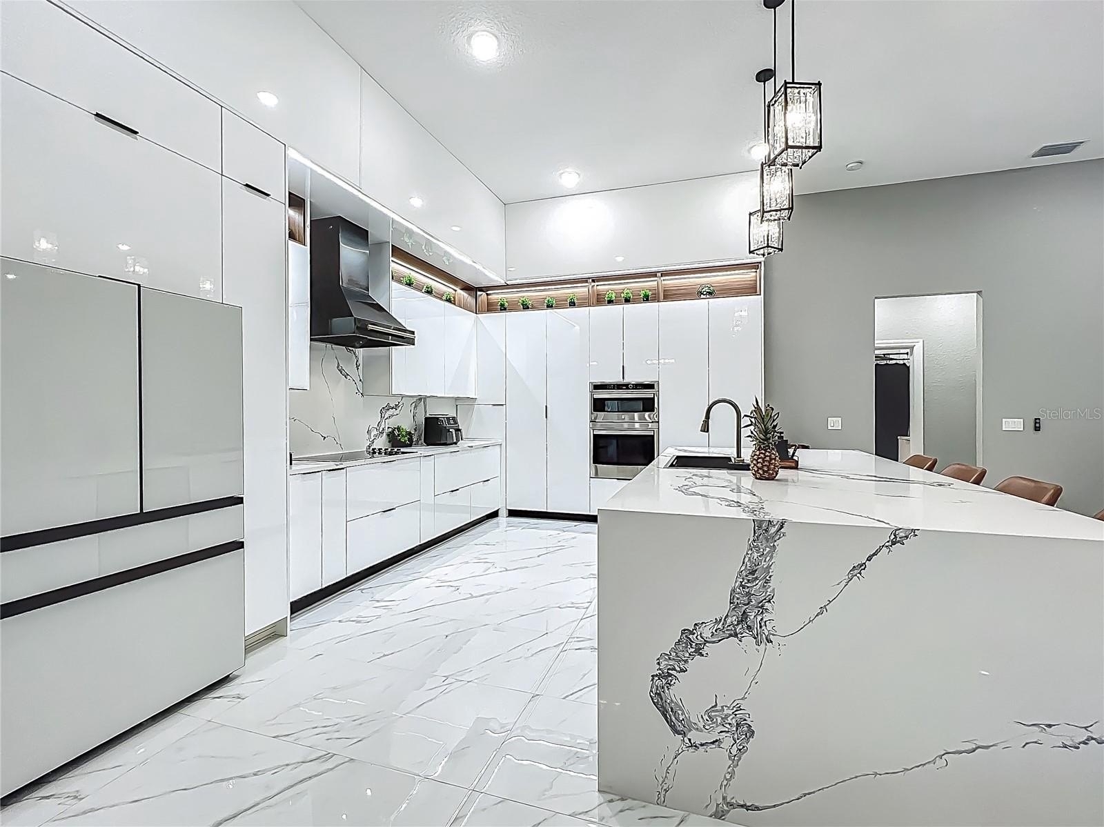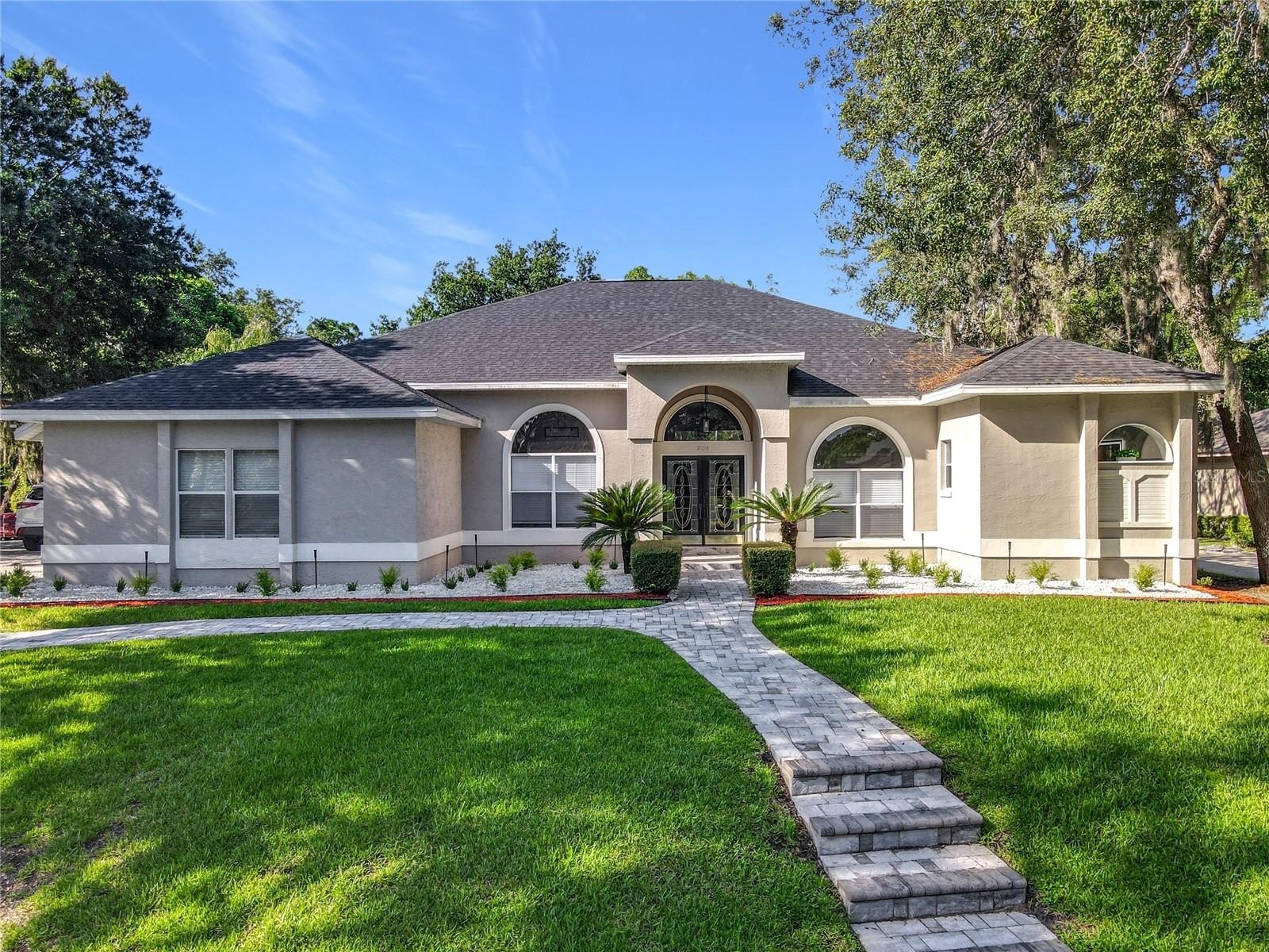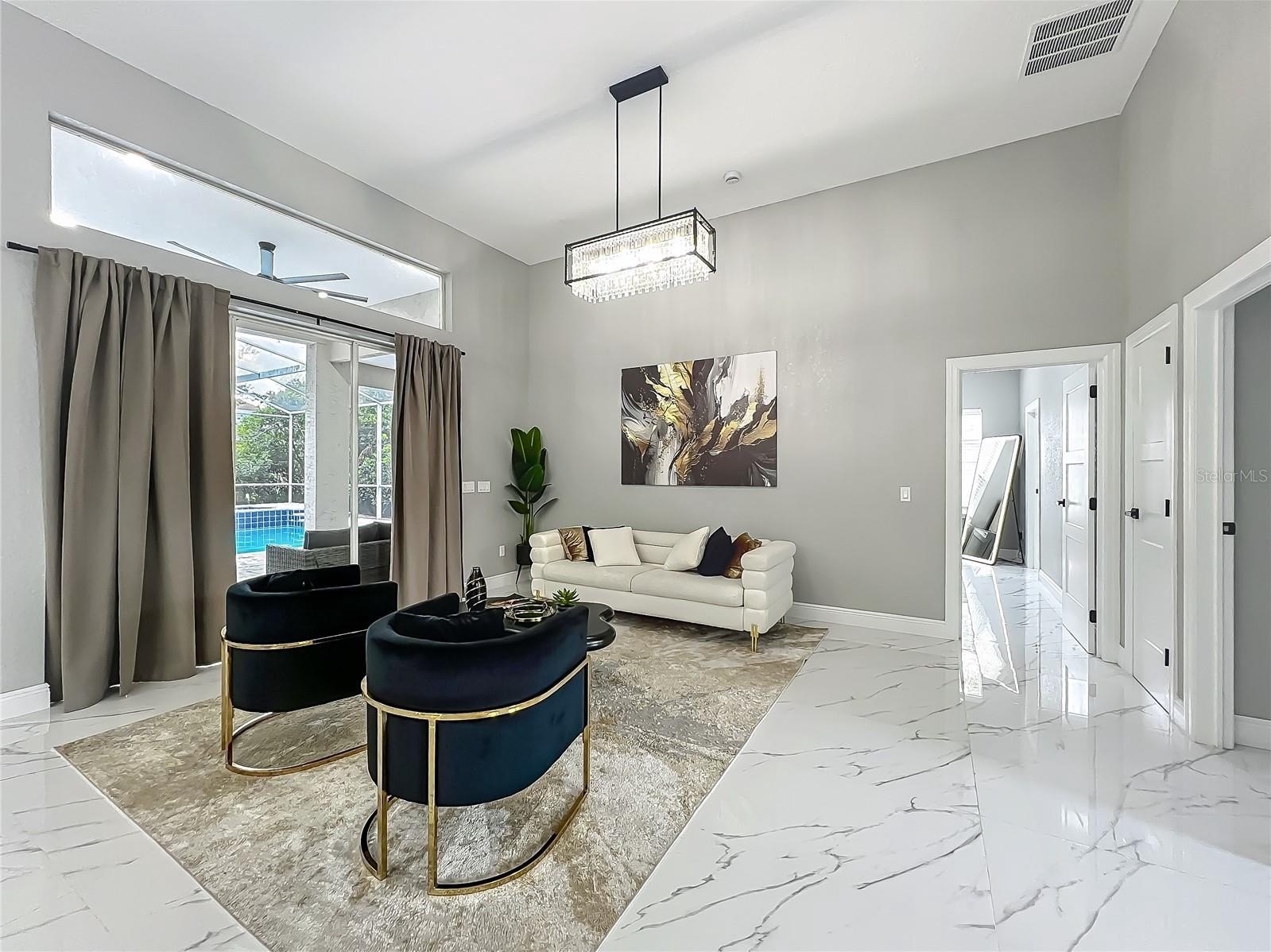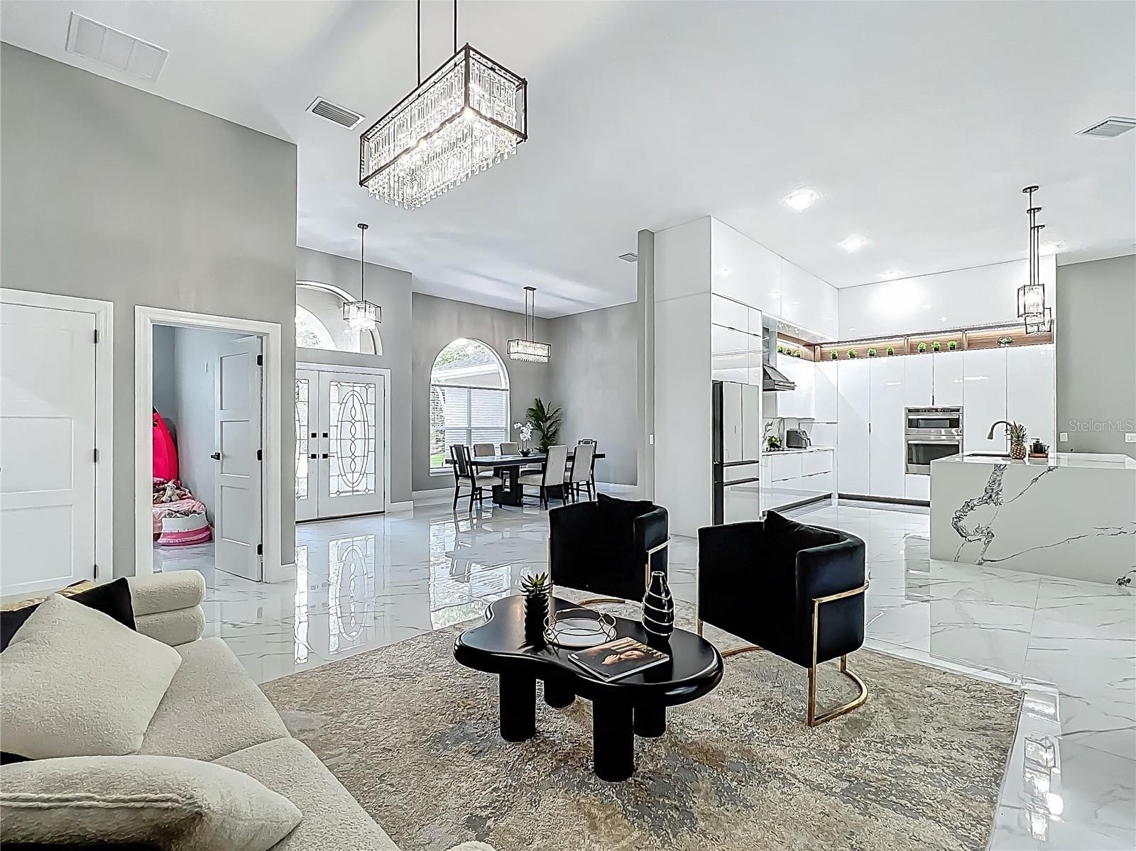 MAJOR PRICE REDUCTION - EXCEPTIONAL OPPORTUNITY! Welcome to a masterpiece of modern design and refined living in the prestigious Glen Eagle community of Tuscawilla. Built in 2023, this architectural re-imagining tucked away in a quiet cul-de-sac features 5-bedrooms and 3.5-baths and epitomizes luxury, sophistication, and thoughtful homage at every turn while encapsulating the modern family space. Bathed in natural light, the home showcases a brilliant interplay between design and illumination. Stunning porcelain tile with a marble-like finish flows seamlessly throughout the home, complementing the extravagant yet refined lighting fixtures that accentuate the home’s elevated aesthetic. The heart of the home is a show-stopping central kitchen, complete with sleek floor-to-ceiling white cabinetry accented with warm woodgrain niches and integrated LED lighting. A grand, white granite island offers an inviting centerpiece ideal for entertaining, culinary artistry, and family interconnectivity. The open-concept layout is enhanced by soaring ceilings and expansive windows, creating palatial living spaces that exude elegance and warmth. A substantial formal dining room is perfect for lavish dinner parties, while the stylish formal living room provides a serene space for conversation. The inviting family room, anchored by a sleek electric fireplace, flows effortlessly into the kitchen and living area—all overlooking the resort-style pool deck. The primary suite is a private sanctuary—expansive and serene, featuring a sun-kissed sitting area and direct pool access via a sliding glass door. The spa-inspired en suite bath is a statement in luxury, boasting a floating dual vanity with LED smart mirrors, an oversized walk-in shower, a single-piece designer toilet, and a custom walk-in closet designed for the discerning homeowner. Every secondary bedroom offers generous proportions and comfort, while the home’s layout has been meticulously planned for both privacy and flow. Step outside to a covered pool oasis with a pavered deck designed for year-round enjoyment. Whether hosting guests or relaxing in solitude, this outdoor haven is the perfect complement to the modern interior. Glen Eagle lies in the heart of the Tuscawilla community which features miles of walking trails, golf cart friendly roads, multiple parks and greenspaces including tennis and pickleball courts, as well as the Tuscawilla Country Club. A rare opportunity to own a truly bespoke residence in one of Central Florida’s most sought-after communities.