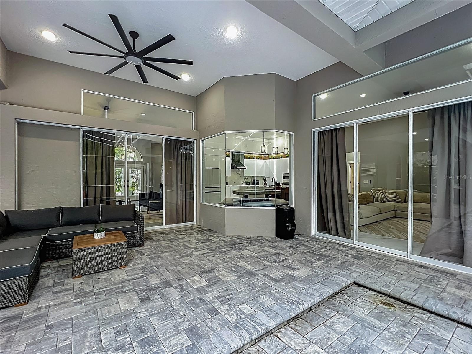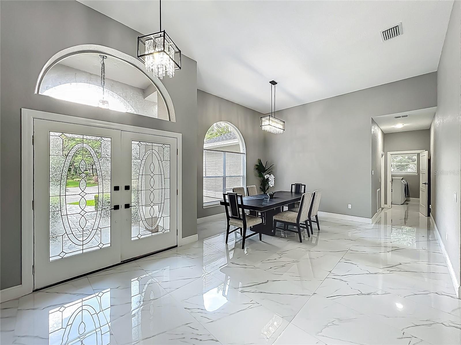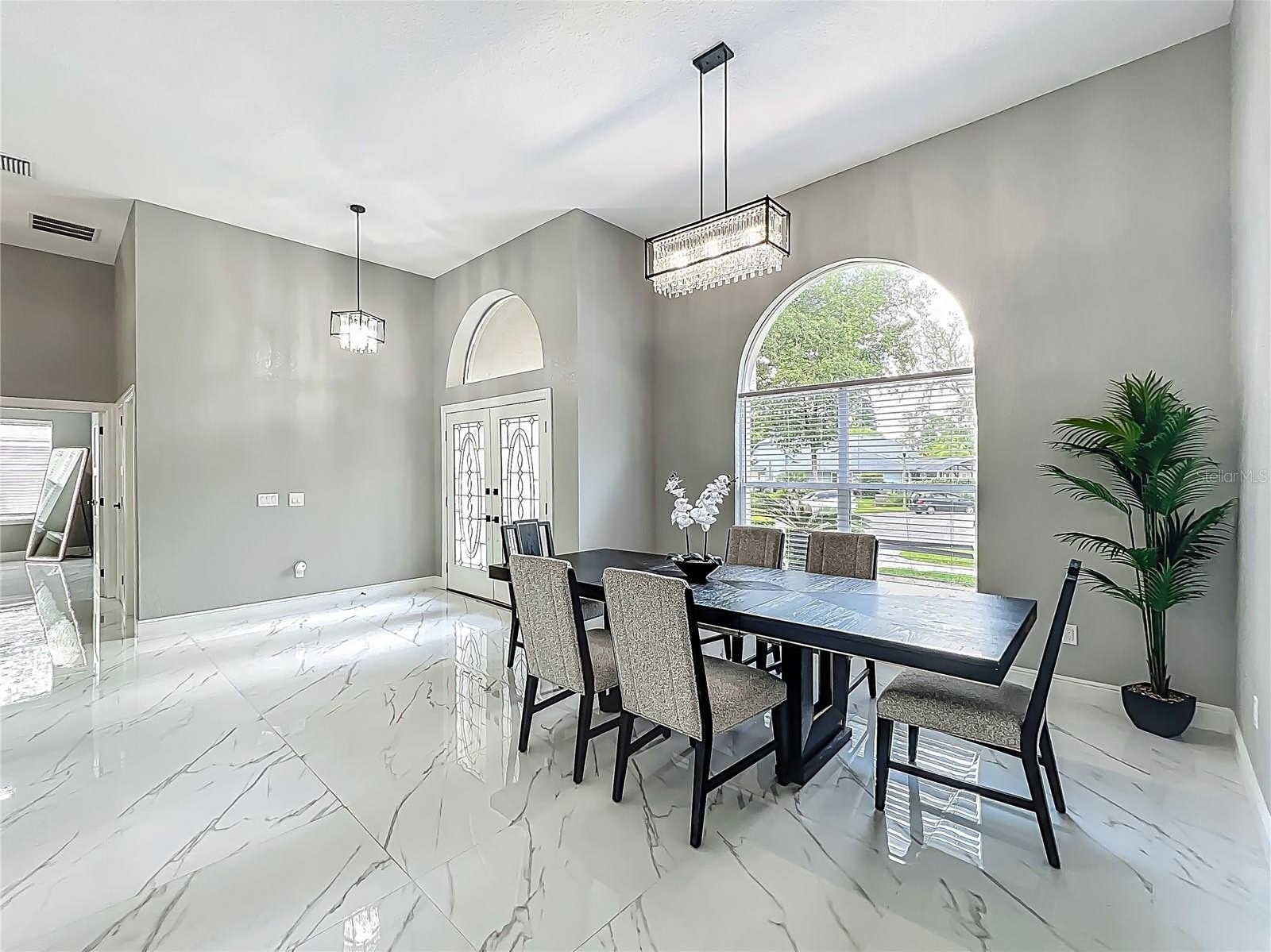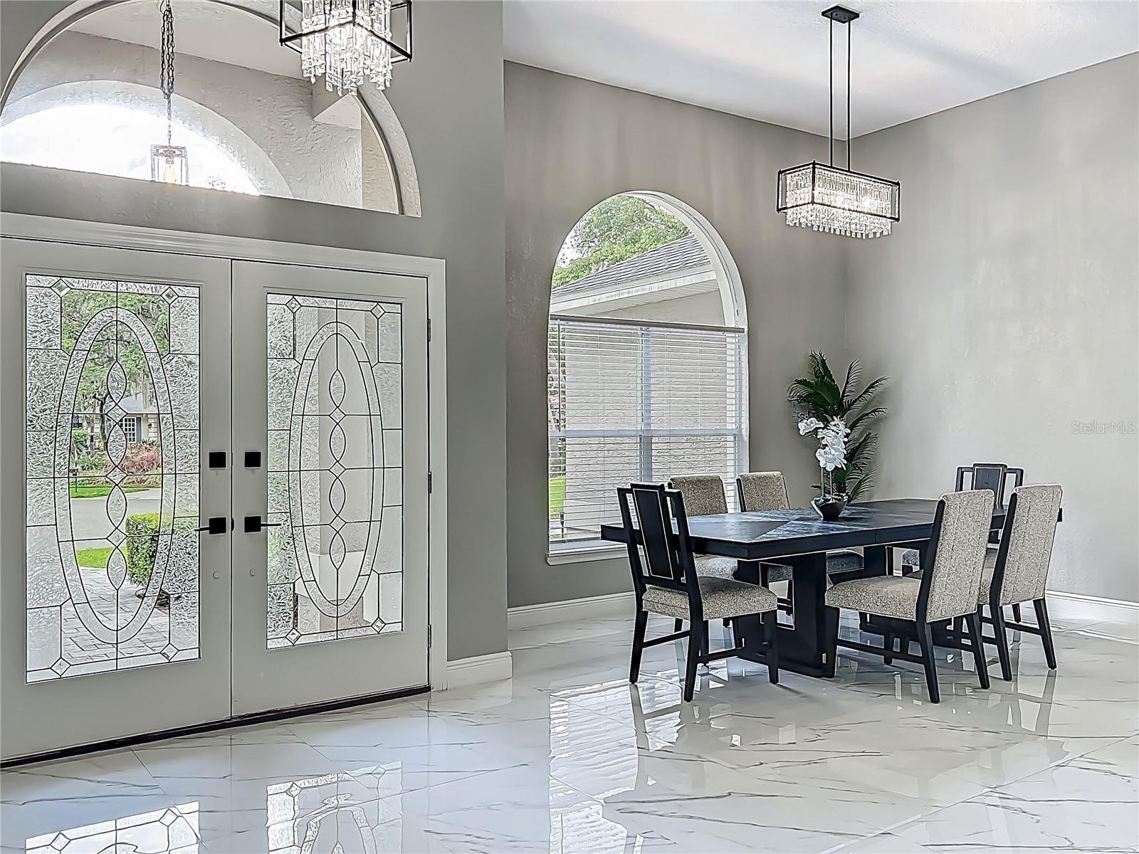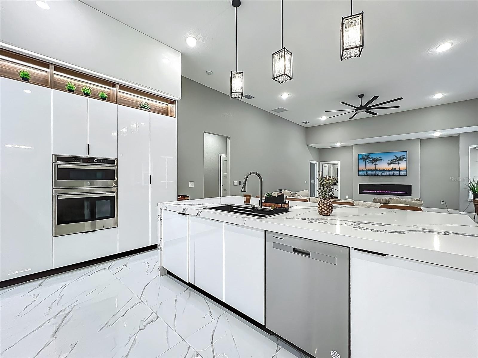 MAJOR PRICE REDUCTION - EXCEPTIONAL OPPORTUNITY! Welcome to a masterpiece of modern design and refined living in the prestigious Glen Eagle community of Tuscawilla. Built in 2023, this architectural re-imagining tucked away in a quiet cul-de-sac features 5-bedrooms and 3.5-baths and epitomizes luxury, sophistication, and thoughtful homage at every turn while encapsulating the modern family space. Bathed in natural light, the home showcases a brilliant interplay between design and illumination. Stunning porcelain tile with a marble-like finish flows seamlessly throughout the home, complementing the extravagant yet refined lighting fixtures that accentuate the home’s elevated aesthetic. The heart of the home is a show-stopping central kitchen, complete with sleek floor-to-ceiling white cabinetry accented with warm woodgrain niches and integrated LED lighting. A grand, white granite island offers an inviting centerpiece ideal for entertaining, culinary artistry, and family interconnectivity. The open-concept layout is enhanced by soaring ceilings and expansive windows, creating palatial living spaces that exude elegance and warmth. A substantial formal dining room is perfect for lavish dinner parties, while the stylish formal living room provides a serene space for conversation. The inviting family room, anchored by a sleek electric fireplace, flows effortlessly into the kitchen and living area—all overlooking the resort-style pool deck. The primary suite is a private sanctuary—expansive and serene, featuring a sun-kissed sitting area and direct pool access via a sliding glass door. The spa-inspired en suite bath is a statement in luxury, boasting a floating dual vanity with LED smart mirrors, an oversized walk-in shower, a single-piece designer toilet, and a custom walk-in closet designed for the discerning homeowner. Every secondary bedroom offers generous proportions and comfort, while the home’s layout has been meticulously planned for both privacy and flow. Step outside to a covered pool oasis with a pavered deck designed for year-round enjoyment. Whether hosting guests or relaxing in solitude, this outdoor haven is the perfect complement to the modern interior. Glen Eagle lies in the heart of the Tuscawilla community which features miles of walking trails, golf cart friendly roads, multiple parks and greenspaces including tennis and pickleball courts, as well as the Tuscawilla Country Club. A rare opportunity to own a truly bespoke residence in one of Central Florida’s most sought-after communities.