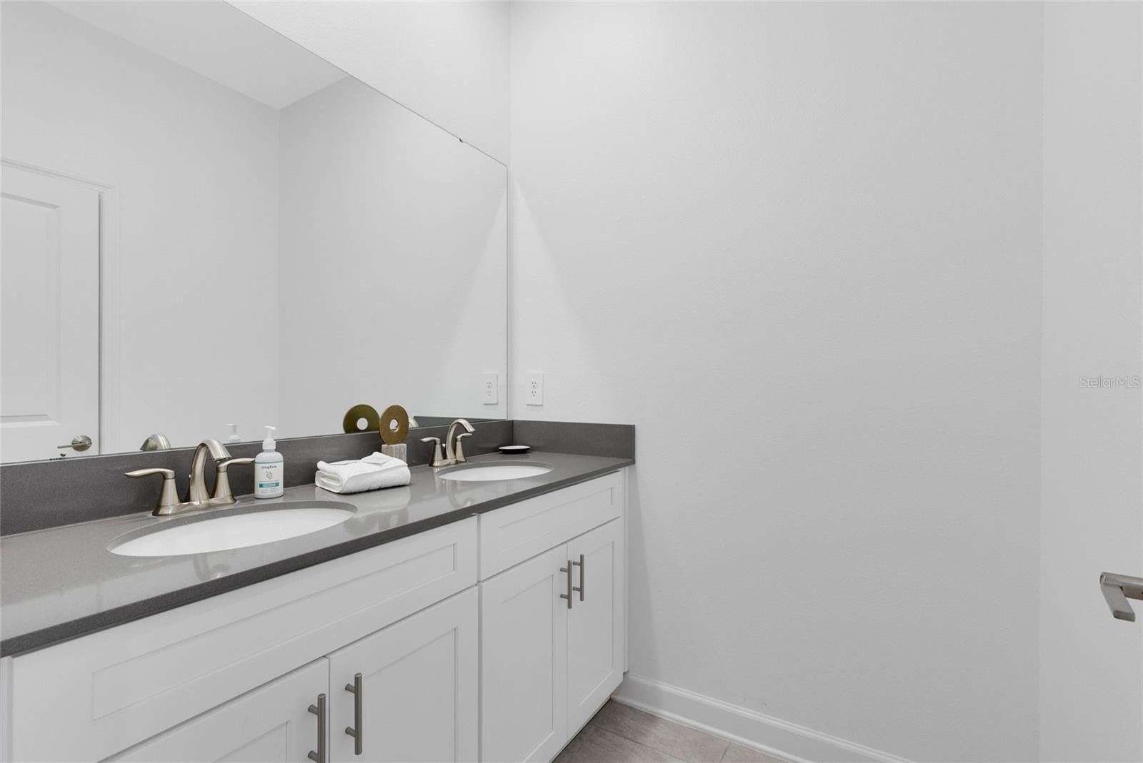 Upstairs, the master suite is a true retreat with crown molding and a spa-inspired bathroom featuring dual sinks and a spacious shower. Two additional bedrooms and baths on the second floor ensure comfortable accommodations for family and guests alike. Thoughtful details such as high ceilings and modern finishes elevate every room.