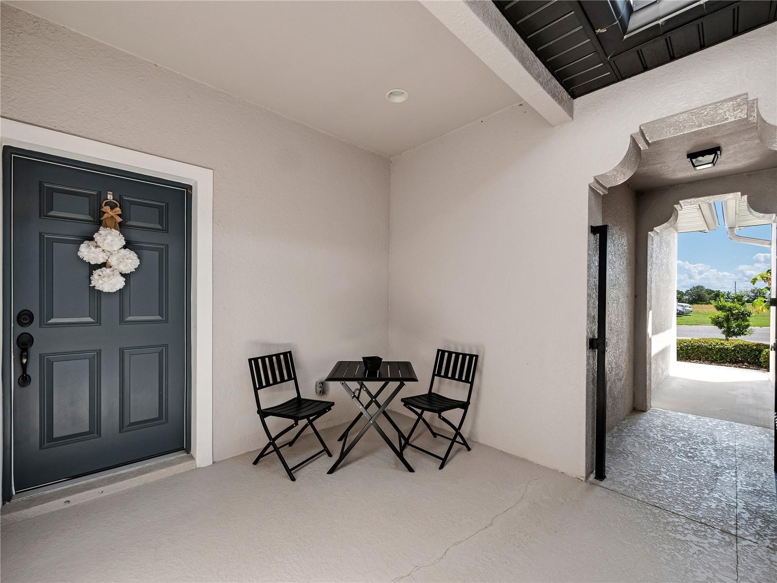 Welcome to this luxurious 2-story townhome offering 3 spacious bedrooms, 2.5 bathrooms, and 1,830 sq ft of living space, perfectly blending comfort and style. Located just minutes from Downtown Clermont in Green Valley Townhomes, this home is ideal for those seeking low-maintenance living without compromising on features or design. Step inside through the charming courtyard entry and discover a thoughtfully designed layout featuring a primary suite on the main floor for added privacy and convenience. Enjoy elegant architectural details throughout, including tray ceilings, crown molding, 6-inch baseboards, and wainscoting with a hidden storage door cleverly tucked under the stairs. The gourmet kitchen boasts granite countertops, a full stainless steel appliance suite, and seamlessly opens to the living area — perfect for entertaining. Additional upgrades include ceiling fans in the living room, primary suite, and upstairs bonus room, adding comfort and energy efficiency. Upstairs, you’ll find two generously sized bedrooms, a full bath, and a versatile bonus room — ideal as a home office, media space, or playroom. Relax year-round in the screened-in lanai with unobstructed golf course views. Washer and dryer are included, making this home truly move-in ready.