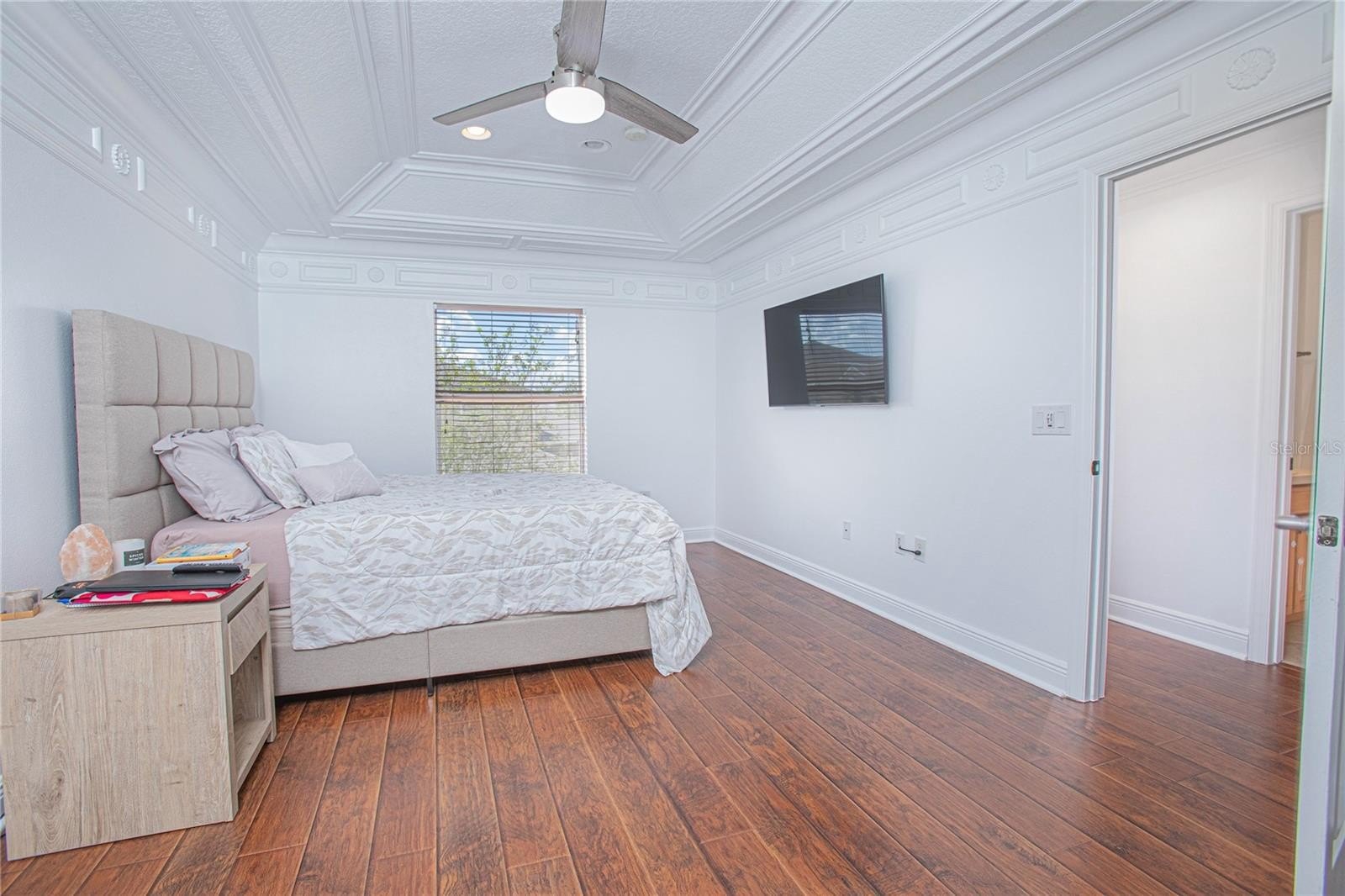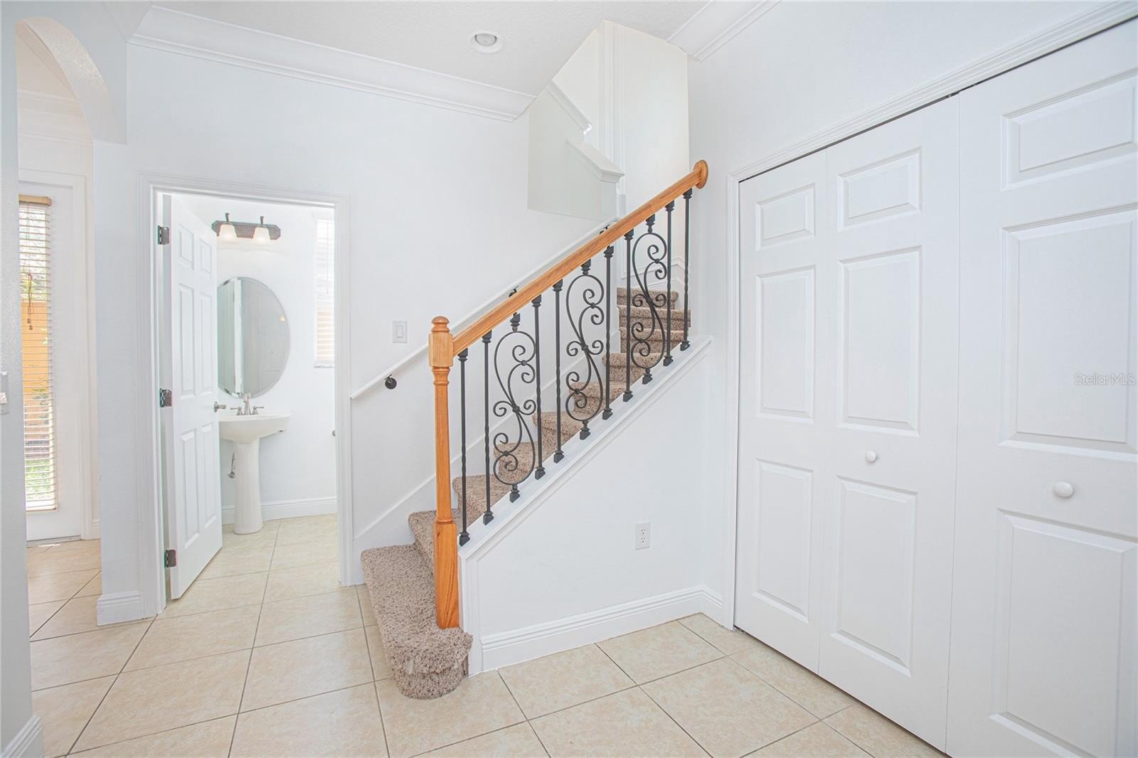 Experience refined living in this elegant two-bedroom townhouse. The property welcomes you with a stone-accented porch and an impressive 8-foot glass entry door. The interior, formerly a model home, features a range of high-quality upgrades, including custom trim work, 42-inch wood cabinets in the kitchen, stainless steel appliances, granite countertops in both the kitchen and bathrooms, custom bedroom closets, ceramic tile flooring on the first level, and attractive wood laminate flooring upstairs. Residents can enjoy a private courtyard that leads directly to a two-car garage. Community amenities comprise two swimming pools, a dog park, a playground, and walking paths adjacent to the scenic Lake Runnymede conservation area. Conveniently located minutes from Lake Nona/Medical City, retail shopping, restaurants, major expressways, and just a 45-minute drive from the nearest beach.