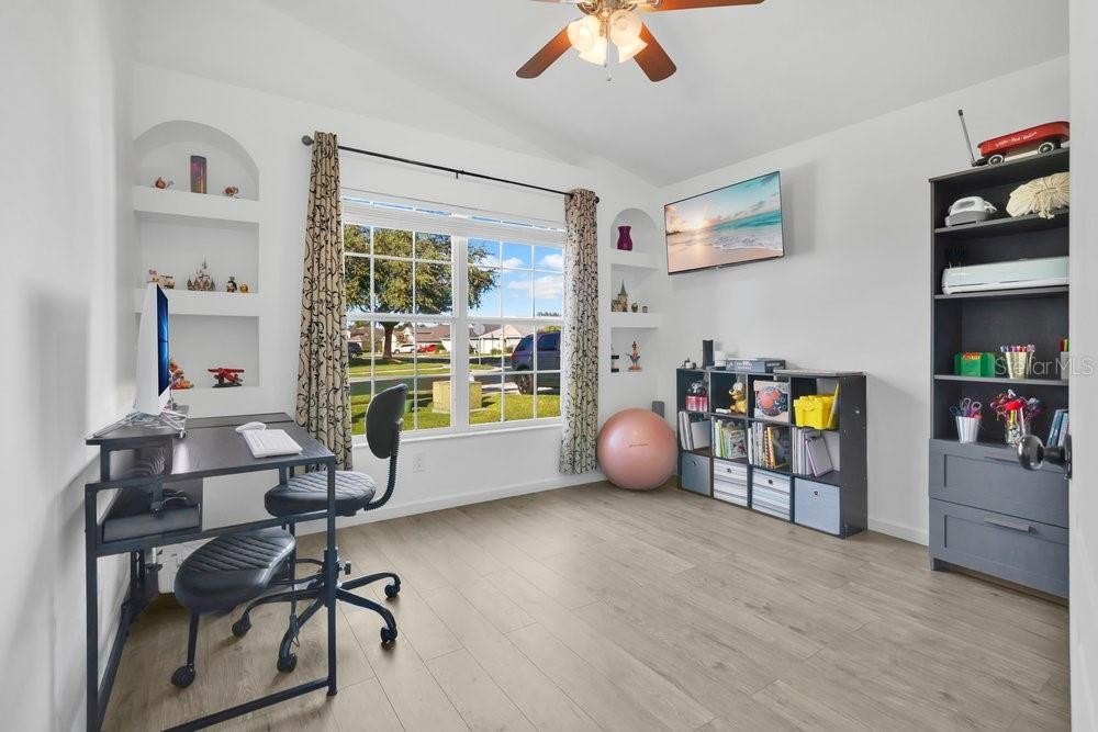 LOCATION! LOCATION! Don't miss this rare opportunity to own a stunning pool home in the highly desirable gated community of Mission Park offering short-term and long-term rentals, Airbnb approval, no CDD and super low HOA. Perfect for investors or families seeking an immaculate primary residence, this 4-bedroom, 2-bathroom home has it all: 2021 roof, 2020 AC & Water Heater, brand new microwave, freshly painted interior and pool deck, fully fenced-in yard, soaring vaulted ceilings, Pergo flooring in all main living areas and ample amounts of natural light. The kitchen has no-spill countertops, a beautiful island, stainless-steel appliances and plenty of cabinet space with added pantry storage. The bedrooms are spacious with lots of closet space. Mission Park offers a community pool, basketball court, and playground and is located only 10 miles from Disney and Southern Hill Farms! Lake Louisa Park and Publix are 3 minutes away! This property is centrally located to restaurants, banks, grocery stores, golf courses and so much more.