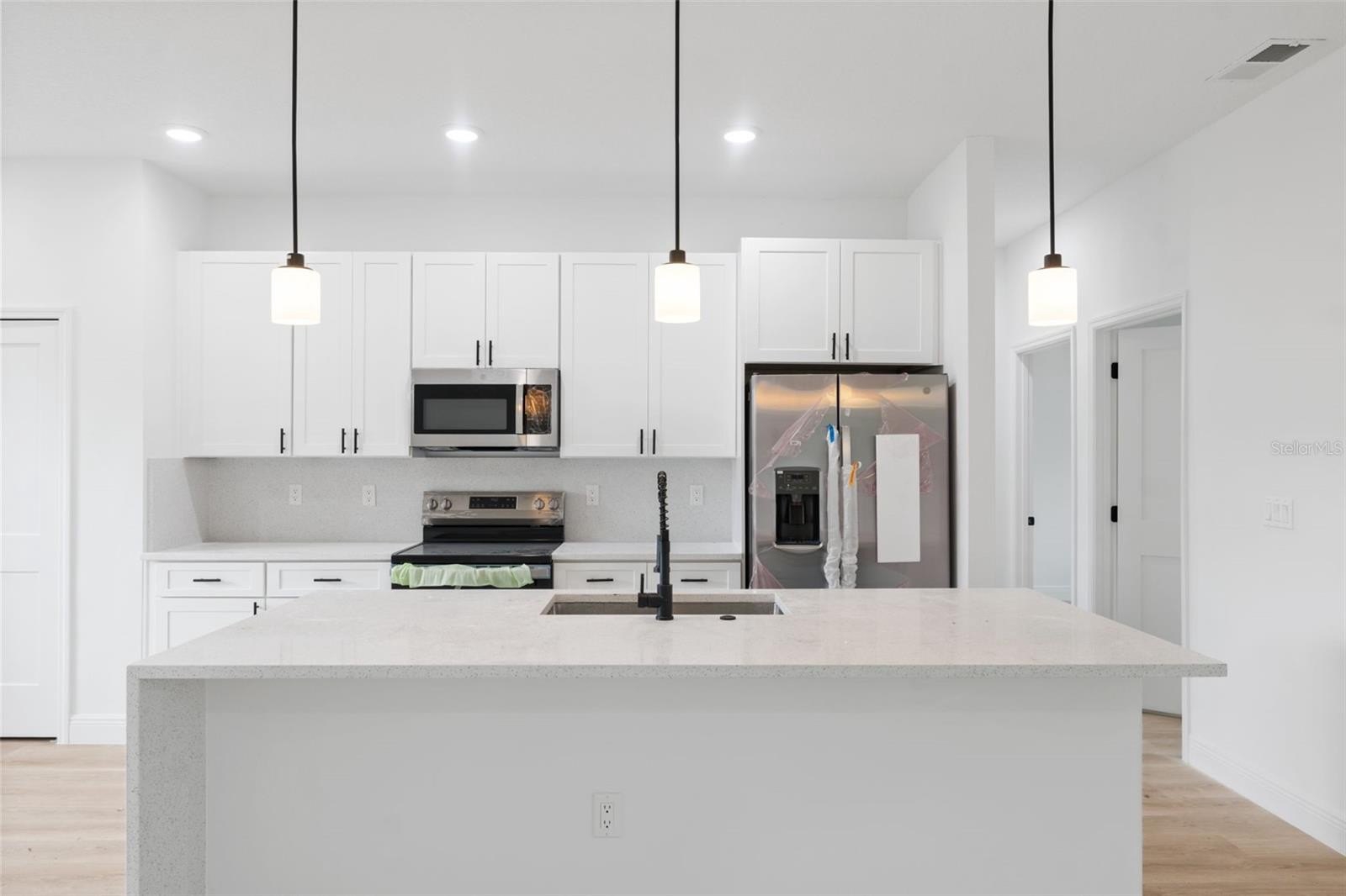 Step inside to a bright and airy living room and dining room, ideal for entertaining or relaxing with loved ones. The heart of the home is the gorgeous kitchen, featuring solid wood cabinets, stone countertops, and modern appliances, all included. Whether you're cooking for guests or enjoying a quiet meal, this space blends function with style.