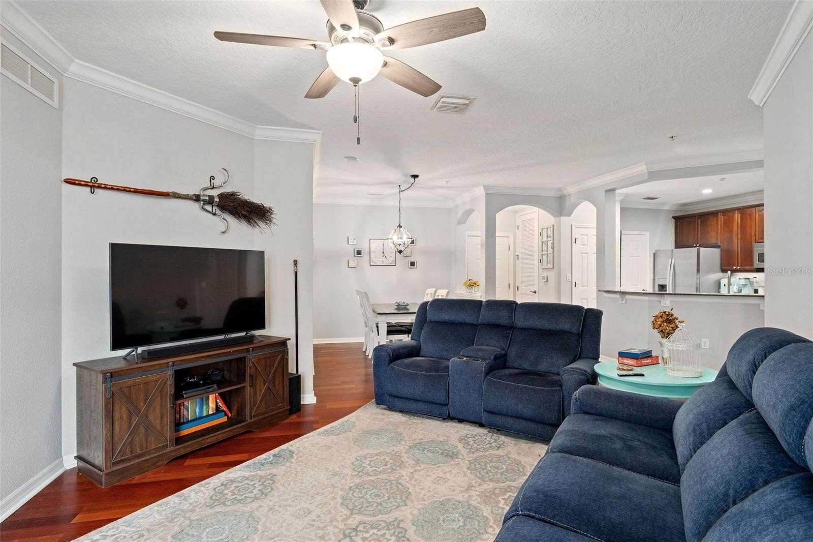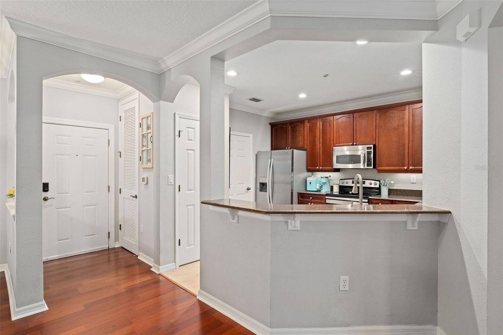 Resort style living year-round in this lovely first-floor 3 bed, 2 bath condo in Lakeside at Lakes of Windermere. Luxury features are the hallmark of this community and this particular abode featuring NEW stunning primary bath remodel (2025) with rare walk-in subway tiled shower, NEW double-sink quartz topped vanity, and backlit fog-free mirror. Stepping into the foyer, enjoy open concept living at its best - offering a split bedroom layout, gleaming wood flooring, crown molding, charming dining room, and spacious living room with glass sliders to the screened porch. The big kitchen will delight your home chef with stainless steel appliances, solid wood cabinets, Silestone countertops, breakfast bar, and HUGE custom pantry big enough for your Costco runs. With room for your king-size bed, the primary suite, along with the NEW luxury bathroom, offers a walk-in closet with custom cabinetry, drawers, and space for all your shoes. Two good sized bedrooms share the updated full hall bathroom just off the kitchen and interior laundry closet (washer/dryer stay too). Monthly HOA fee includes daily valet trash service, water/sewer, and maintaining the building exterior and lovely landscaping. Parking is a breeze with 1 reserved, assigned spot (#55), and 1 open parking spot. Steps from your front door is the state-of-the-art fitness center, located in the clubhouse with on-site management, resort-style pool, and BBQ area with sand volleyball and tennis courts. Stroll the community walking paths around the tranquil pond with mature trees and beautifully maintained elegant landscaping. Zoned for top-rated schools and surrounded by million-dollar neighborhoods, Lakes of Windermere is near it all. Lakeside Village is just across the street and includes Publix, Starbucks, and plenty of restaurants and shopping; plus, you’re only 5 minutes away from Disney and quick access to highways 429, I-4, the Orlando International Airport, and ALL the major Orlando destinations and attractions.
