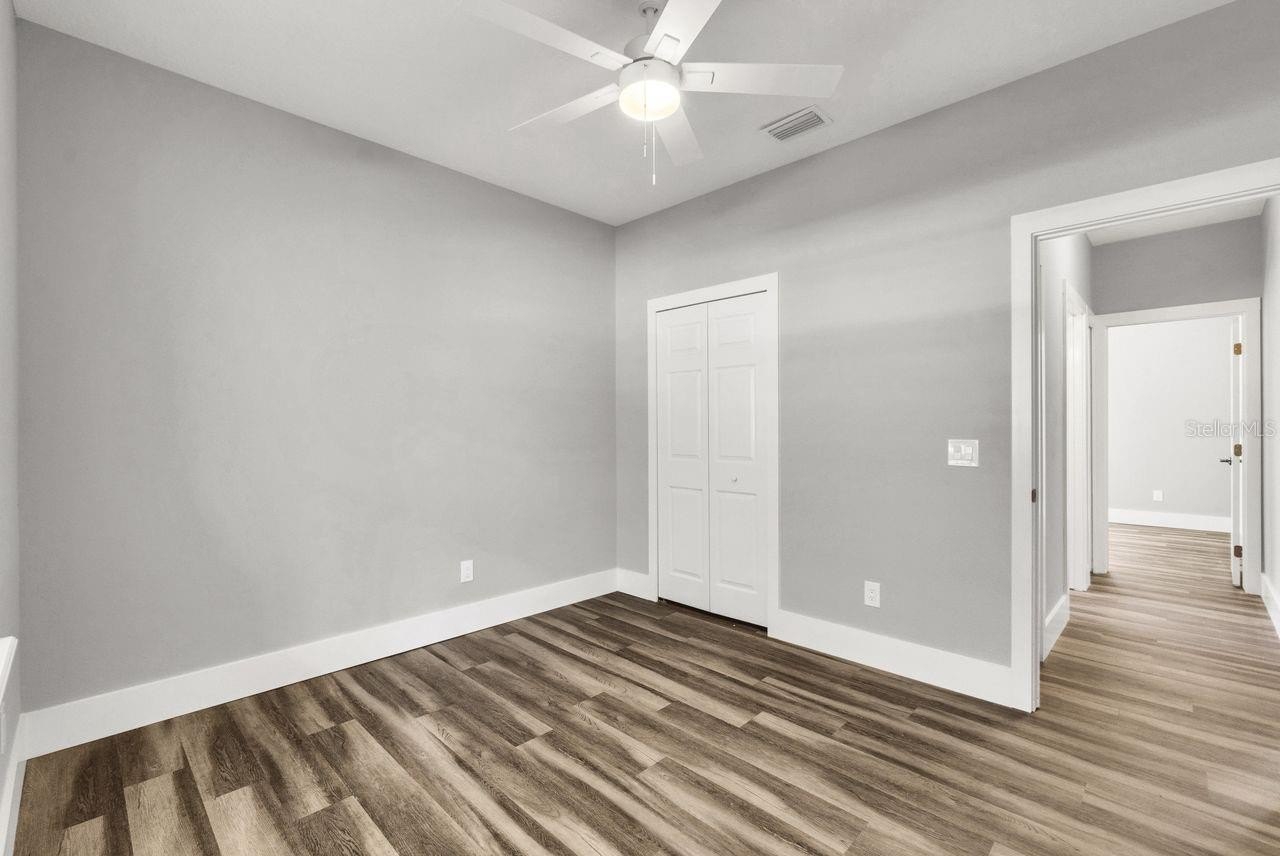Welcome to 570 E 5th Street — a completely updated 3-bedroom, 2-bath home in beautiful, almost brand-new condition! This bright and open split floor plan features a spacious great room with vaulted ceilings, plant shelves, French doors, a new fan, and flexible space for multiple furniture layouts including a dining area. The stunning, fully renovated kitchen boasts 42" white shaker-style soft-close cabinets, quartz countertops, a tile backsplash, large basin stainless steel sink, Whirlpool stainless steel appliances (range, built-in microwave, dishwasher, and double-door refrigerator), upgraded LED lighting, and a convenient pass-through to the great room. Both bathrooms have been completely updated — the primary suite offers dual sinks with an adult-height vanity, soft-close cabinetry, a private water closet, and a beautiful walk-in shower with new glass door and seating, while the hall bath features modern finishes and a full-size tub/shower combination. Throughout the home you’ll find new DuraLux waterproof luxury vinyl floors, 5" baseboards, new doors and frames, lever handles, updated outlets and switches, new fans, and stylish lighting. The peaceful gray walls with crisp white trim and new interior and exterior paint create a warm modern farmhouse feel. The inside laundry room includes a storage closet, utility sink, and GE washer and dryer. Step outside to enjoy the covered back porch with a ceiling fan, overlooking a large, newly fenced backyard with beautiful mature oak trees—perfect for relaxing or entertaining. Additional highlights include a new roof, new hot water heater, spacious 2-car garage with an opener, new coach lights, programmable thermostat, and knockdown ceilings. Located in top-rated Seminole County school district, with no HOA, plenty of room for your boat or RV, and just minutes from Lake Mills Park and million-dollar lakefront homes — this one truly has it all!