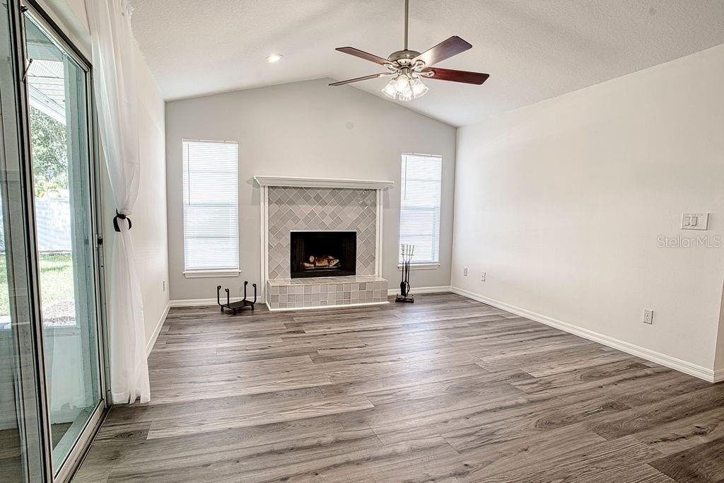 Step through the double-door grand entry into a bright and open floor plan featuring vaulted ceilings, fresh interior paint, and new waterproof and water resistant flooring throughout. The formal living and dining rooms offer elegant entertaining spaces, while the family room features an updated wood-burning fireplace for cozy gatherings.