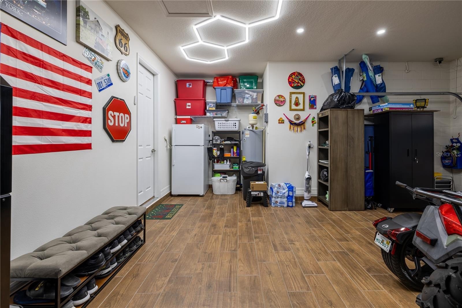 Experience true luxury living in this custom-designed home located in the highly desired Tapestry community in Kissimmee. Featuring 4 spacious bedrooms and 3 full baths, this residence showcases exceptional craftsmanship and high-end upgrades throughout. The gourmet kitchen offers a large granite island, solid wood cabinetry, and a wet bar, ideal for entertaining. Elegant details include 96” solid-core doors, 5¾” baseboards, and porcelain-tiled bathrooms. The garage is equipped with a 24,000 BTU mini-split A/C, while the central A/C includes UV light and an electronic filter for enhanced air quality. Additional features: motorized garage screen, soffit lighting, paved patio, gutters, and full sprinkler system. Energy-efficient with 29 solar panels generating 10,585 kW annually. Resort-style amenities include clubhouse, gym, pool, playground, and walking trails. Prime location just minutes from The Loop Shopping Center, Disney parks, and the Orlando Premium Outlets.