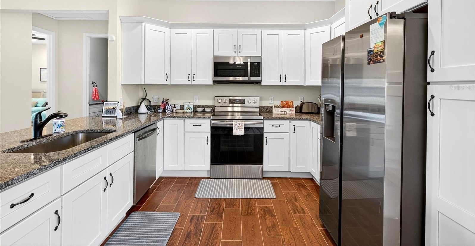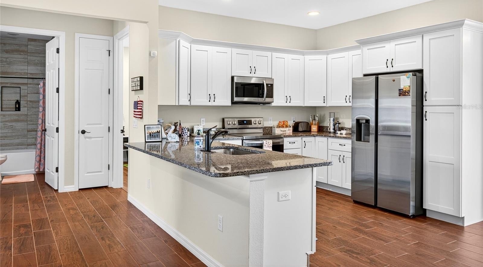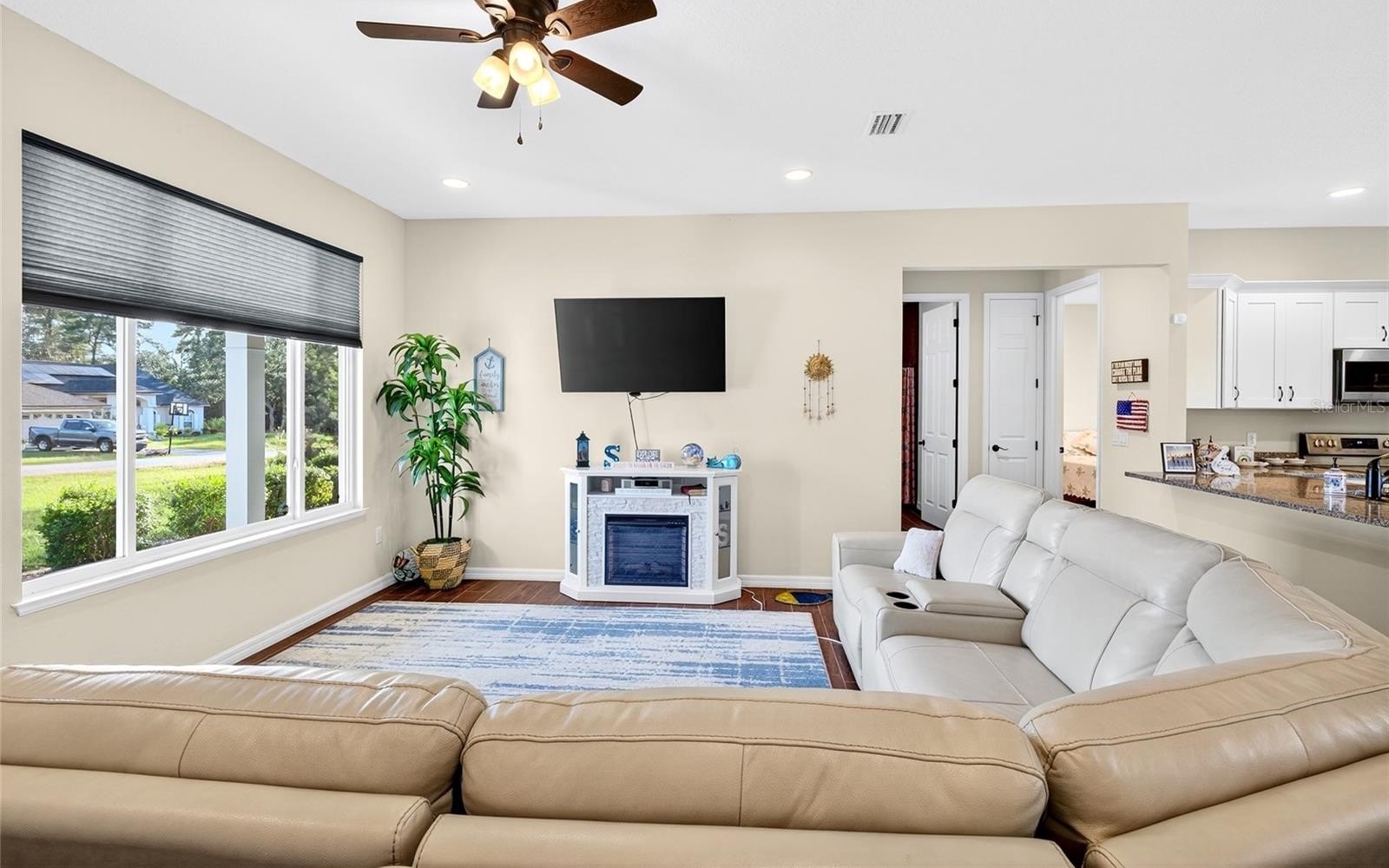 2021 Custom built home sitting on a .52 of an acre lot with no Hoa and no neighbors behind or on one side! Inviting front porch leads to open floor plan with whole home wood faux tile floor and canned lighting! Spacious living room overlooks kitchen and dining room. Kitchen features granite countertops, stainless steel appliances, and peninsula island with room for several barstools. Dining area leads to enclosed and under air Florida Room with french doors leading to backyard with oversized patio. In this split bedroom plan the primary offers private oasis with tray ceilings, french doors to backyard and primary bath has pocket door entry leading to pebble floor and tile surround, walk in glass frame shower with glass door. Double granite vanities and a water closet. Additionally, there is a walk in closet. Across the home is the second bath granite top vanity and tile surround shower/tub. Cn be sold fully furnished at an additional cost to make the perfect furnished rental or AirBnB!