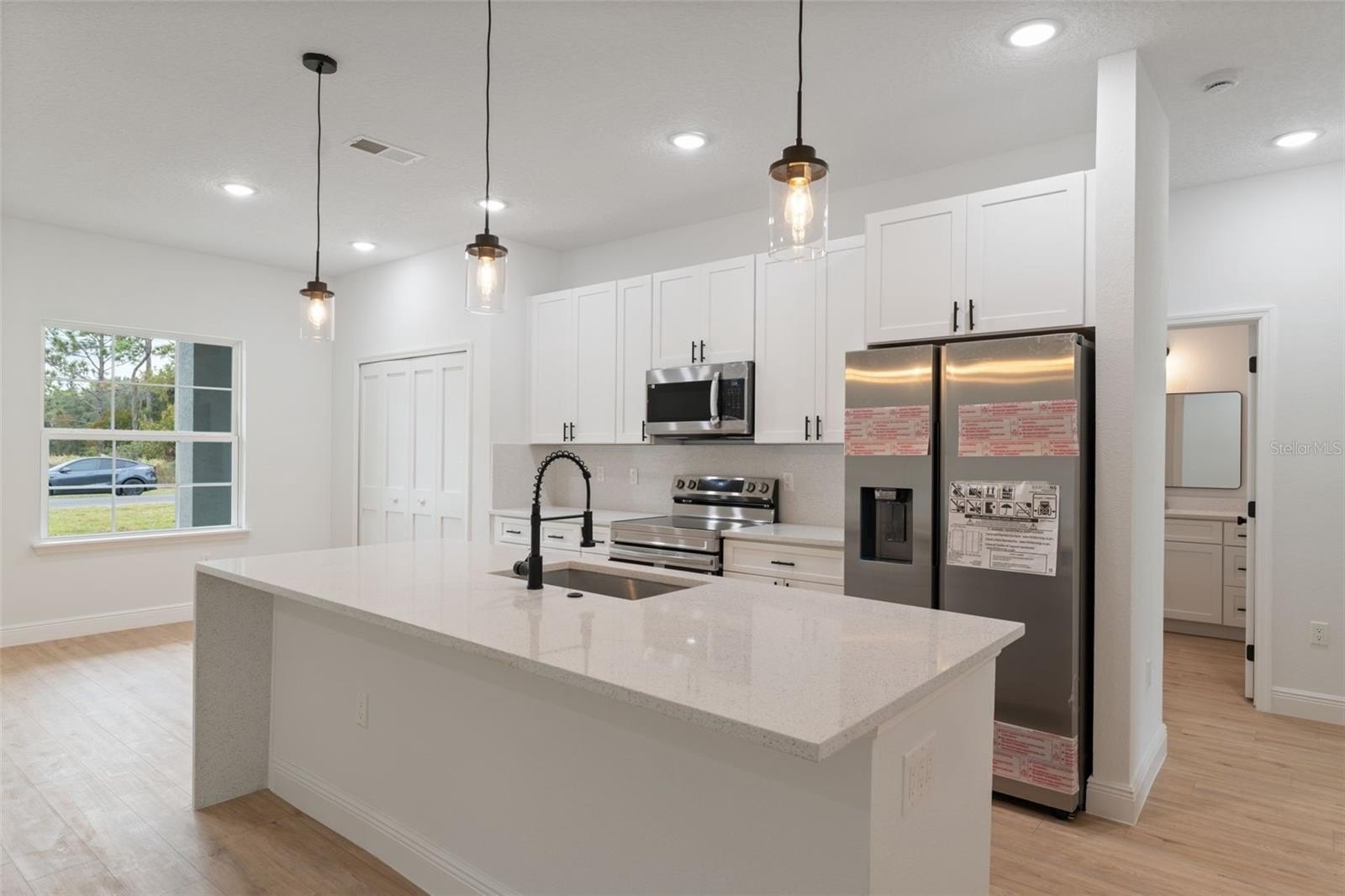 Discover this stunning new construction home in the heart of Ocala, combining modern design with everyday comfort. Featuring 4 spacious bedrooms and 2 full bathrooms, this residence offers an ideal layout for families or those who love to entertain. The primary suite includes a luxurious walk-in closet, while the additional bedrooms feature built-in closets for ample storage.