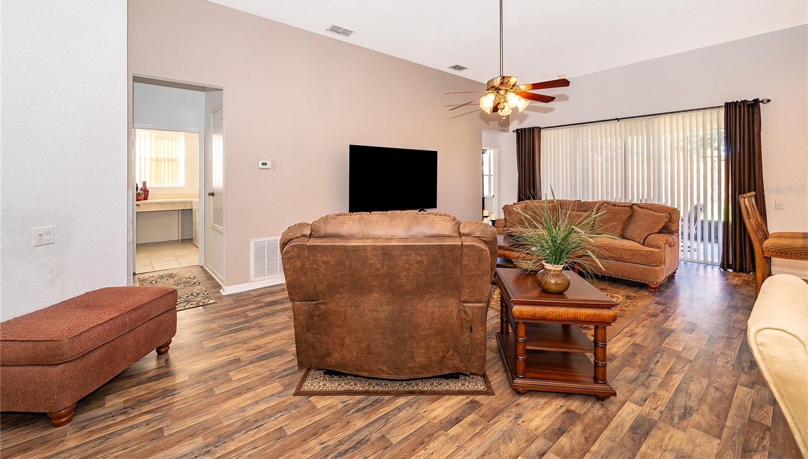 Welcome to this beautifully cared-for 3-bedroom, 2-bathroom home tucked inside the desirable and quiet community of Oak Hammock Preserve in Kissimmee. Offering the perfect combination of comfort, thoughtful updates, and relaxed Florida living, this single-story residence features 1,680 square feet, an inviting split-bedroom layout, and a welcoming atmosphere. From the moment you step inside, you’re greeted by a bright, open interior with a combination of tile, wood, laminate, and carpet flooring, high ceilings with no popcorn, and a light, airy feel. The spacious living room is ideal for hosting or unwinding and includes sliding doors leading to the screened lanai, creating a smooth transition between indoor and outdoor living. The open-concept layout seamlessly connects the living room, kitchen, and both the breakfast nook and formal dining area—perfect for entertaining. The expansive kitchen with granite countertops is designed with both style and practicality in mind, featuring 42-inch cabinetry, new appliances (with an oven that’s never been used), generous counterspace, and a breakfast nook. The private primary suite is generously sized and features a large walk-in closet, dual vanities, a soaking tub, and a separate walk-in shower. The two additional bedrooms are located on the opposite side of the home, providing privacy for guests, family, or work-from-home needs. Both guest bedrooms are near a full bathroom—ideal for extended stays or multi-generational living. The home also features a large indoor laundry room with a window for natural light and a convenient folding table, making chores easier and more organized. Step outside to enjoy the paver driveway and professional landscaping accented by new sod and an irrigation system. The backyard offers space for pets, gardening, or weekend gatherings, while the covered screened-in lanai provides the perfect setting to relax and enjoy the Florida breeze. This home has been thoughtfully maintained with numerous updates, including fresh exterior paint, rain gutters, and custom window treatments. A brand-new roof is scheduled for installation in January 2026, ensuring peace of mind for years to come. Residents of Oak Hammock Preserve enjoy access to a community pool, clubhouse, playground, picnic area, and scenic walking trail—all with low HOA fees and no CDD. Conveniently located near shopping, restaurants, hospitals, golf courses, schools, the SunRail station, and major highways, this location offers both tranquility and accessibility. If you’re looking for a beautifully updated home in a welcoming community, then this home checks all the boxes. Schedule your private showing today and experience the charm and convenience of living in Oak Hammock Preserve.