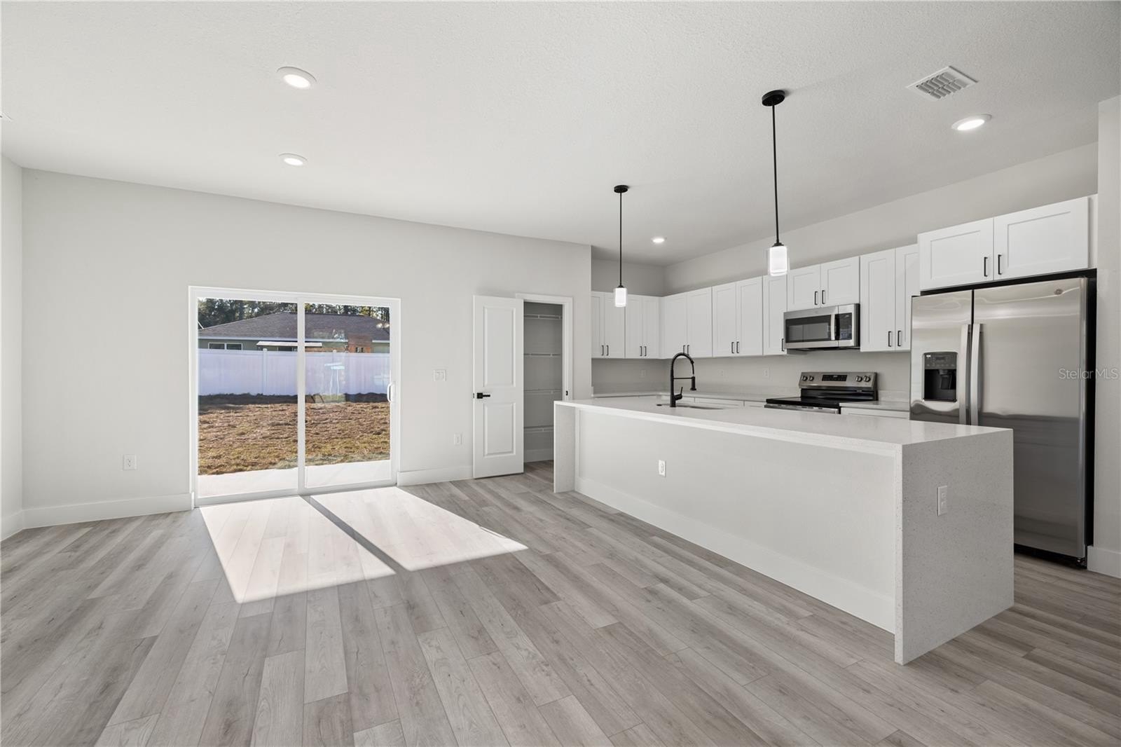 Brand-new house in Citrus Springs! Welcome to this stunning 3-bedroom, 2-bathroom home offering 1,562 sq. ft. of living space and a total of 2,099 sq. ft. under roof. Step inside to an open-concept layout featuring a modern kitchen with a QUARTZ WATERFALL ISLAND, sleek DARK FIXTURES, and a spacious dining and living area perfect for entertaining. The split-bedroom design offers privacy, with the owner’s suite showcasing a large walk-in closet and a luxurious master bathroom with a DOUBLE SHOWER. Enjoy outdoor living on the COVERED LANAI and the convenience of a PAVER DRIVEWAY leading to the 2-car garage. Located in a peaceful neighborhood near shops, restaurants, and outdoor recreation, this home blends contemporary style with everyday comfort. Additional features include a SMART KEY system and a 2-10 HOME WARRANTY. Don't miss this opportunity—schedule your showing today!