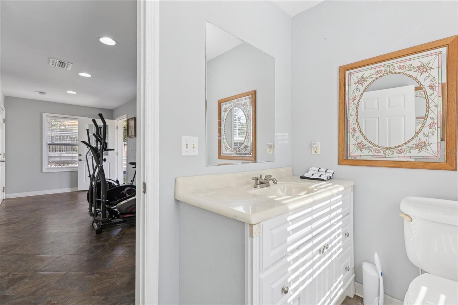 The garage includes an attached space perfect for a home gym, complete with a half bath. Above the garage is a fully equipped mother-in-law suite with its own full bath, ideal for guests or extended family who enjoy their own private retreat.
