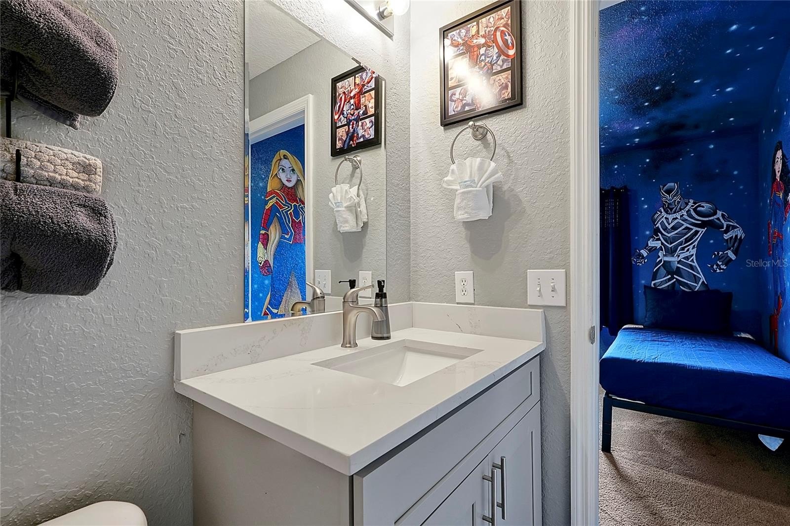 A Truly Turnkey Investment in Prime Condition!! Discover this fully furnished and updated 3-bed, 3-bath POOL townhome with PARK VIEW in the highly sought-after Windsor Hills Resort, just minutes from Disney World! One of the Most Upgraded Units on the Market! Completely renovated in 2021, this stunning property boasts over $50,000 in upgrades, including: updated cabinets, stainless steel appliances, and quartz countertops with a waterfall edge, new flooring throughout the entire downstairs and stairs, plus newer carpet upstairs, All-new furniture and hand-painted theming in two rooms, updated bathroom vanities with quartz counters, including a dual vanity in the master suite, new AC, water heater, pool resurfacing, and pool heater New washer, dryer, thermostat, smart TVs, and much more! Welcome to The MARVELous Getaway, where every detail has been designed for comfort, convenience, and a touch of magic! This Marvel and Disney-inspired townhome offers an immersive experience where superheroes and beloved characters come to life. Located in the highly desirable gated community of Windsor Hills, only minutes from Central Florida's World-renowned Walt Disney World theme parks and Universal Studios. Windsor Hills has everything you’re looking for in a resort with a superb location and world-class amenities including a lagoon-style community pool, water park, movie theater, bar, onsite convenience store, water slides, fitness center, game room, and much more. Don't miss your chance to own a piece of the magic—schedule your showing today!