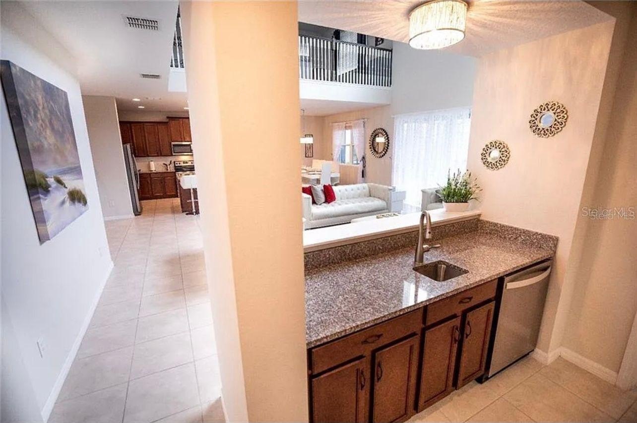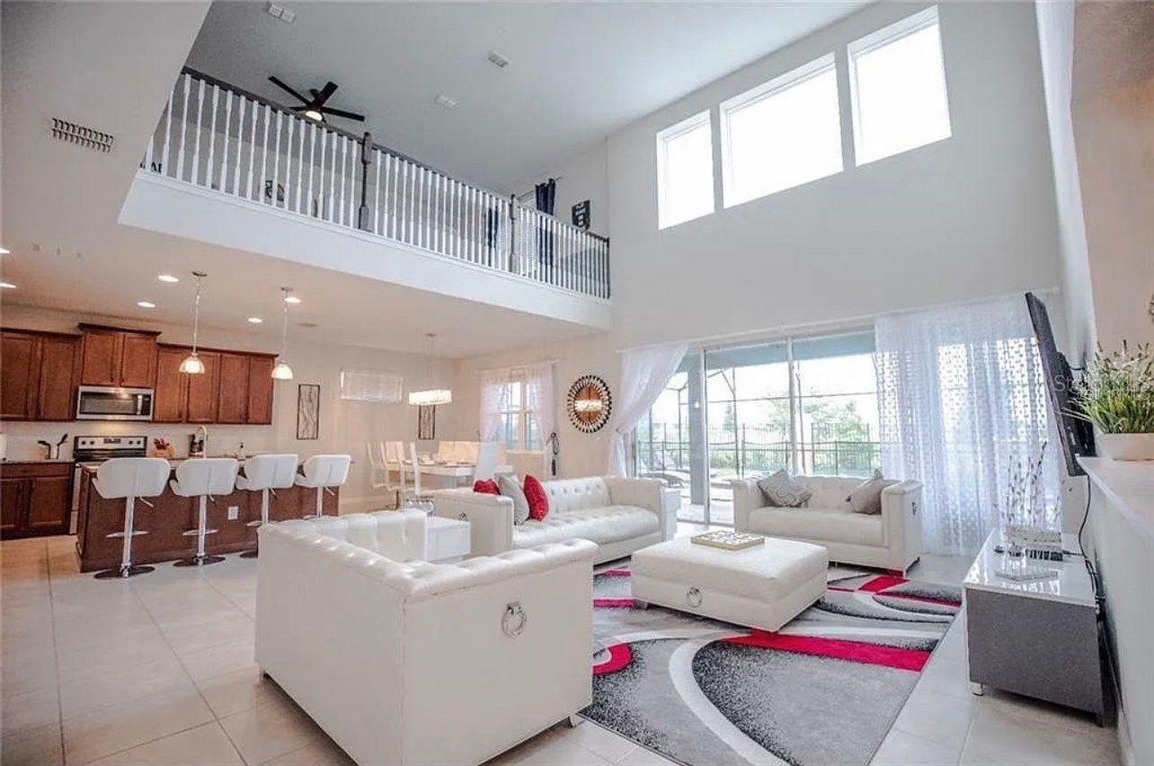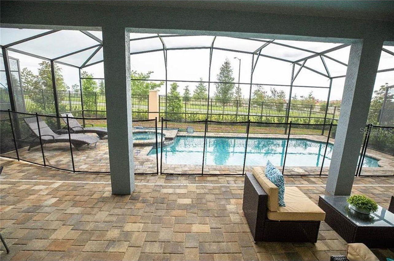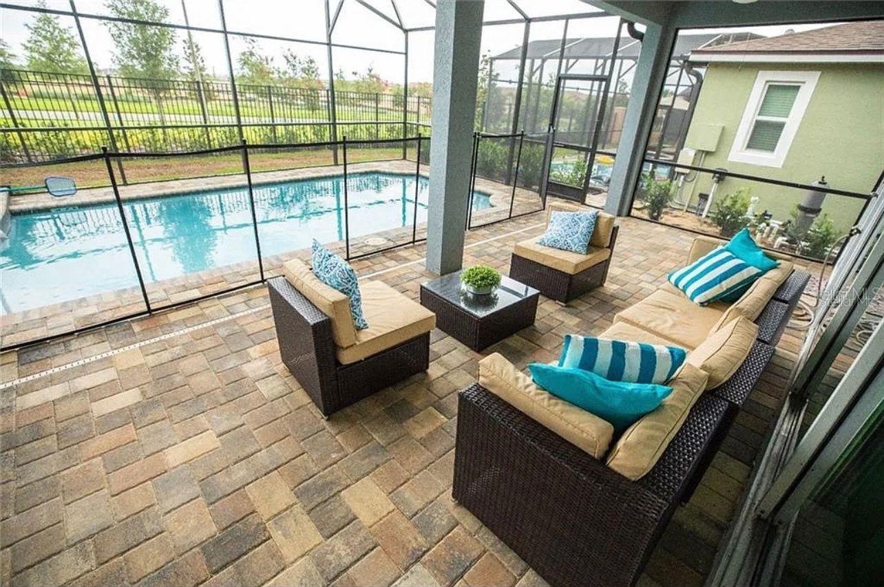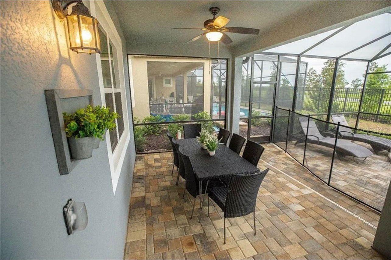 FULLY FURNISHED!!! PRIVATE POOL!!! Step into this beautiful dream home in the sought-after Solara Resort in Kissimmee! Enjoy the luxury of your own screened-in private pool and spa, all nestled within a secure, 24-hour gated community. As soon as you walk in, you’ll notice the spacious living and dining areas on each side of the foyer, highlighted by soaring ceilings and peaceful views of the pool area.