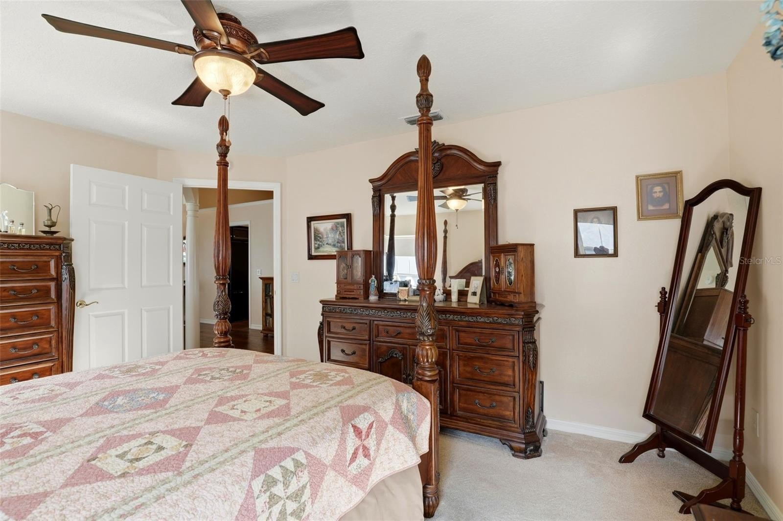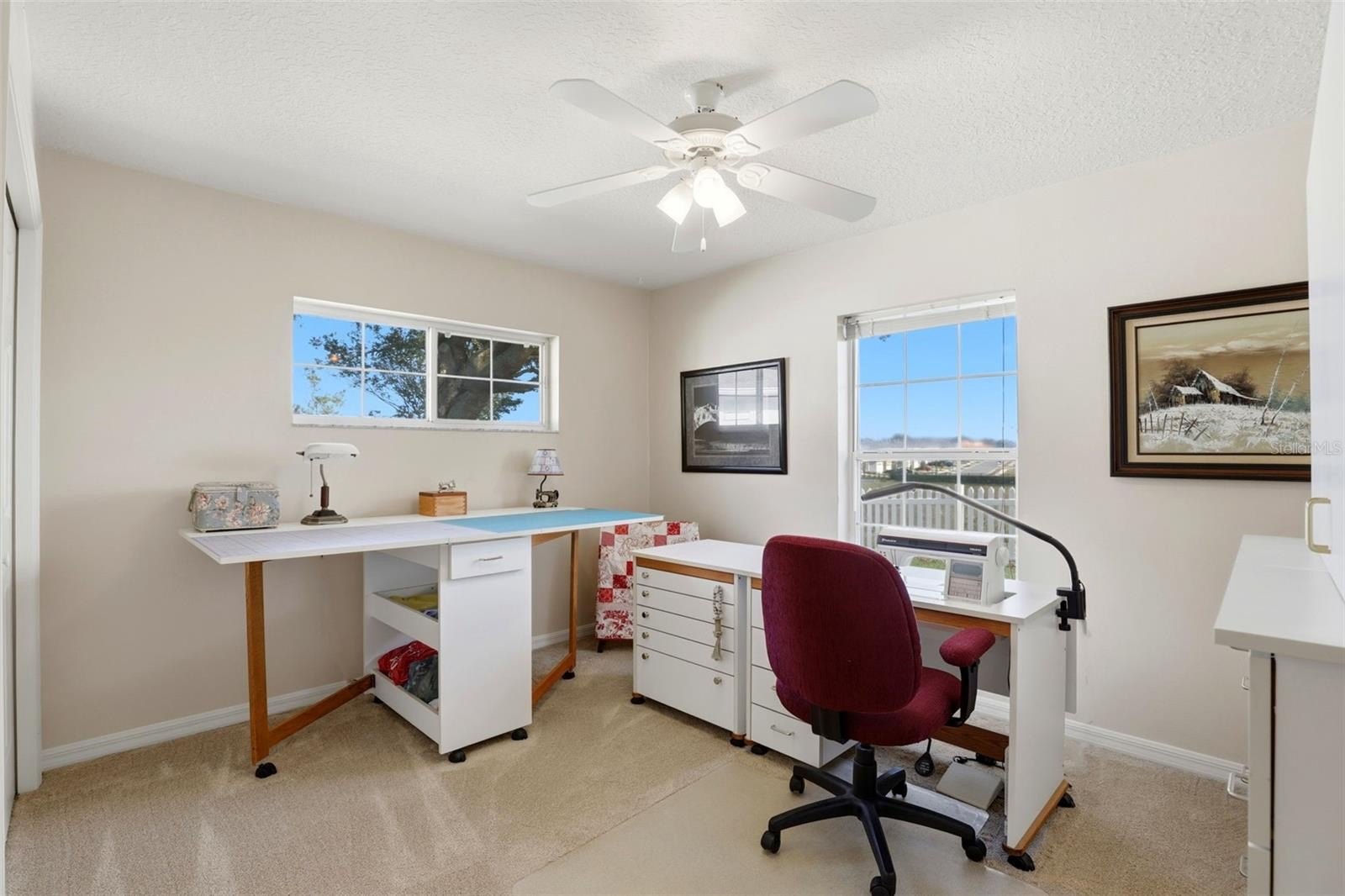 The generous primary suite offers a large walk-in closet, an additional closet, and an updated en-suite bath. The converted Florida room—formerly the back patio—provides year-round enjoyment with luxury vinyl flooring, glider windows, and views of serene Lake Elsie and fenced backyard.