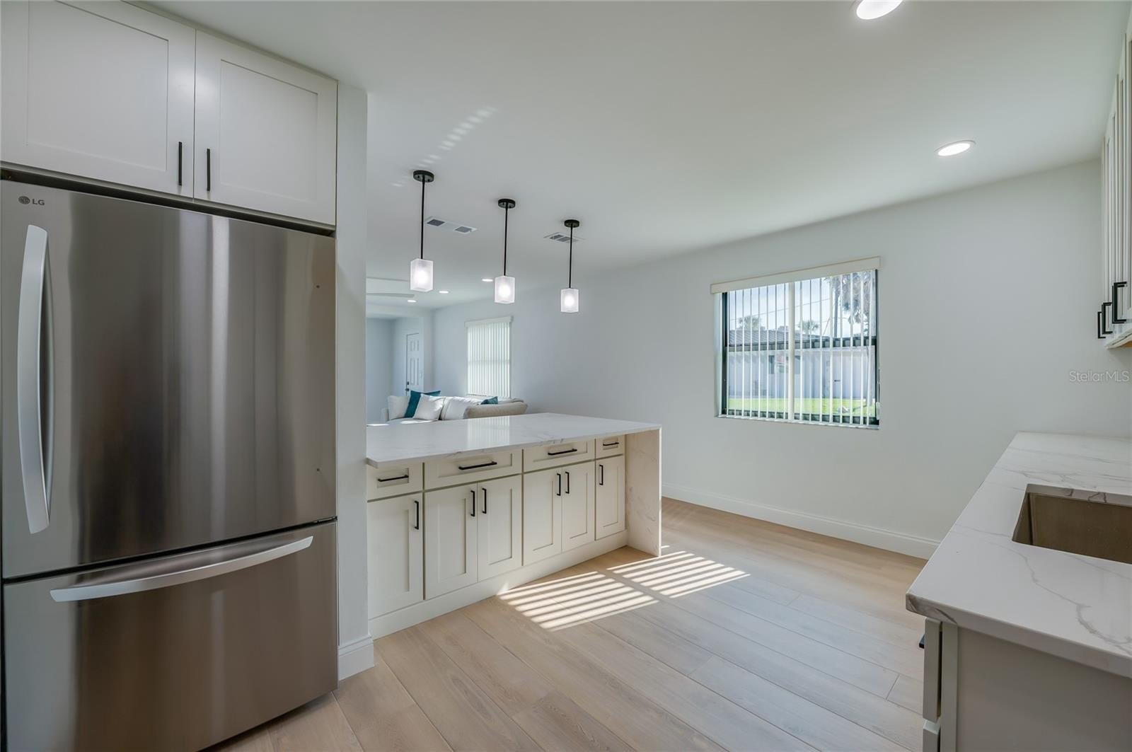 Extensively remodeled Beach side bungalow just steps to the Atlantic Ocean and with unobstructed direct ocean views from the family room and the primary bath room. These views are normally only found in multi million dollar homes or Condo's but here is a chance to have those same views and unobstructed ocean access for way less and with no HOA fees. This turn key home has a brand new Kitchen and appliances, Luxury Vinyl plank flooring, freshly painted inside and out, ceiling fans, LED lighting, new tankless water heater, new TV's in every bedroom and the family room and a whole home Over the air Antenna for watching multiple channels of TV all for free. All the new furniture is also included. A new sectional and rug in the family room, new bar stools for the Kitchen Island, and new adjustable beds for the bedrooms. Also included is a new Hurricane rated garage door, remote door opener, and an Outdoor Shower for washing off those beach toys when coning off the beach. If all this wasn't enough the Roof and A/C is less than 3 years old and ALL NEW WINDOWS were just installed this summer. For those that would like to use this as an investment rental, this area is in the short term rental zone which allows for daily rentals of this home. Come take a look at this beautifully remodeled home that truly is move in ready!