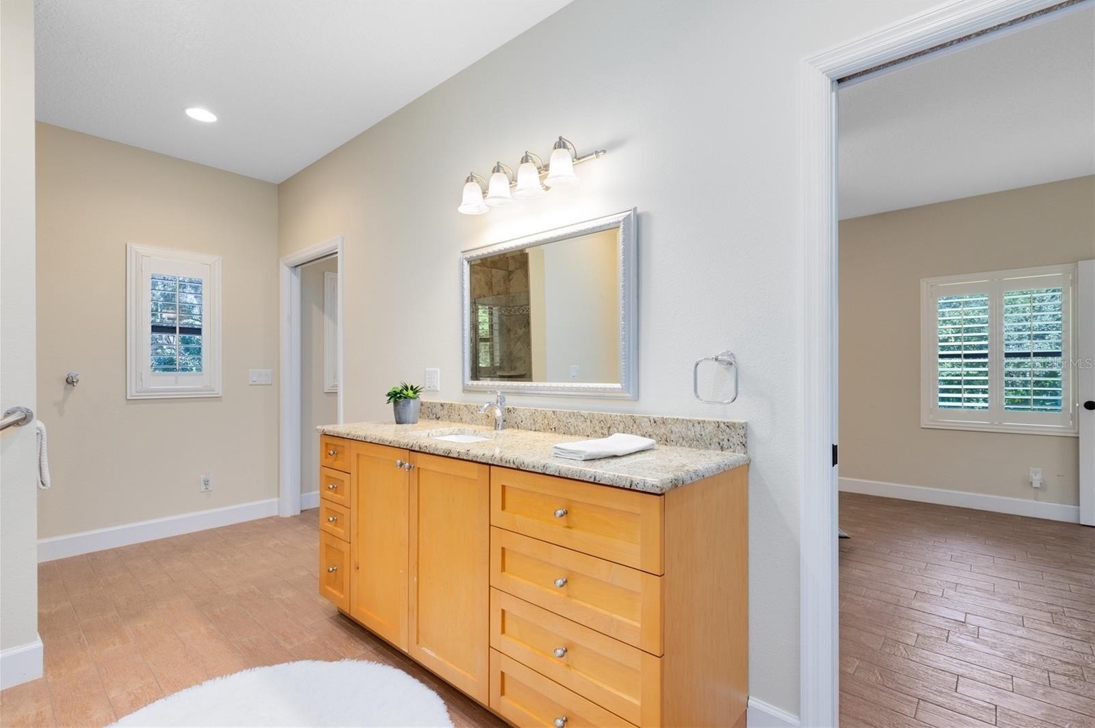 *The guest house is a standalone property, featuring 2 bedrooms and an open kitchen, dining, and living area that feel bright and welcoming. The generously sized primary suite includes a roll-in shower, offering both accessibility and comfort.