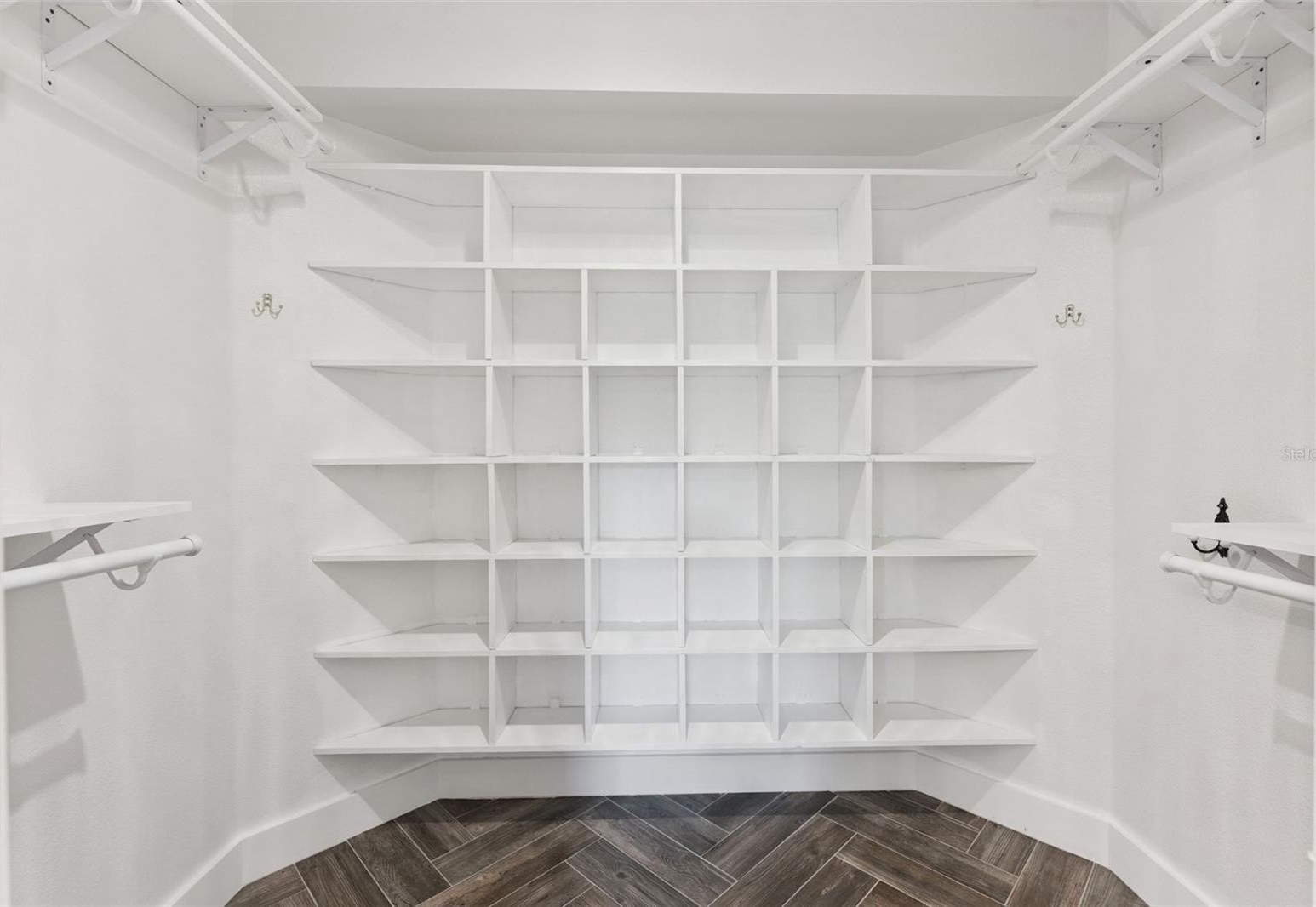 The primary suite boasts a generous closet with built-in shelves for ample storage, along with an ensuite bathroom complete with a separate shower, double vanities, a relaxing garden tub, and an updated toilet. The other two bedrooms are thoughtfully positioned on the opposite side of the home for added privacy, sharing a well-appointed bathroom.