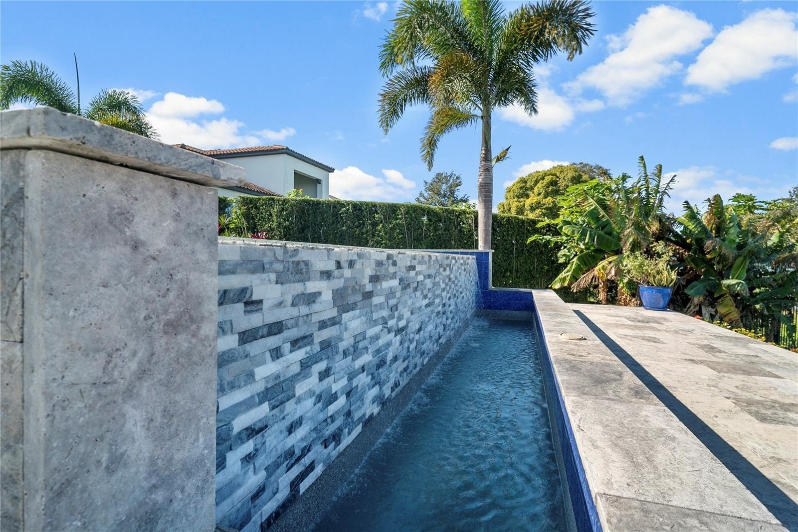 The saltwater infinity-edge pool is a showpiece, stretching an impressive 50 feet and designed to visually merge with the lake beyond. Heated by gas, the pool is ideal for both leisurely afternoons and evening swims, offering breathtaking views and a true resort-style experience in your own backyard.