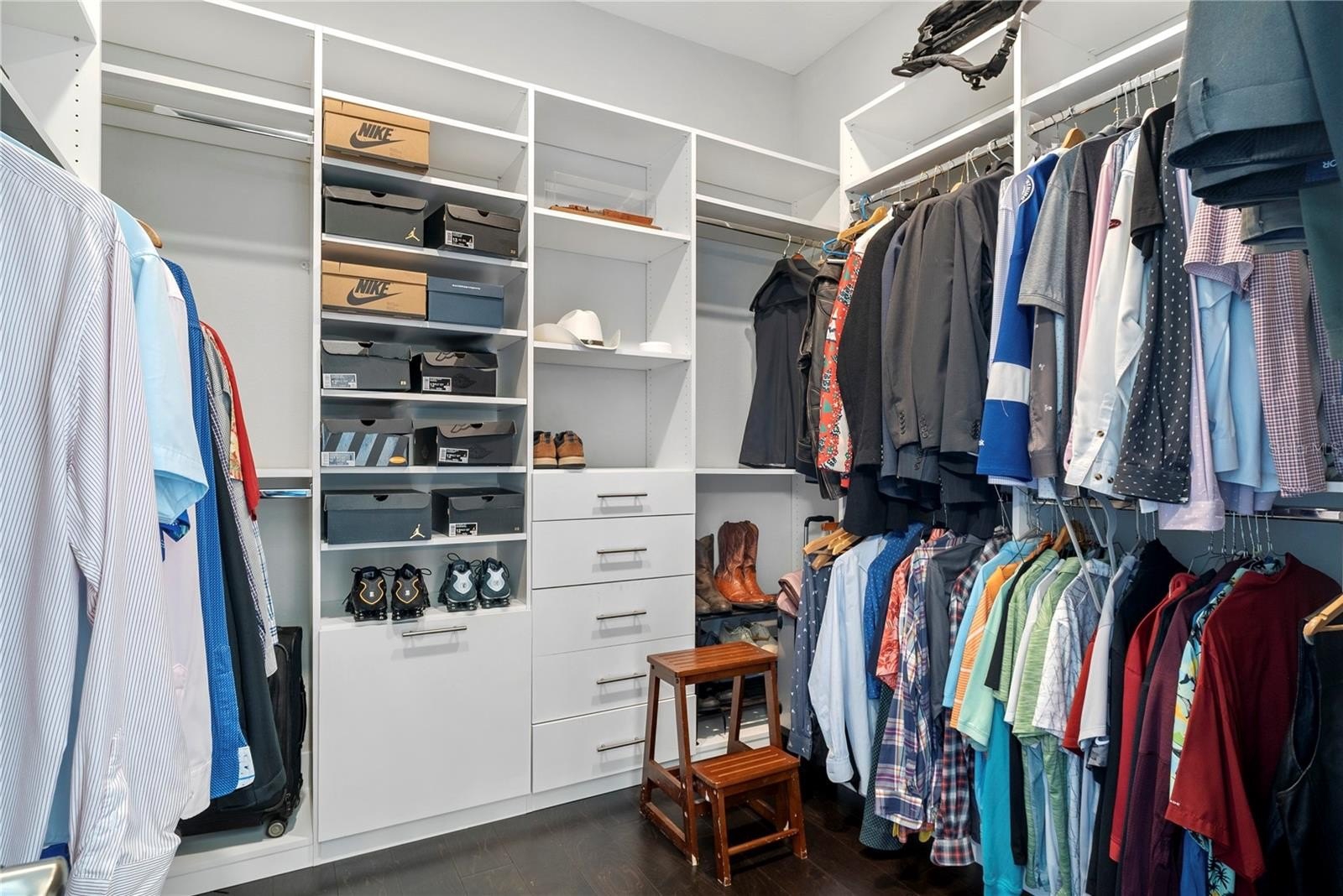 Beyond the lanai, the backyard opens to a large, fenced lawn that gently leads to your private dock on Johns Lake. The dock is fully equipped with a boat lift, as well as water and electricity, making lake access effortless and spontaneous. Whether you enjoy boating, fishing, or sunset cruises, this setting delivers the ultimate waterfront lifestyle.