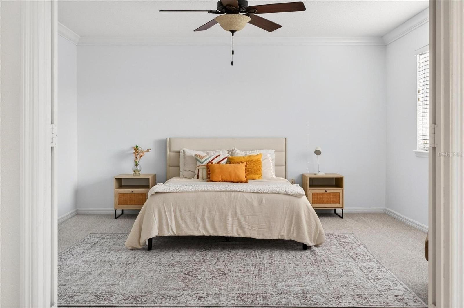 Upstairs features new carpet throughout, three additional bedrooms, two full baths, and a massive loft ideal for a game room, movie room, or secondary entertaining space—perfect for indoor gatherings regardless of weather. The backyard offers no rear neighbors, providing added privacy, and is pool-ready with partial vinyl fencing. NEW ROOF (2025) & NEW AC (2025). . Move-in ready!