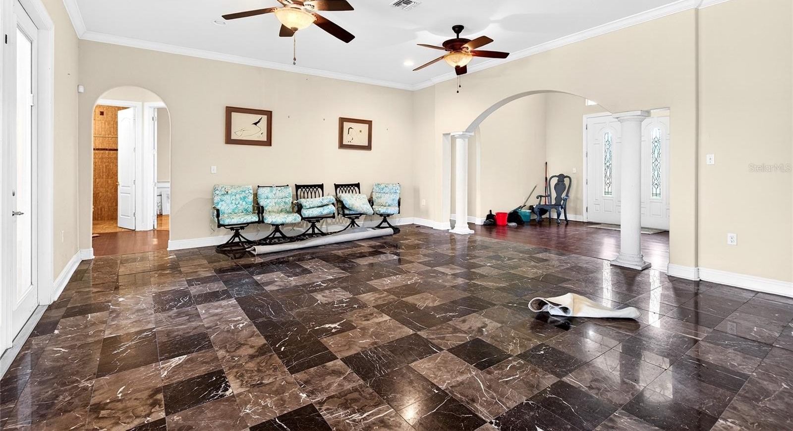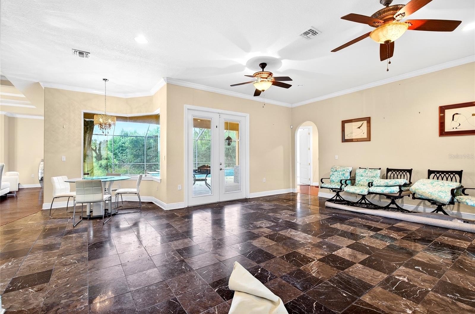 INCREDIBLE, PRIVATE GATED HILLTOP OASIS ON 2+ ACRES FENCED WITH SCREENED IN SALTWATER PEBBLE TECH POOL WITH 4 FOUNTAINS OVERLOOKING HORSE PASTURE. POOL HAS CUSTOM PAVERS SURROUNDING. SOLAR POWER FOR POOL....THAT MEANS NO POWER BILL FOR POOL!! THE DETAILS OF THIS HOME ARE ENDLESS...ENTER THROUGH DOUBLE 10 FT DOORS TO DOUBLE COLUMN FOYER LEADING TO HUGE MARBLE FLOOR LIVING ROOM OVERLOOKING DOUBLE DOORS LEADING TO THE POOL WITH 2 COVERED LANAIS 1 WITH SUMMER KITCHEN. TO LEFT UPON ENTERING IS SEVERAL ARCHWAYS TO 12+ FORMAL DINING FEATURING CROWN MOLDED TREY STEP UP CEILINGS, KITCHEN IS AMAZING WITH CABINETRY FOR DAYS WITH ALL LUXURY OPTIONS WITH HUGE WALK IN PANTRY. ISLAND/BAR WITH PENDANT LIGHTING, 2ND ISLAND HAS PREP SINK, WOOD CRAFTED HOOD GRANITE COUNTERTOPS OPENS TO SECOND LIVING AREA/FAMILY ROOM SECOND FIRE PLACE WITH COFFERED CEILINGS. PICTURESQUE GLASS WINDOW IN BREAKFAST ROOM ALLOWS BEAUTIFUL MORNING COFFEE, OWNERS SUITE IS SERIOUSLY GIGANTIC TREY CEILING AND ENGINEERED HARDWOOD FLOORS WITH GAS FIREPLACE OWNERS BATH IS SPA LIKE WITH HIS AND HERS SEPARATE COMMODES KEEPING ALL HAPPY HAPPY HAPPY, CENTER ROMAN JACUZZI TUB IS AN UNDER STATEMENT MADE FOR A KING/QUEEN WITH CRYSTAL CHANDELIER WALK AROUND GLASS/TILE SHOWER WITH 6 SHOWER HEADS INCLUDING THE ALL TIME FAVORITE RAINFALL OVERHEAD,, DOUBLE VANITIES MARBLE TOPS AND UPGRADED CABINETS! WALK IN CLOSETS TO DIE FOR!! CROWN MOLDING IS ENDLESS.... OFFICE OFFERS 2 DOUBLE DOORS. ALL OTHER BEDROOMS ON OTHER SIDE OF HOME WITH EQUALLY IMPRESSIVE BATH. OVERSIZED GARAGE HAS PLENTY OF ROOM FOR MULTIPLE CARS AND TONS OF STORAGE, OUTDOOR SPACE HAS LUSH LANDSCAPING AND PATHS. BRAND NEW WATER PURIFIER/ SOFTENER 2020 2010 30 YEAR ARCHITECTURAL ROOF, HVAC AND HOT WATER HEATER 2010. CUSTOM LIGHTING, BLINDS AND DRAPERY, 10 FOOT DOORS ENTIRE HOME, WHOLE HOME HAS WOOD,MARBLE AND ONLY ONE ROOM HAS CARPET! NEAR GAINESVILLE IN NORTH OCALA NEAR ALL HORSE FARMS AND EVENTS, NEAR ORANGE LAKE AND 30 MINUTES TO THE WORLD EQUESTRIAN CENTER! HOME NEEDS TLC AND SWEAT EQUITY. FULLY RENOVATED WORTH CLOSE TO 1 MILL!