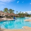 Recent upgrades include new HVAC systems in 2021, new water heaters in 2023, pool resurfacing in 2023, and new luxury vinyl flooring installed in 2025. The floor plan features two primary suites, both conveniently located on the first floor. Three additional bedrooms complete the sleeping accommodations - one additional on the main level and two upstairs.