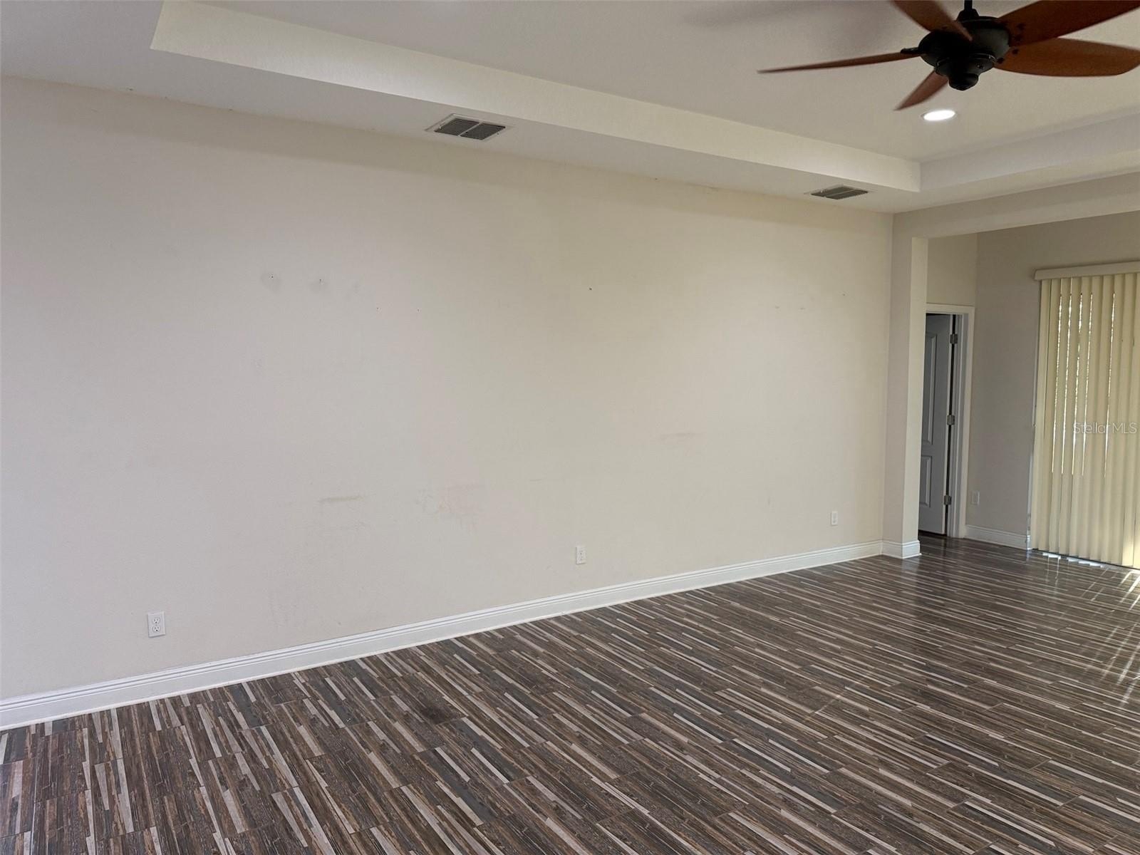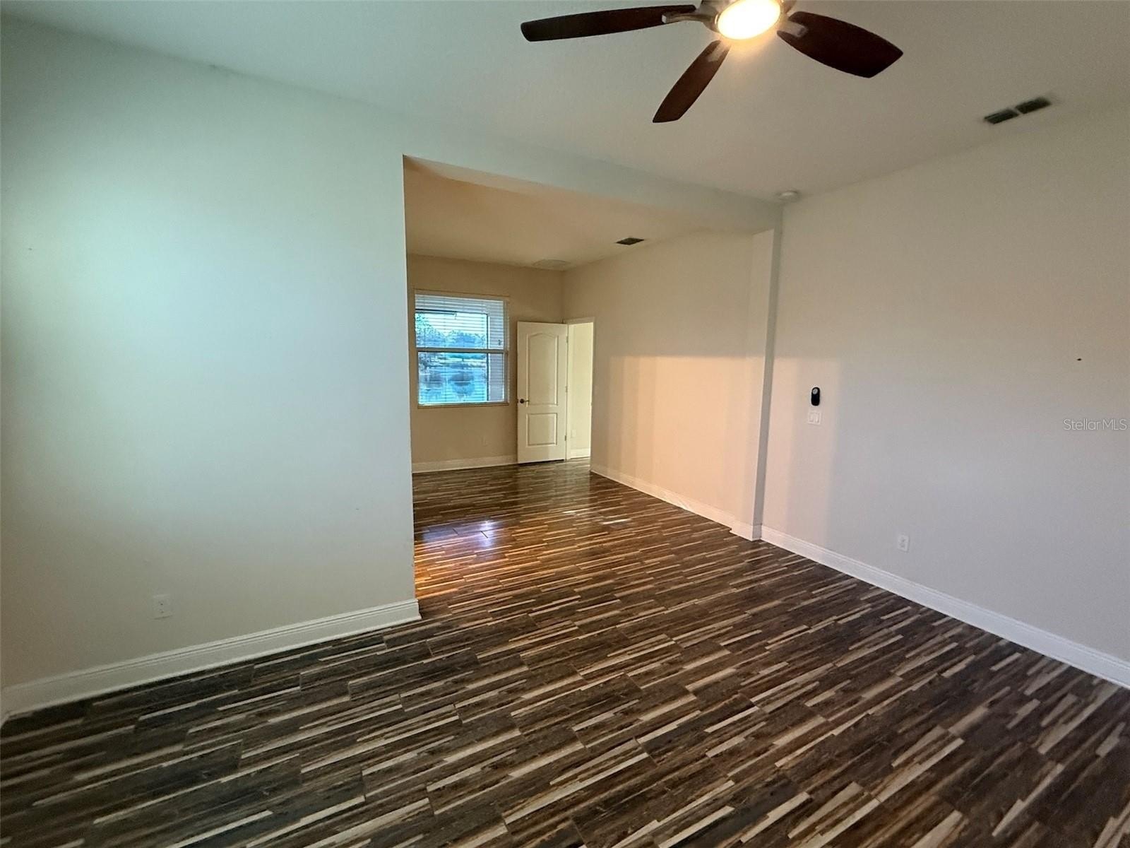 Welcome home to this beautifully appointed 4-bedroom, 3.5-bath residence located in the desirable 55+ community of South Lakes of Harmony. Ceramic tile flooring flows throughout, complementing the open and functional layout. The huge chef's kitchen is a showstopper, featuring Quartz countertops, tile backsplash, an oversized island, custom vent hood, wall oven, and a mix of recessed and pendant lighting-perfect for entertaining. This home offers two spacious primary suites, each with its own bath, walk-in closet, and custom built-ins, providing flexibility and comfort for guests or multigenerational living. An office easily doubles as a 5th bedroom. Enjoy energy efficiency with solar panels for a very low electric bill, a separate laundry room with sink and washer/dryer hookup, and a 3-car garage for ample storage. Relax on the screened patio overlooking the pond and golf course, and take advantage of Harmony's exceptional HOA amenities, including walking trails, golf course, three community pools, and a fitness center. This home combines luxury, efficiency, and resort-style living.