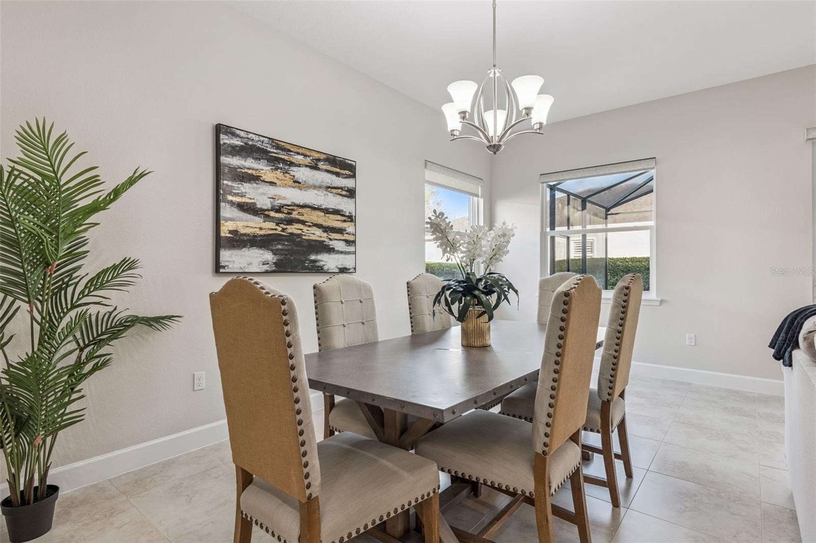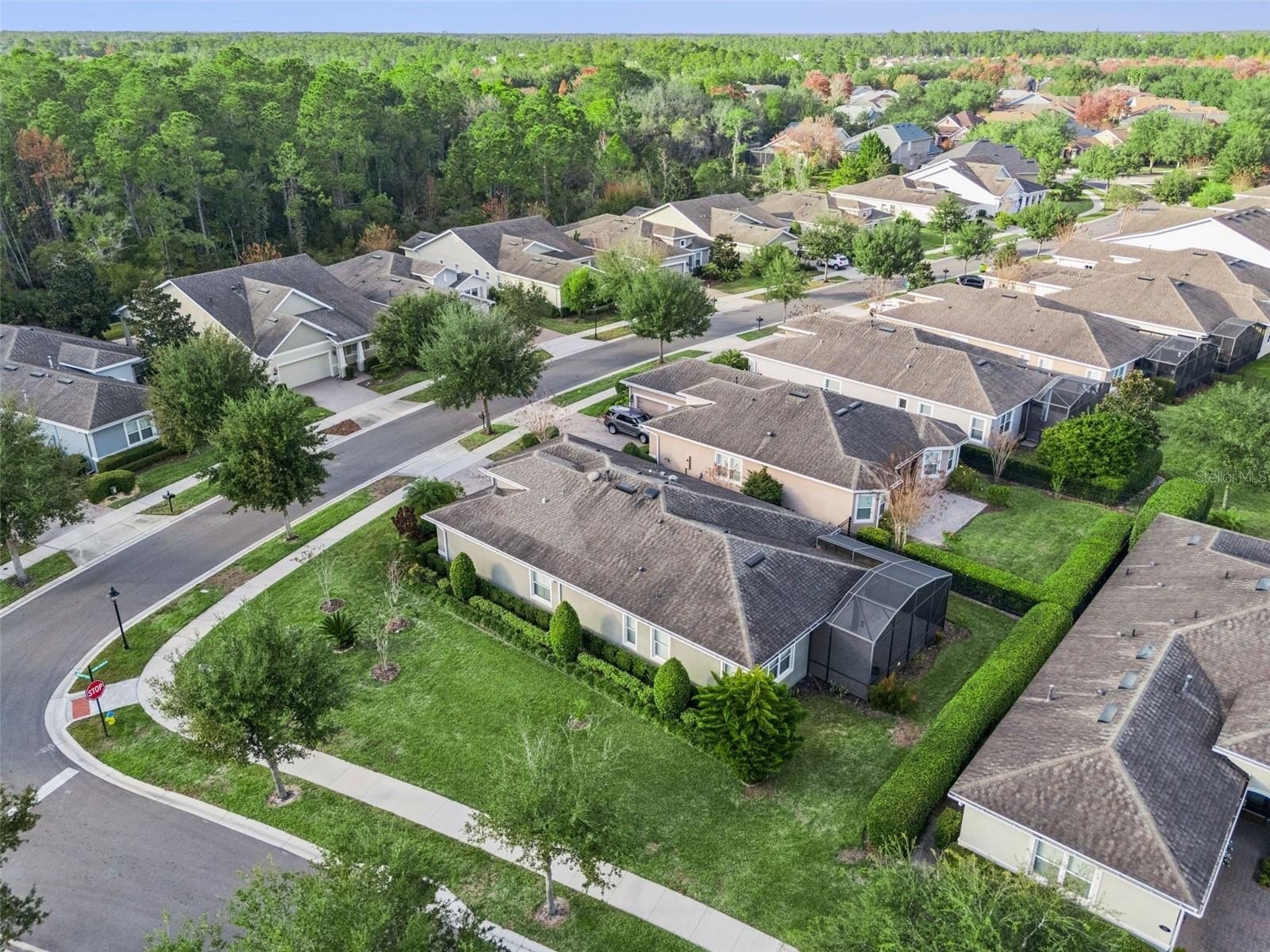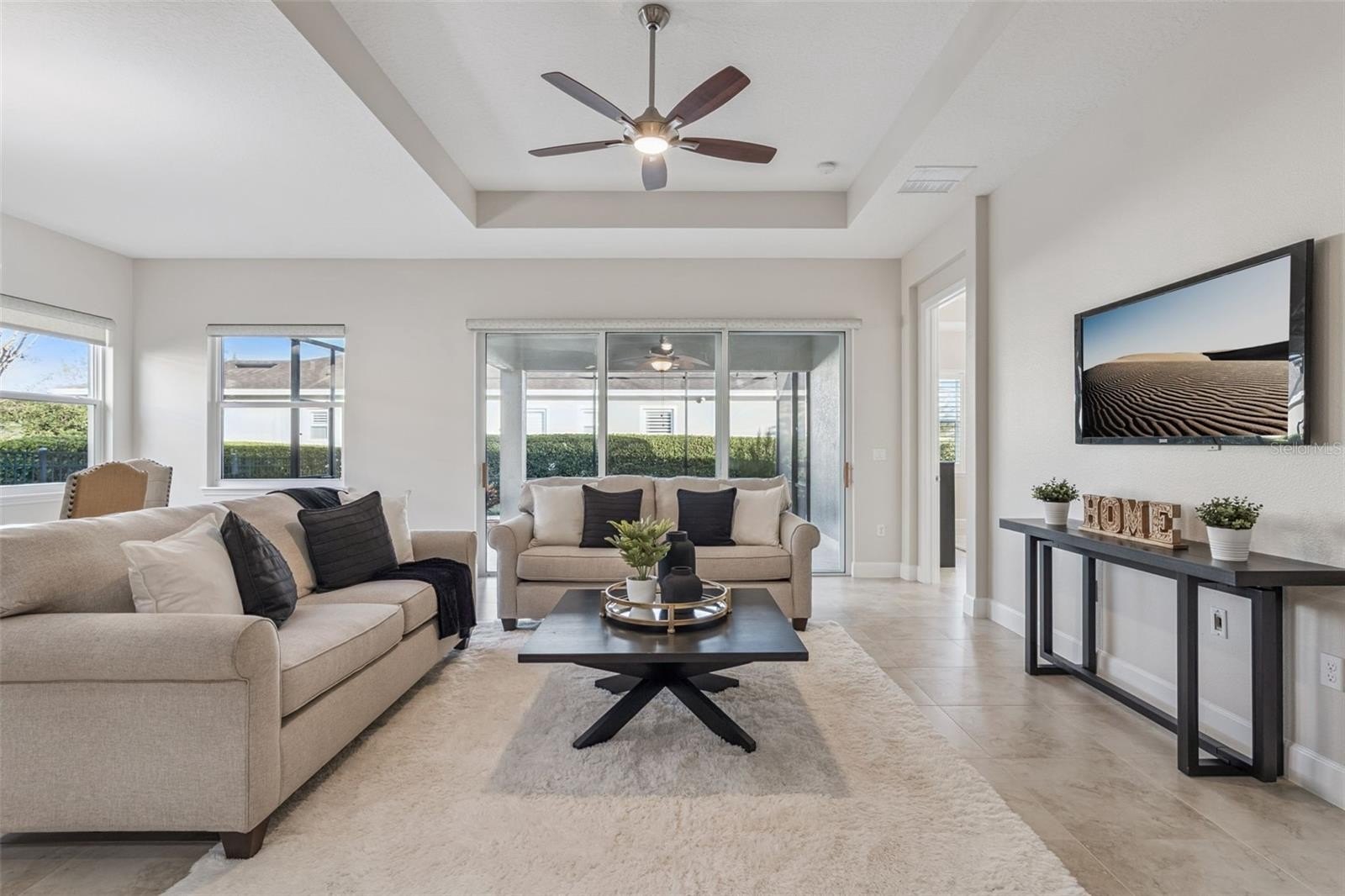 Light & Bright Kolter Lily on a large corner homesite with a 24’ x 21’ screen enclosed tiled patio within the 55+ Victoria Gardens neighborhood. This 2 Bedroom 2 Bath plus Den floorplan has a GREAT ROOM layout. The gourmet kitchen is a chef’s dream that offers 42” Maple “soft close” cabinets w/ crown molding, Pot & Pan drawers, Granite countertops, large breakfast island w/ pendant lighting above, 4-burner natural gas range, walk-in pantry & stainless steel appliances. Porcelain tile floors flow throughout home. Personalized features include leaded glass front entry door, 5” baseboards, Plantation style shutters, reverse osmosis water filtration system, freshly painted interior, remote-controlled shades in Great Room, electric & natural gas connections for dryer & a built-in laundry tub with storage cabinets in utility room. The 13’6” x 16’6”’ primary bedroom offers a tray ceiling, ceiling fan & plenty of wall space for your furniture placement. En suite bathroom provides raised height separate vanities, framed mirrors, glass enclosed walk-in shower & a 13’6” x 5’6” walk-in closet. Homeowner will enjoy having their morning coffee or late afternoon beverage on the large screen enclosed covered patio w/ a natural gas connection for an outdoor grill & privacy hedge. The 19’ x 24’ garage provides additional space for larger vehicles or a work bench, ceiling mounted storage rack, tankless water heater & a insulated garage door. All appliances stay with the home. Victoria Garden residents have access to their own social Private Clubhouse. HOA fee includes lawn care, Spectrum HFC TV & internet and reclaimed water for yard irrigation. Community is within 1 mile of I-4 that offers great access to the east coast beaches, Orlando (40 minutes) and 3 International airports within 1 hour.