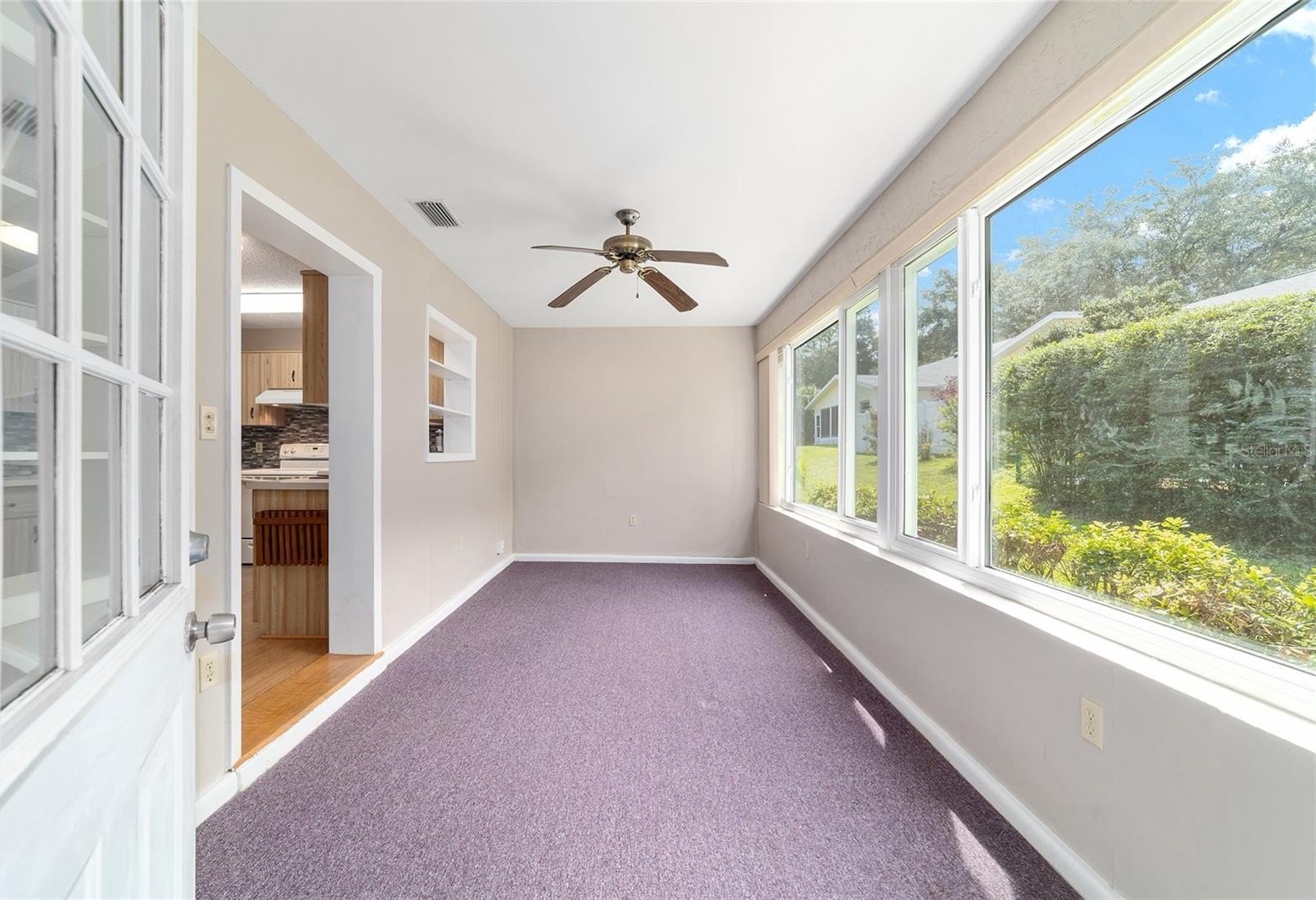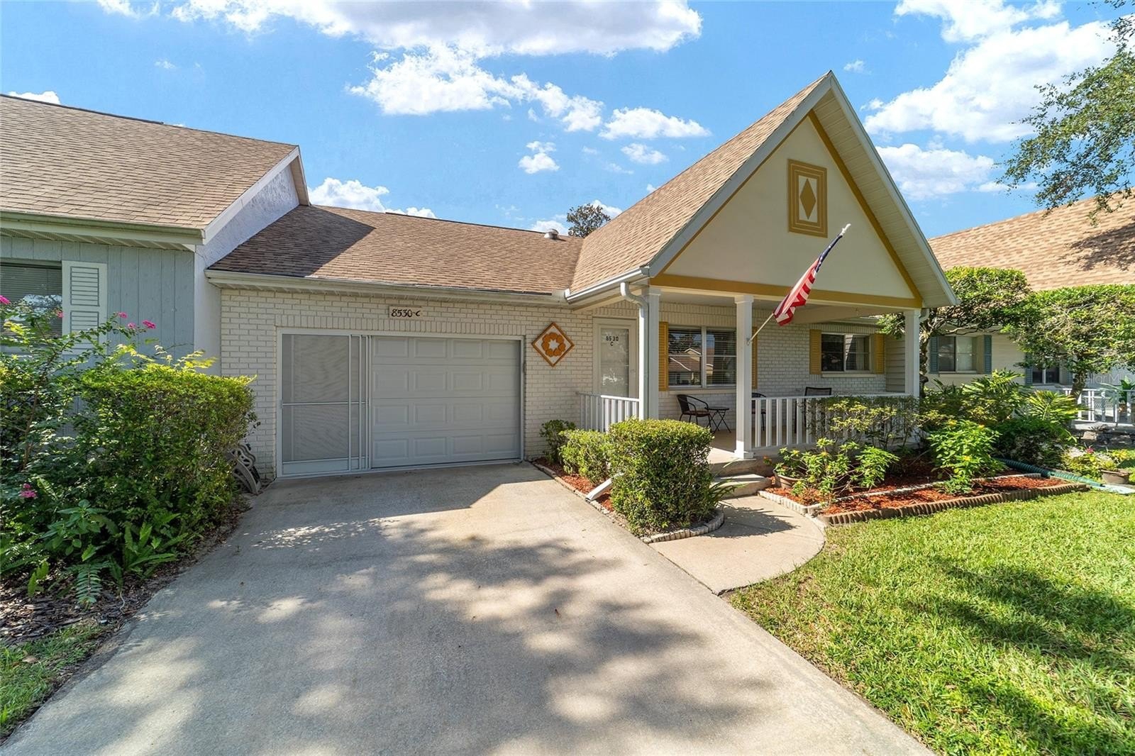 Luxury meets lifestyle in this delightful 1,375 sq ft villa nestled in On Top of the World, Ocala’s premier 55+ gated community. Designed for connection, comfort, and convenience, this home places you in the heart of resort-style living while offering personal serenity amid lush landscaping and abundant natural light. Start your day by strolling or hopping on your golf cart to explore the vibrant community amenities—where three championship golf courses, sparkling indoor and outdoor pools, state-of-the-art recreation centers, tennis, pickleball, bocce, fitness classes, arts and crafts studios, even a radio-controlled flying field await. Weekly events, live concerts, master classes, and so many social clubs keep life as social or serene as you choose. Feeling spontaneous? It’s easy to motor over to Publix or nearby shops and restaurants with your golf cart. Pull off the road and onto your private driveway—this tasteful villa is freshly landscaped and welcomes you with a charming front porch. Enter a light-filled open layout combining living and dining spaces. Adjacent, the kitchen has tons of cabinets, ample countertops, and bright and inviting! The kitchen also features a handy breakfast area and clever pass-through window leading to the back addition—the back of the home has two features.. your choice of a cool, air-conditioned sunroom or the screened porch just adjacent. The air-conditioned room is draped in windows, and the screened porch is accessible from the sunroom or through sliding doors from the master suite. This space is ideal for relaxing with morning coffee, reading the paper, or simply enjoying the gentle breeze. Additionally, this home features 2 bedrooms and two bathrooms, plenty of storage and a one car garage with built-in storage for effortless organization. All of this sits within a community that's as active as comfortable golf cart to clubs, events, shopping, or a neighbor’s home. Experience carefree living without compromise, in a home that blends thoughtful amenities, connectivity, and that relaxed, always-on-vacation charm that On Top of the World delivers.