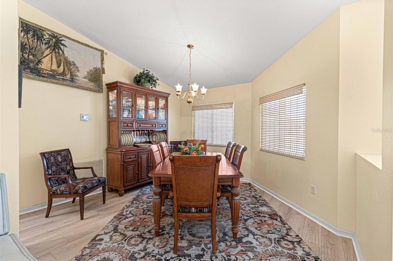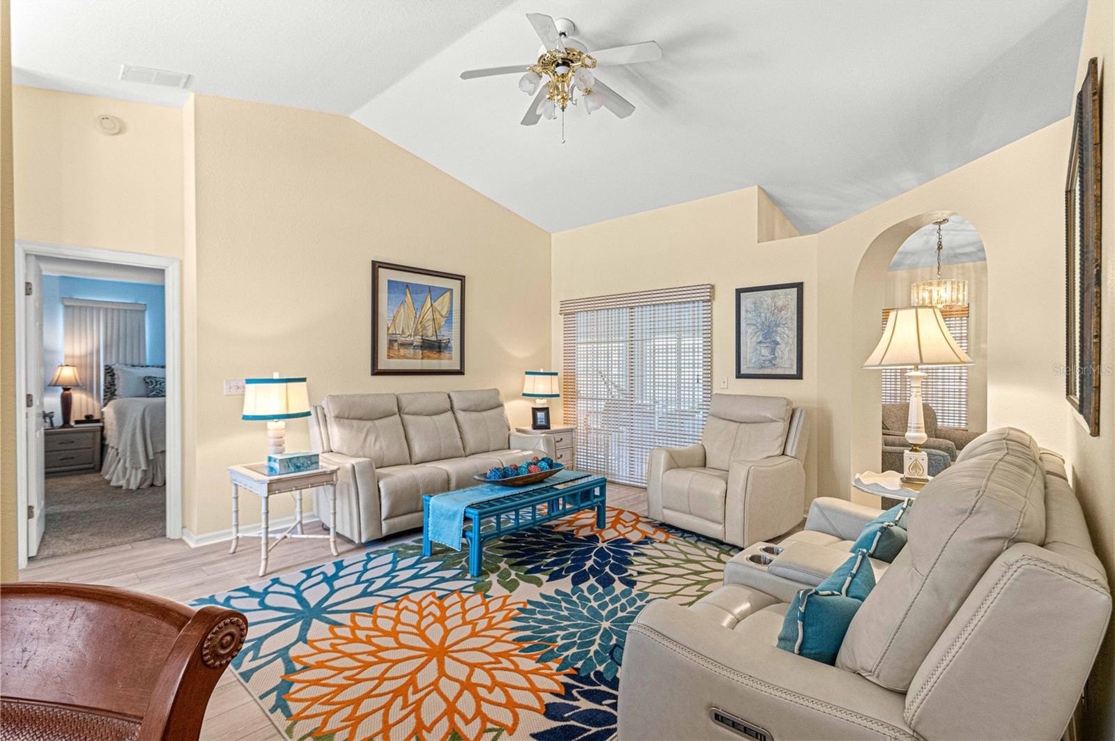 Here is your opportunity to purchase this meticulously maintained 3 bedroom, 2 bath Aspen floor plan in Del Webb Spruce Creek Golf & Country Club, a premier 55 plus community nestled in the heart of Summerfield, Fl. Just a short 10-15 minute drive to The Villages. This Aspen floor plan spans 2,342 sq ft under heat and air. The home exudes curb appeal with its easy to maintain vinyl siding, leaded glass entry door, and completely refreshed landscape. As you step inside, you will discover the heart of the home is an expansive open floor plan with both a formal living and dinning room, as well as a great room which is open to the kitchen and great for entertaining. The kitchen is ideal for hosting gathering with its bright white cabinets, and well-placed solar tube, enhancing the airy ambiance. The primary suite is a sanctuary, featuring an en-suite with double closets, a generous soaking tub, and updated walk in shower with direct access to the heated and cooled Lanai. Updates include some newer windows, full leaf guard gutter system, roof re-shingled in 2014, HVAC (2013), new stainless steel microwave, and refrigerator, and newer warm carpeting in the bedrooms. Both guest bedrooms are of ample size to allow privacy for guests. The vaulted ceilings amplify the sense of space throughout the main living area, while the split floor plan ensures privacy. The highlight of outdoor living is the enclosed, heated, and cooled lania with access from both the great room, and primary suite, providing the perfect setting for year round enjoyment.